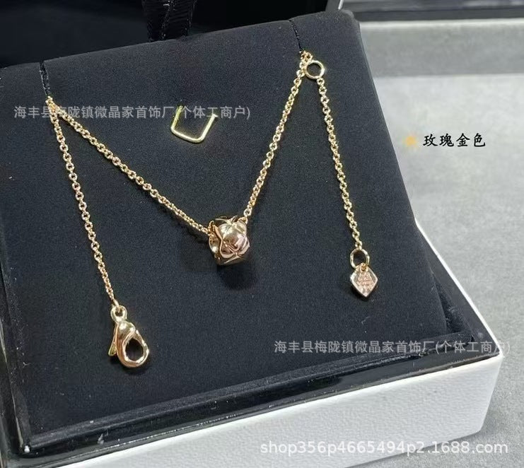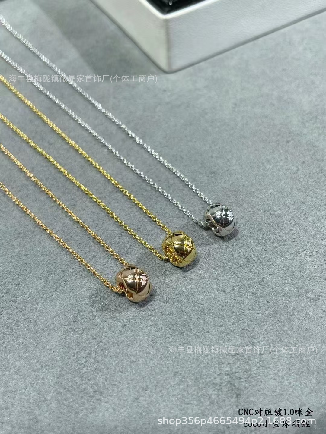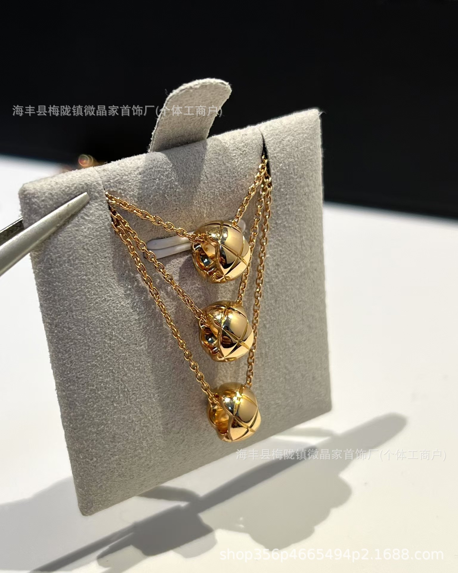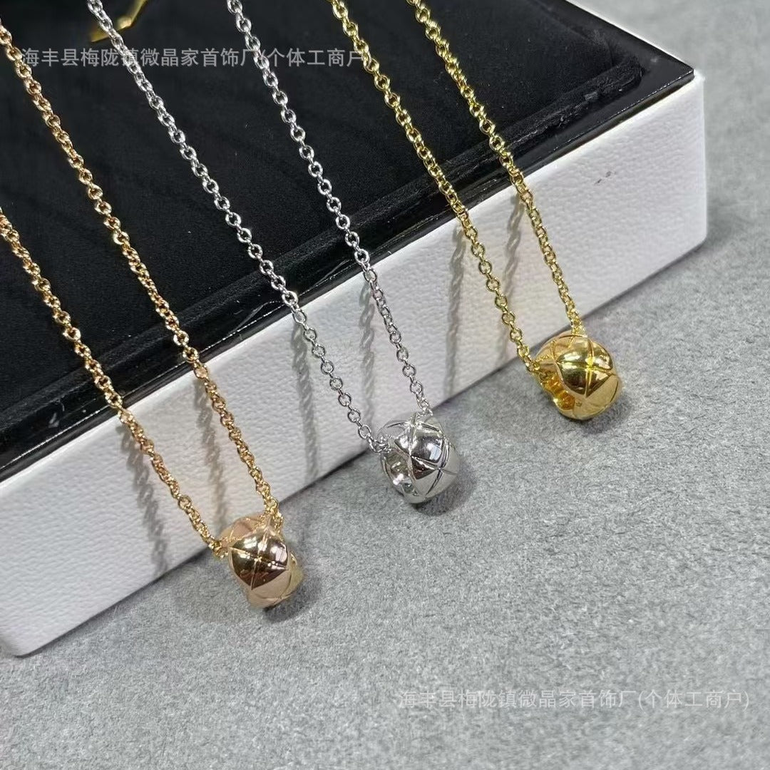 高版本coco菱格小金豆项链CNC精工版本S925银镀18K玫瑰金厂家直销