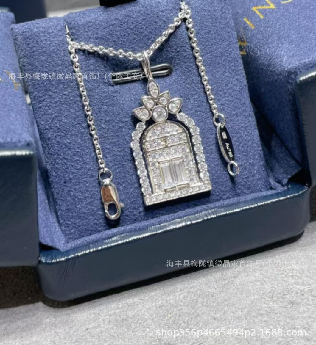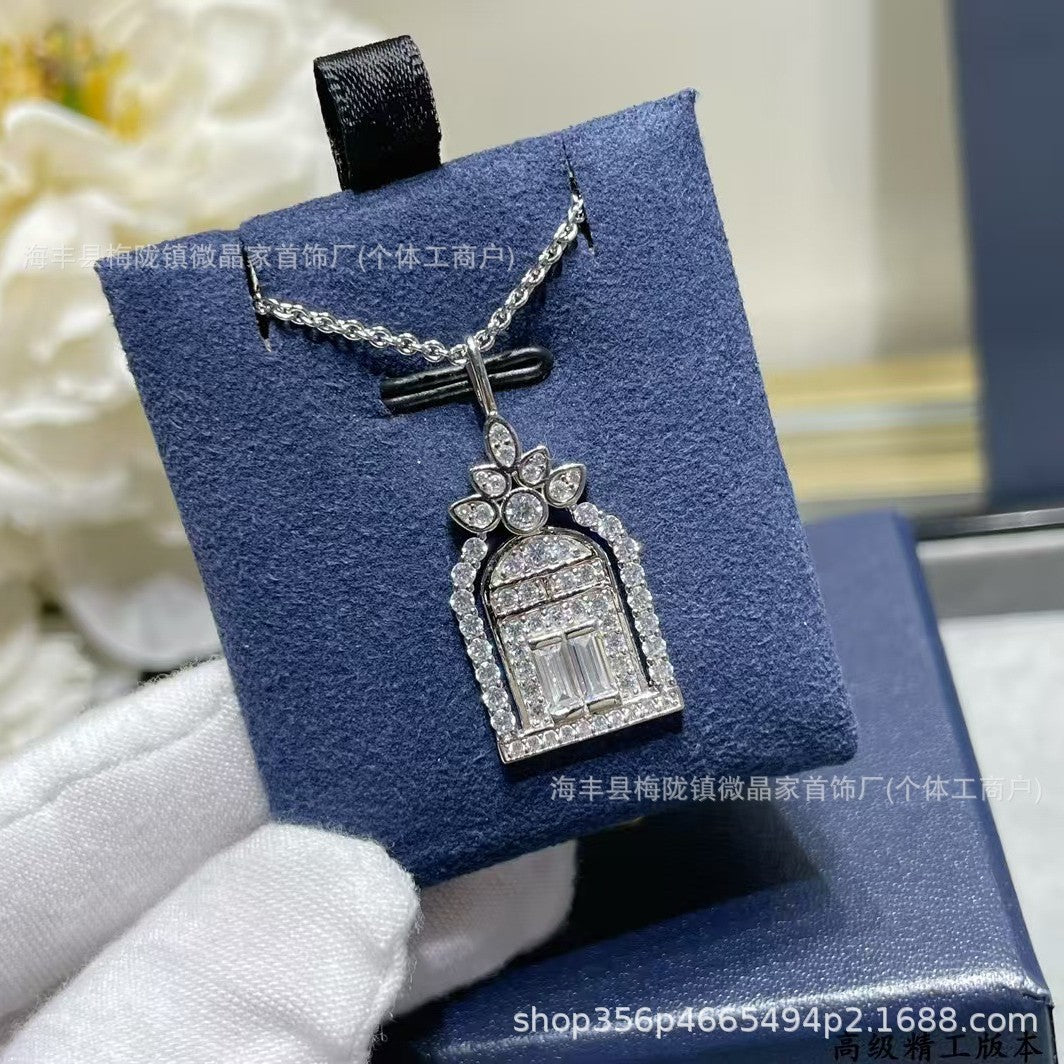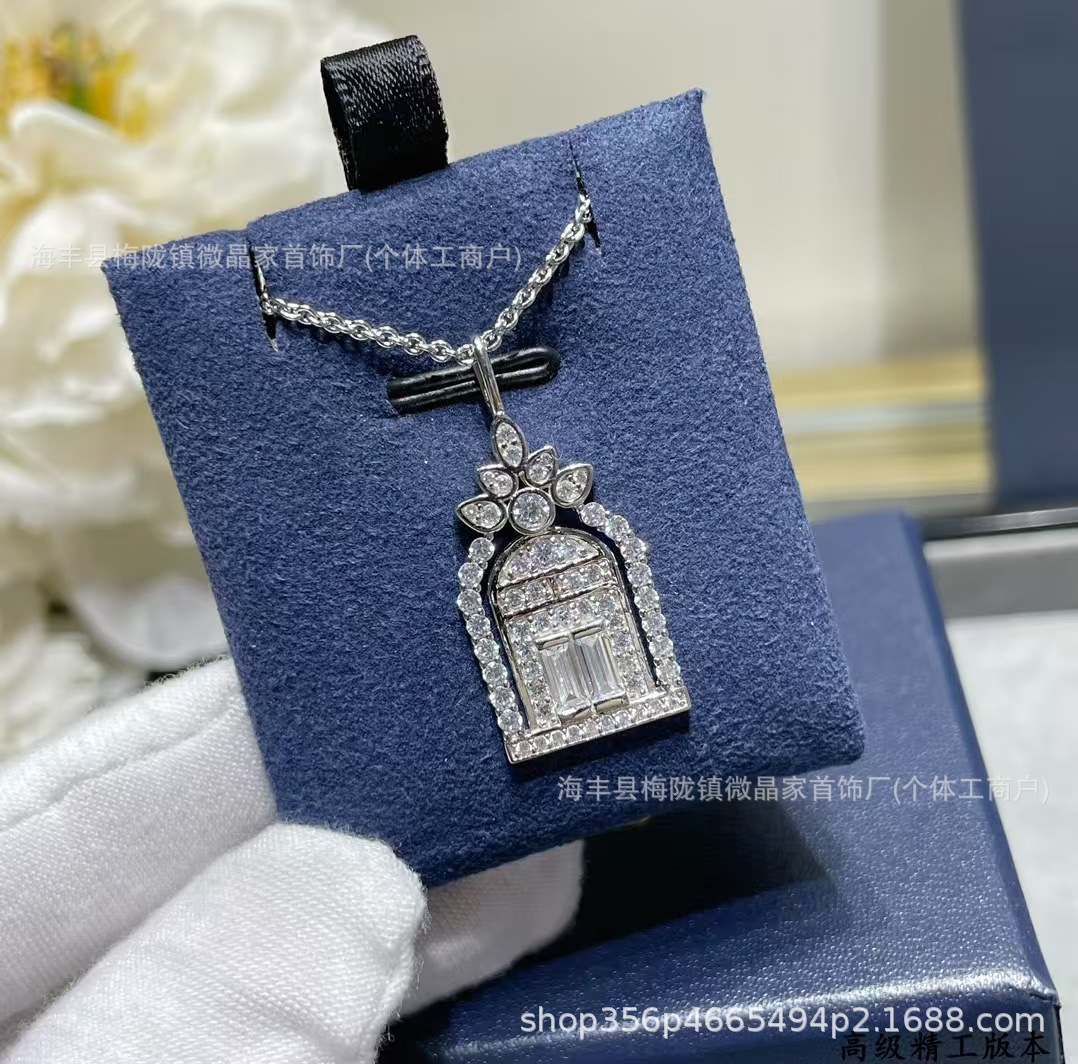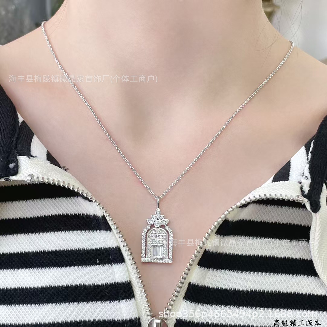 高版海瑞S925纯银满钻幸福之门项链高级时尚通勤吊坠项链