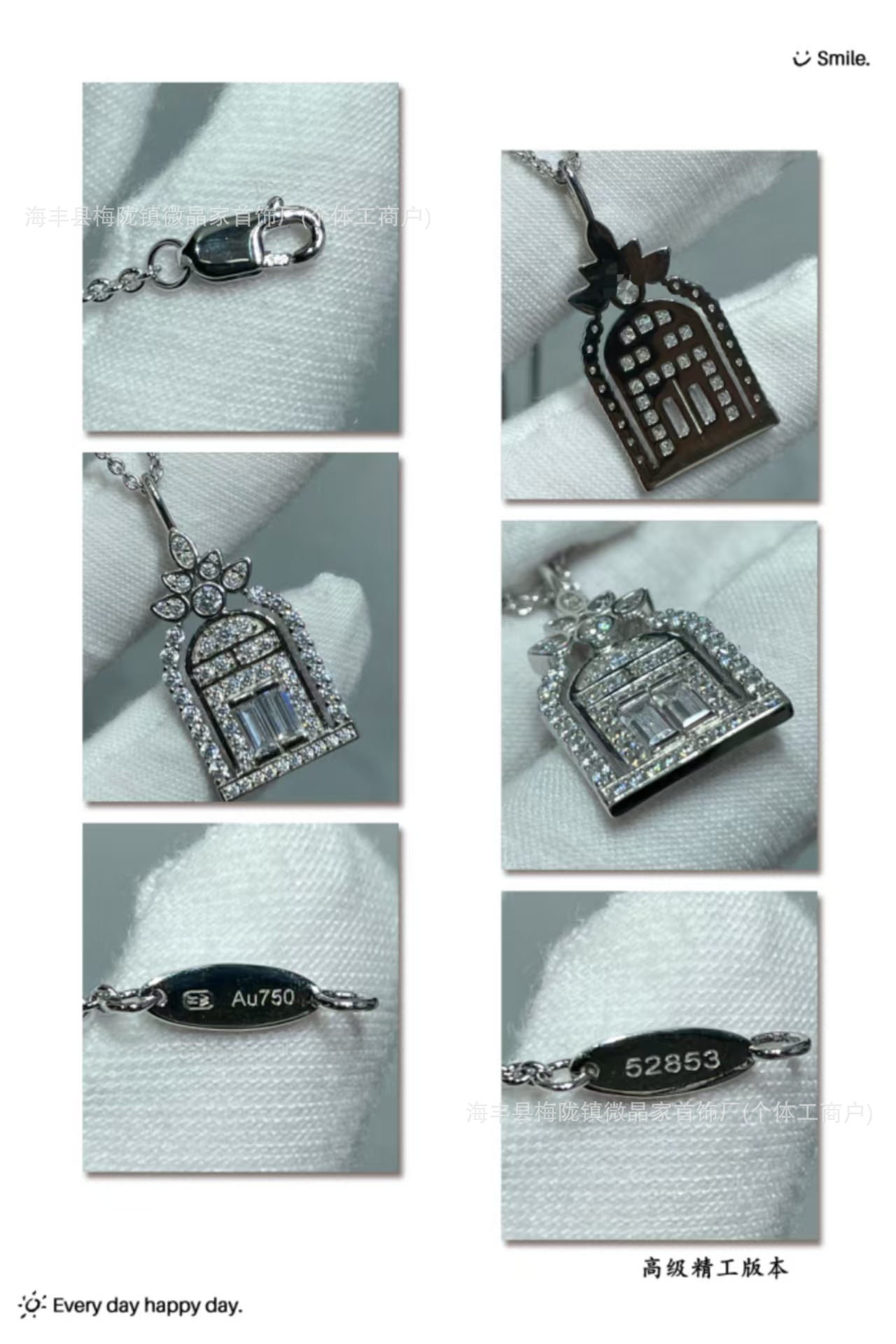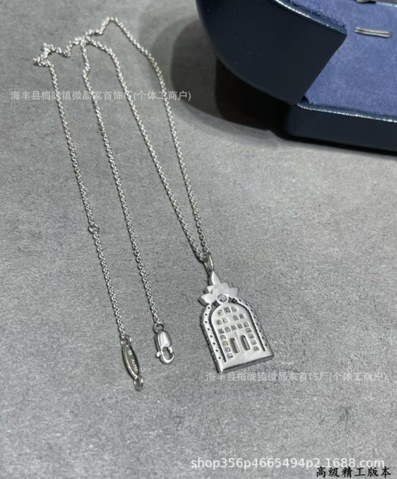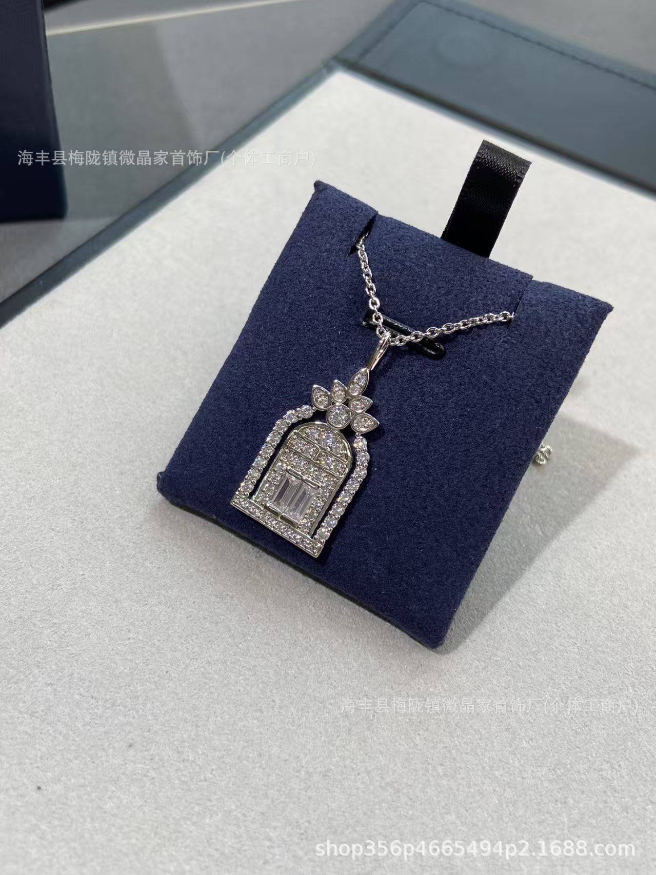 高版海瑞S925纯银满钻幸福之门项链高级时尚通勤吊坠项链