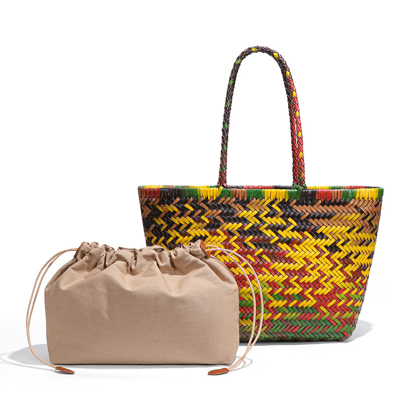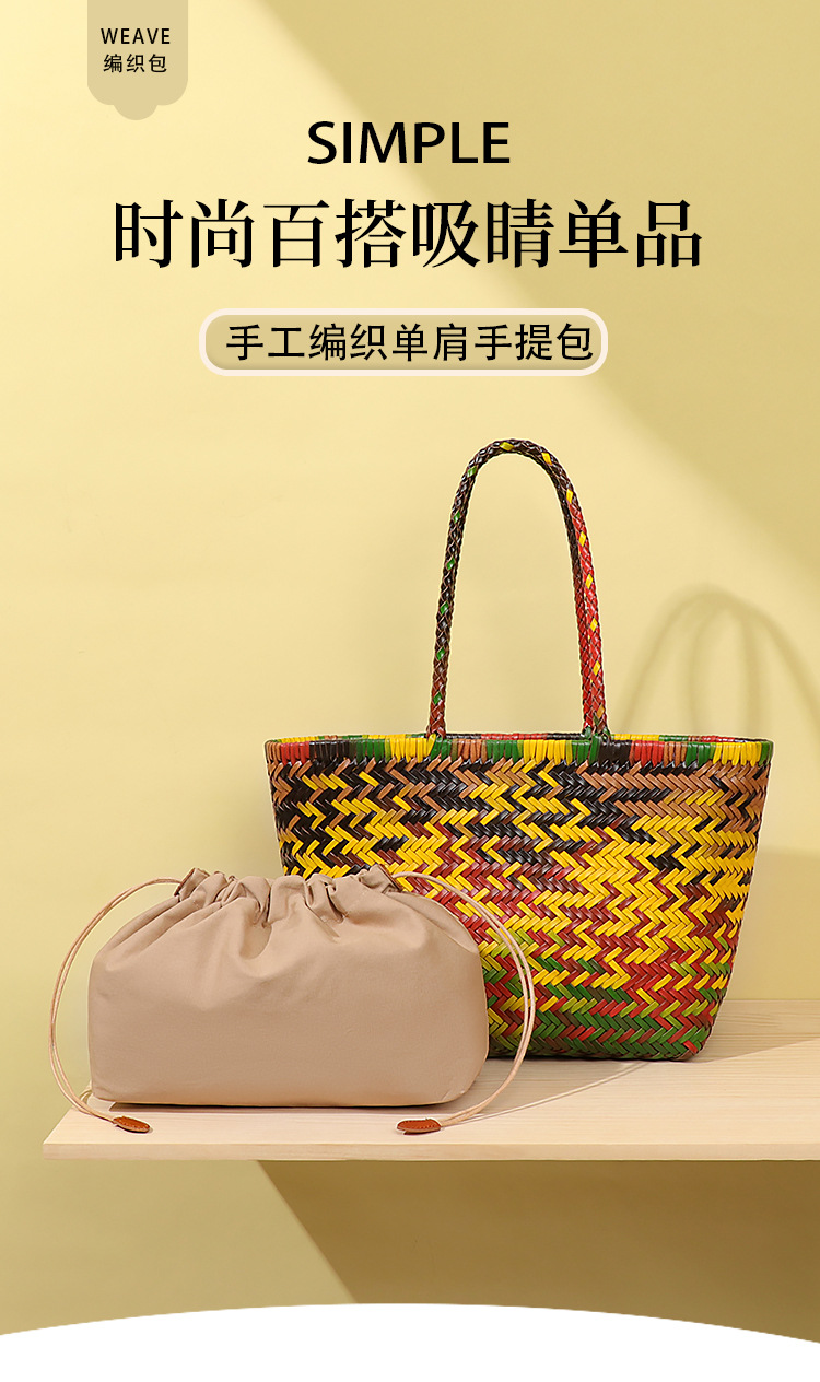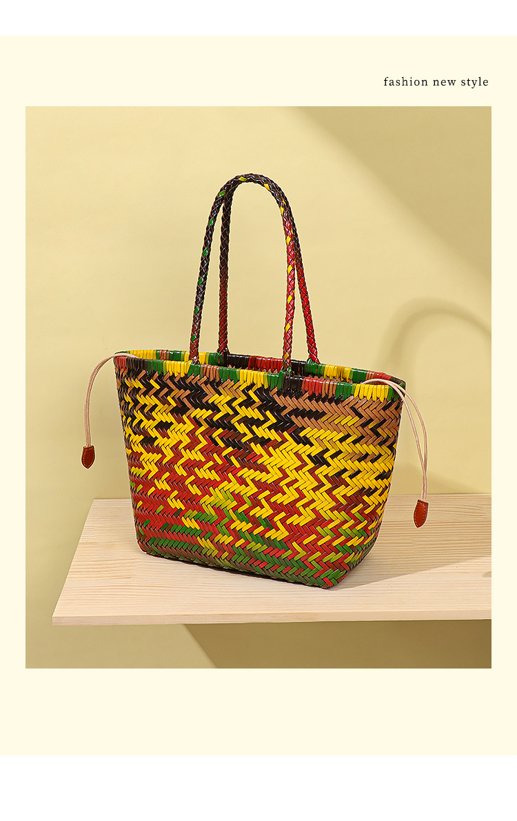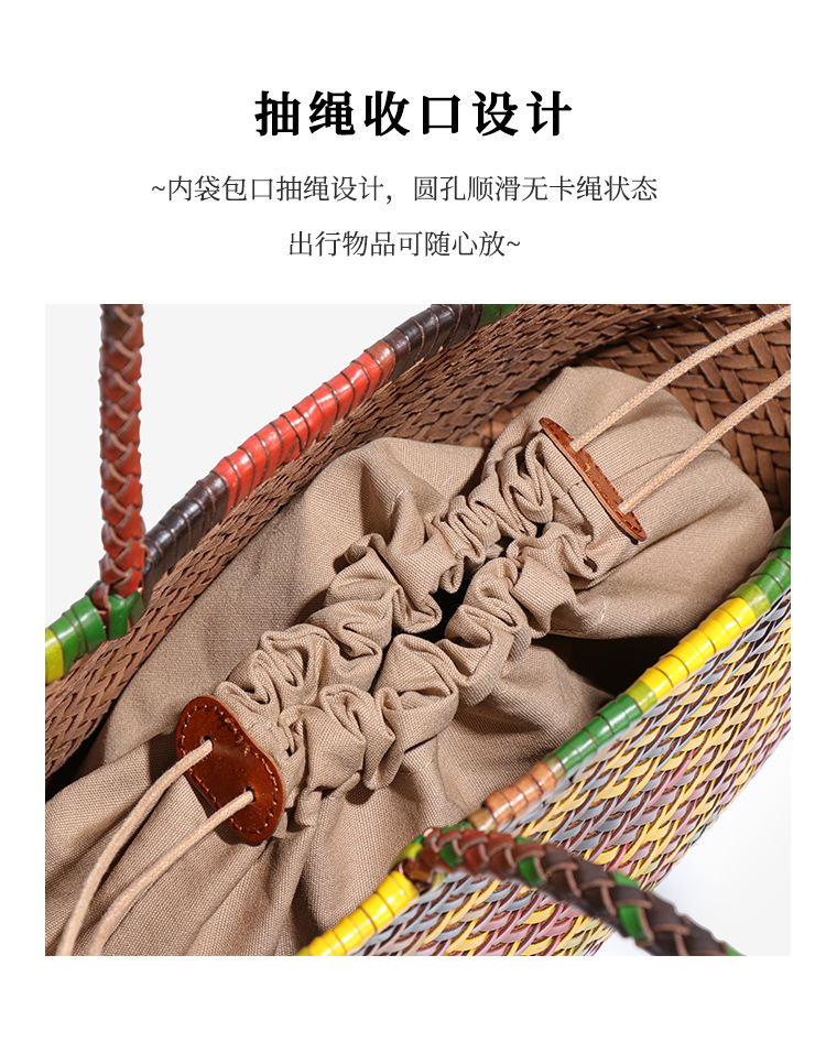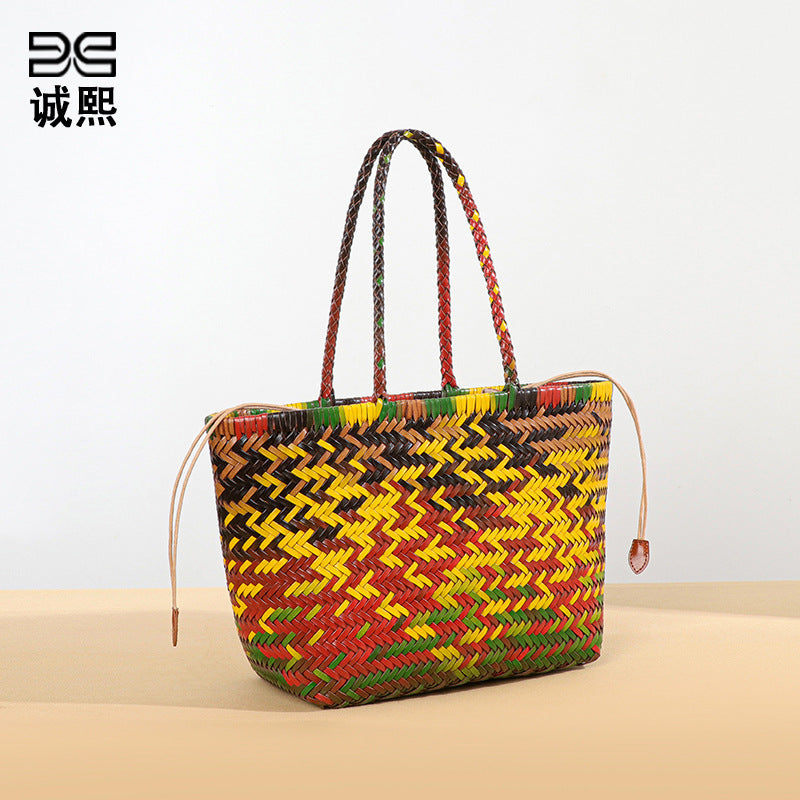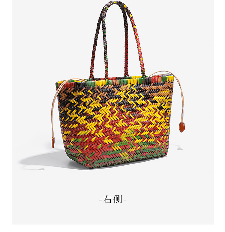 高端定制真皮菜篮子手提包彩色手工编织托特包森系潮流单肩腋下包