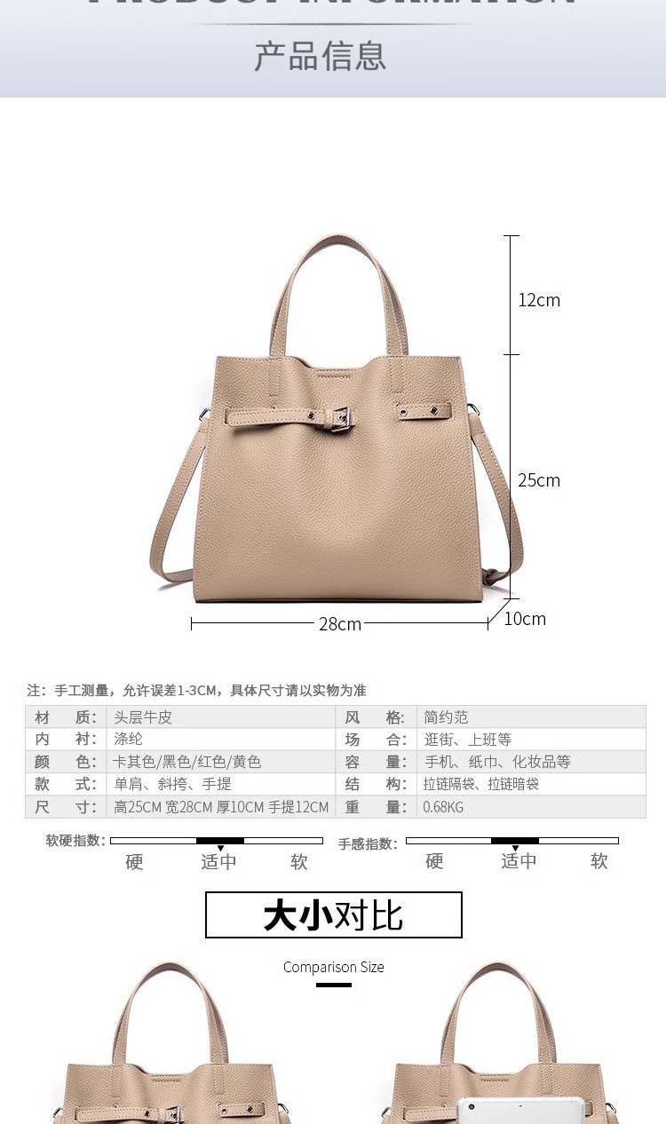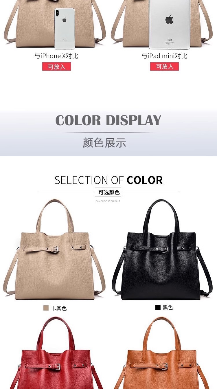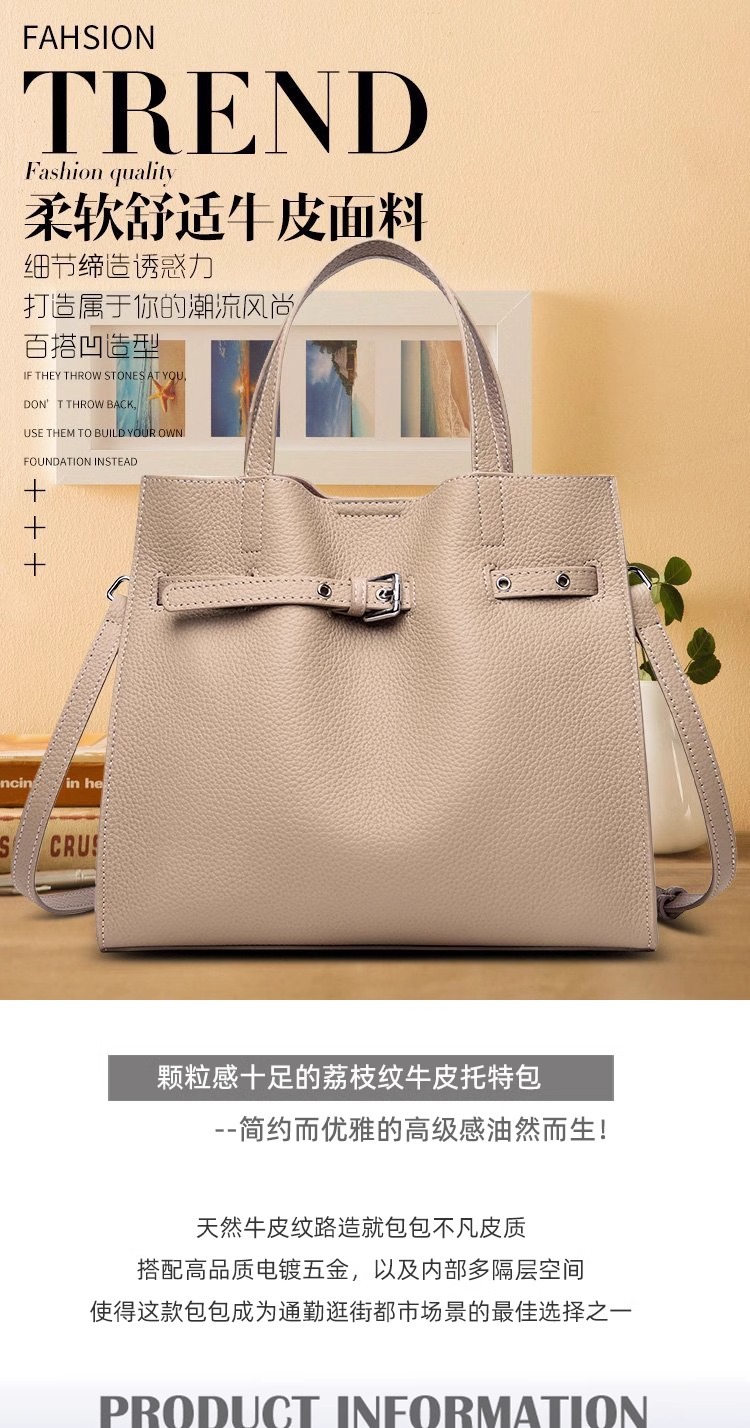 高级感头层牛皮大容量通勤单肩斜挎包 真皮手提包女士包一件代发