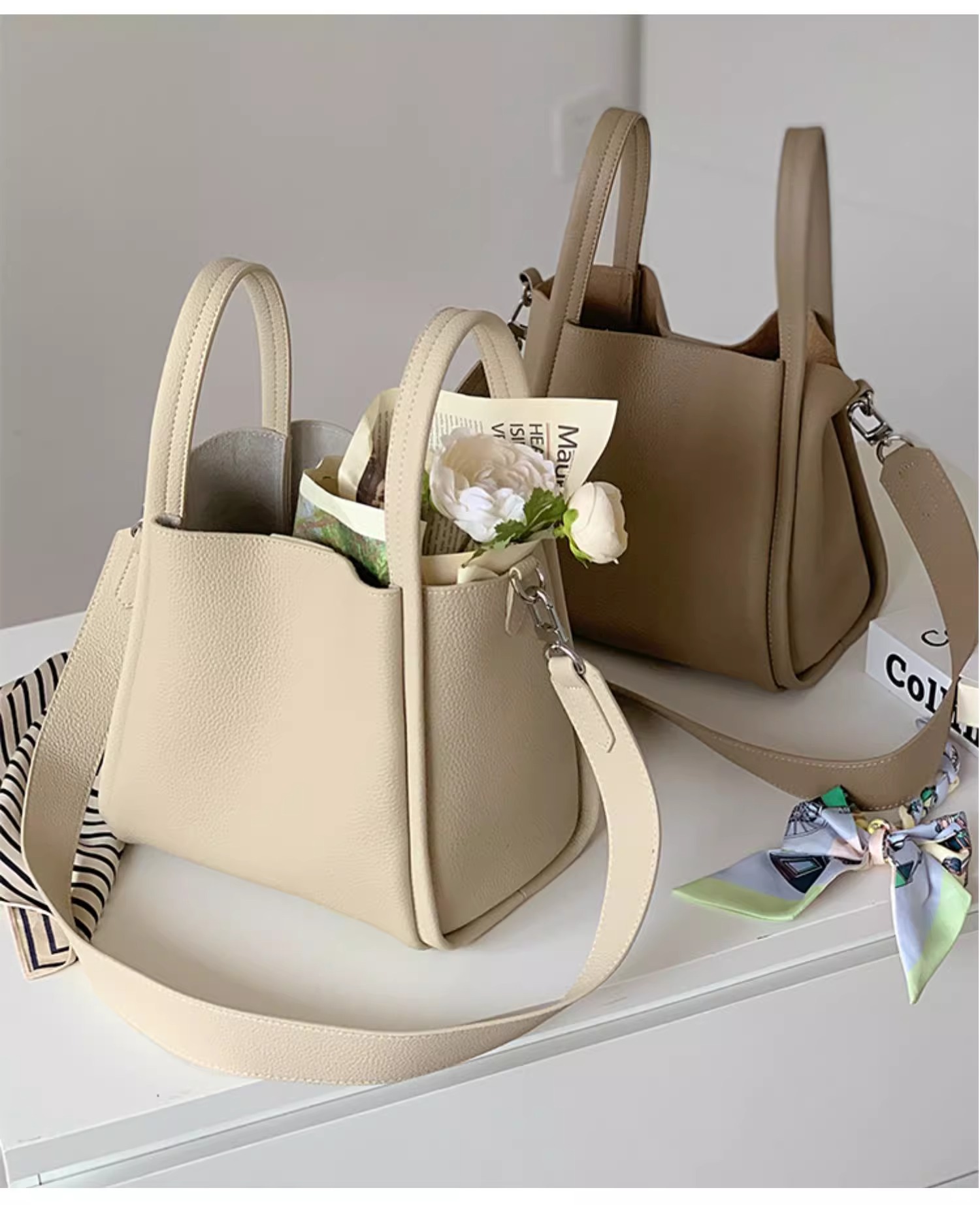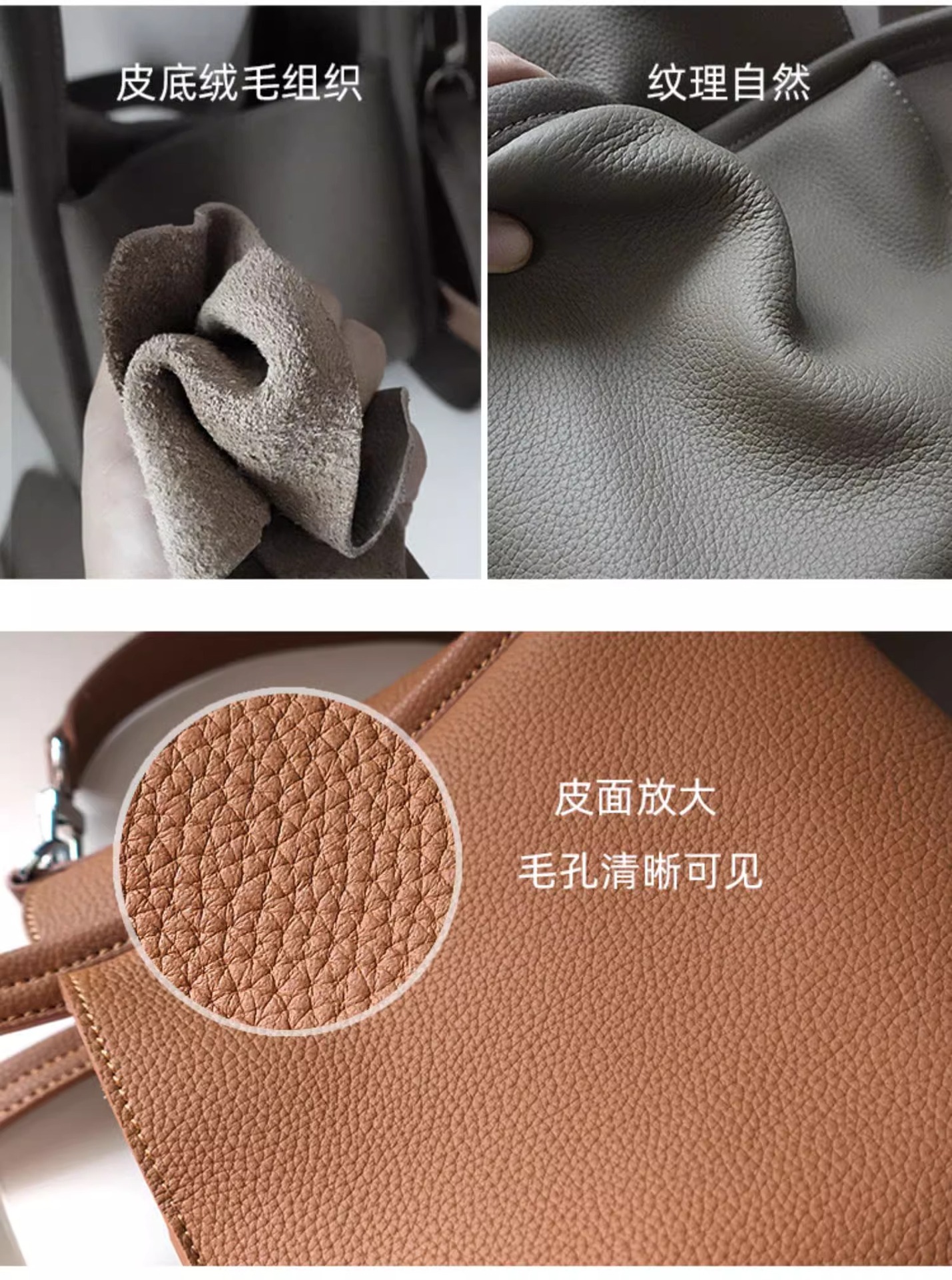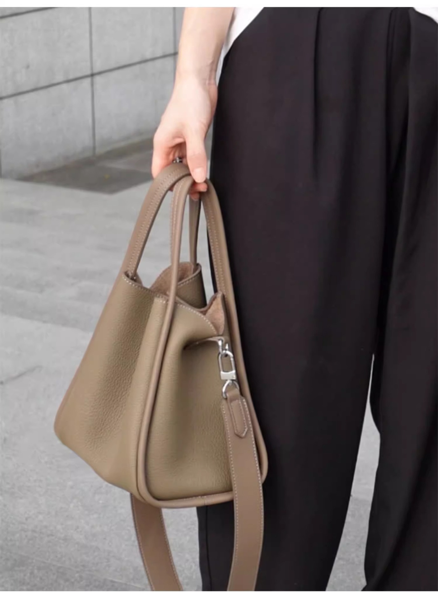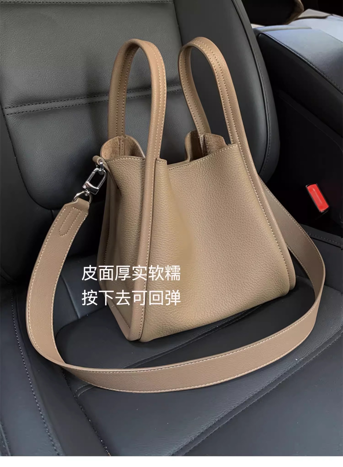 高级感头层牛皮togo水桶包菜篮子包包斜挎单肩手提包女 无痕代发