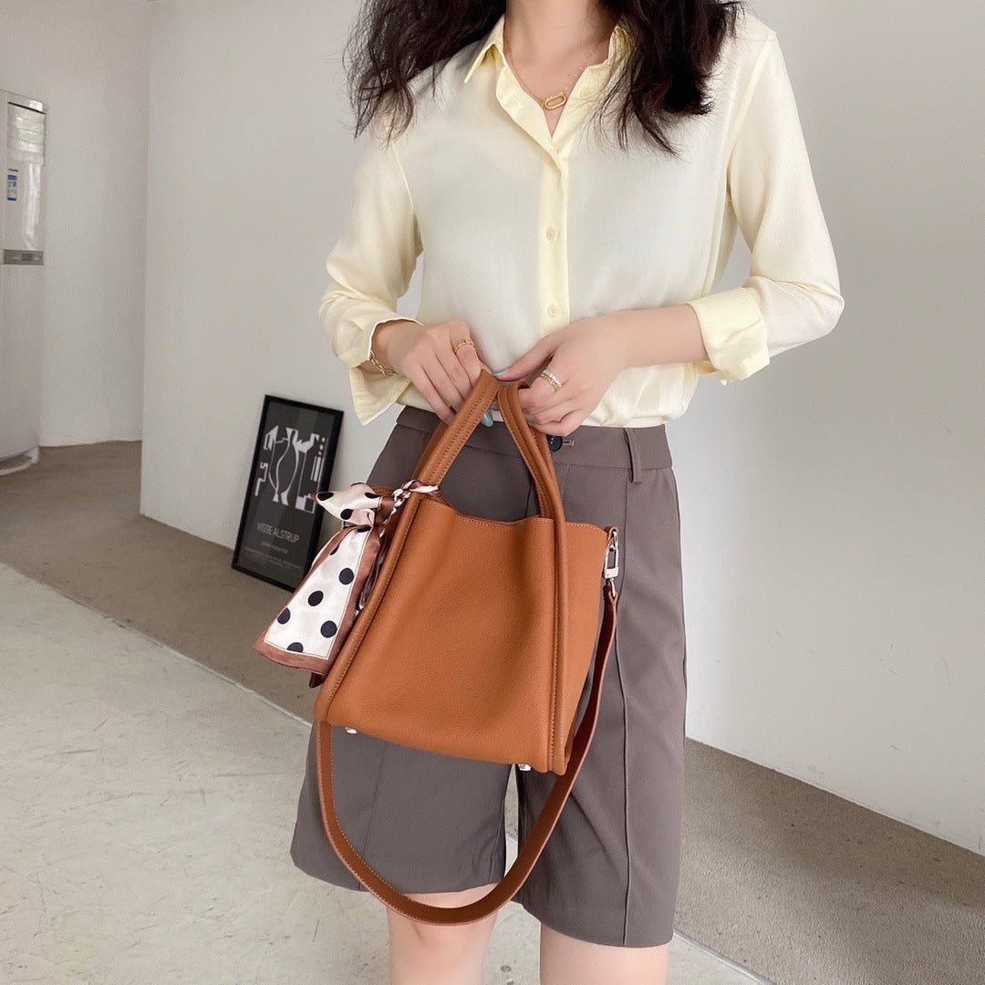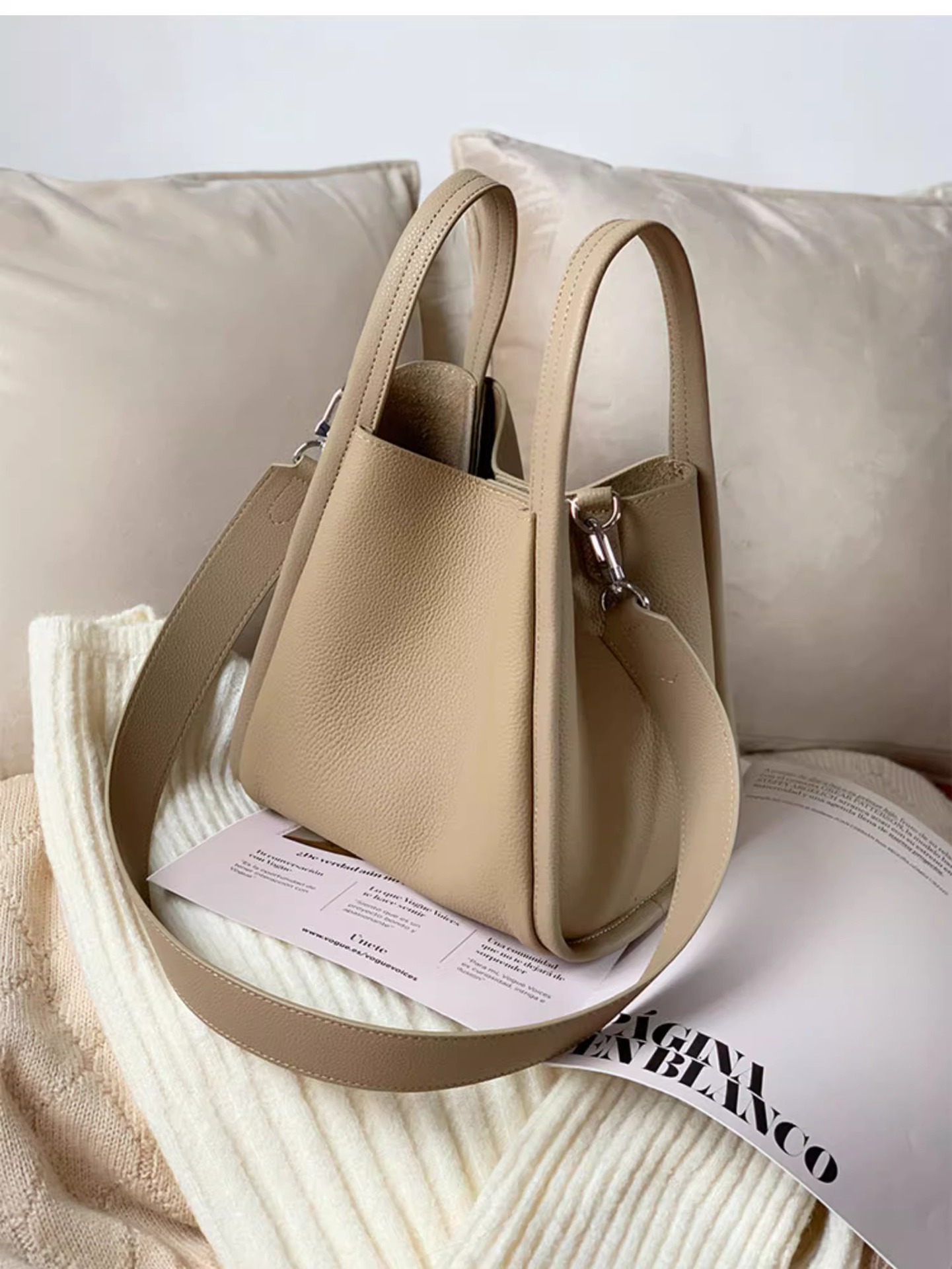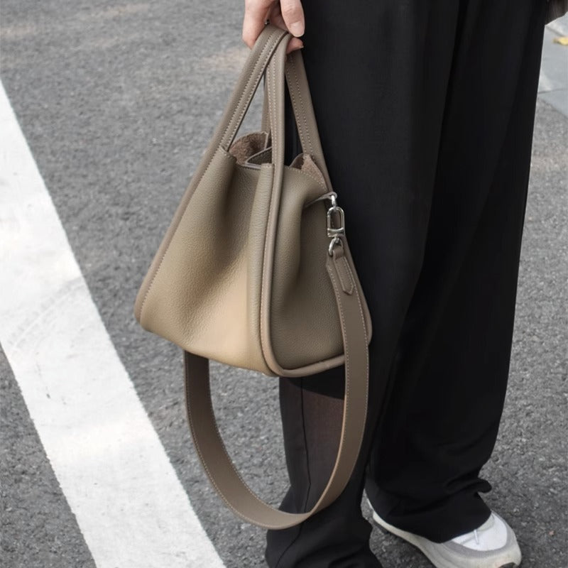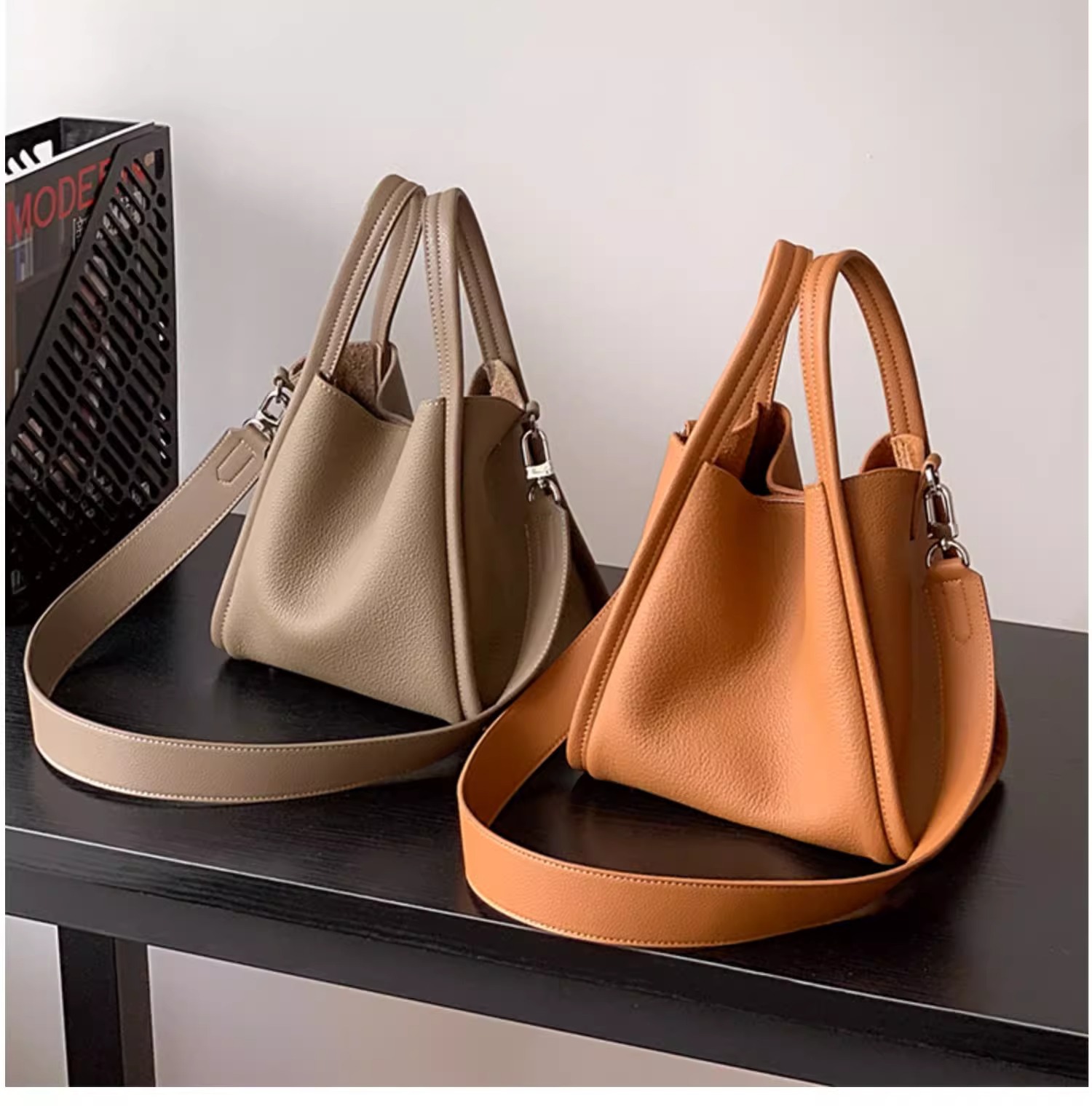 高级感头层牛皮togo水桶包菜篮子包包斜挎单肩手提包女 无痕代发