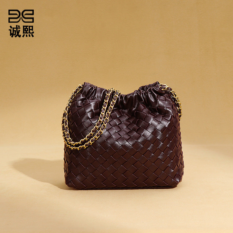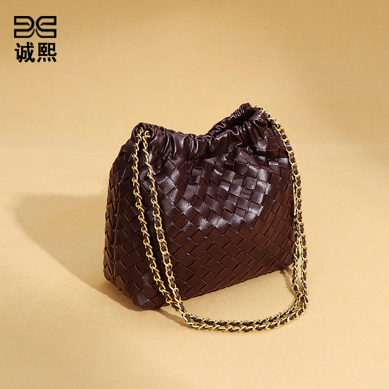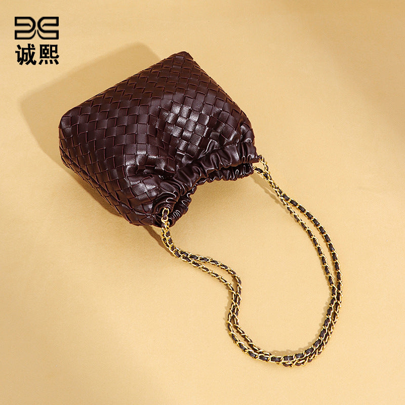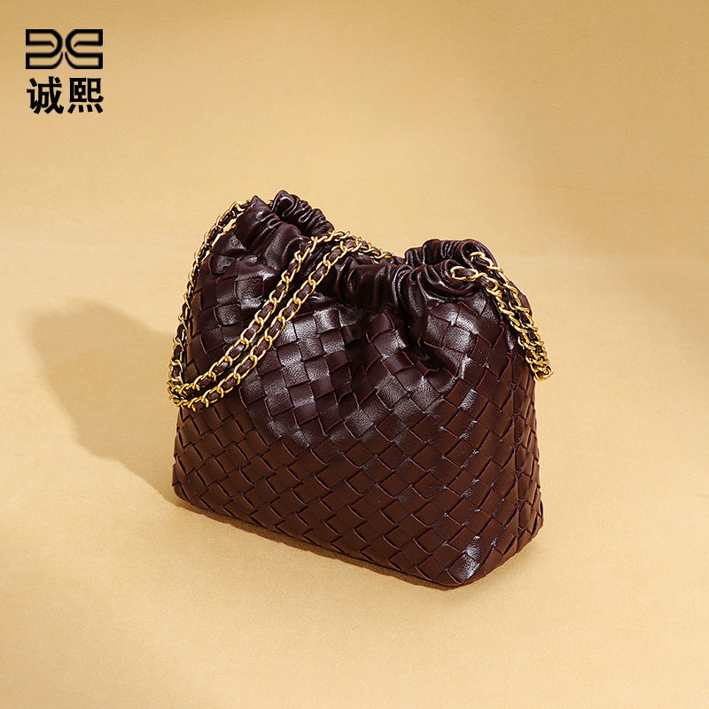 高级感小香风编织包链条单肩腋下斜挎包云朵饺子包女士手提水桶包