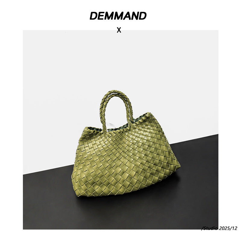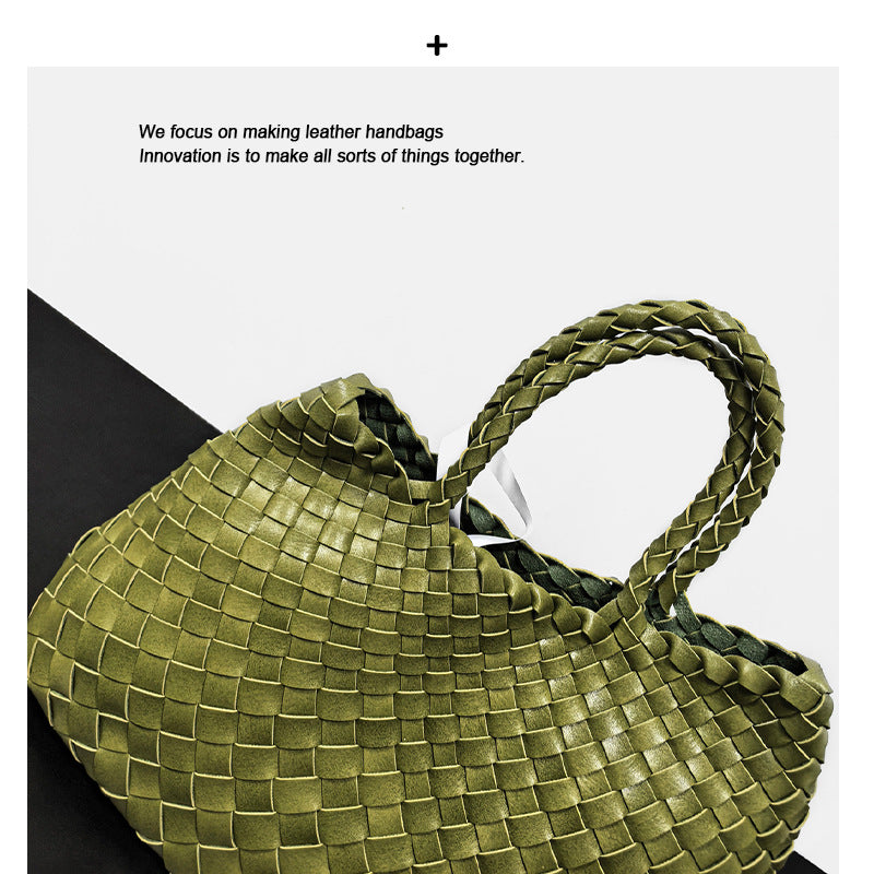 高级感纯色大容量子母手提包纯手工编织女包复古潮流菜篮子托特包