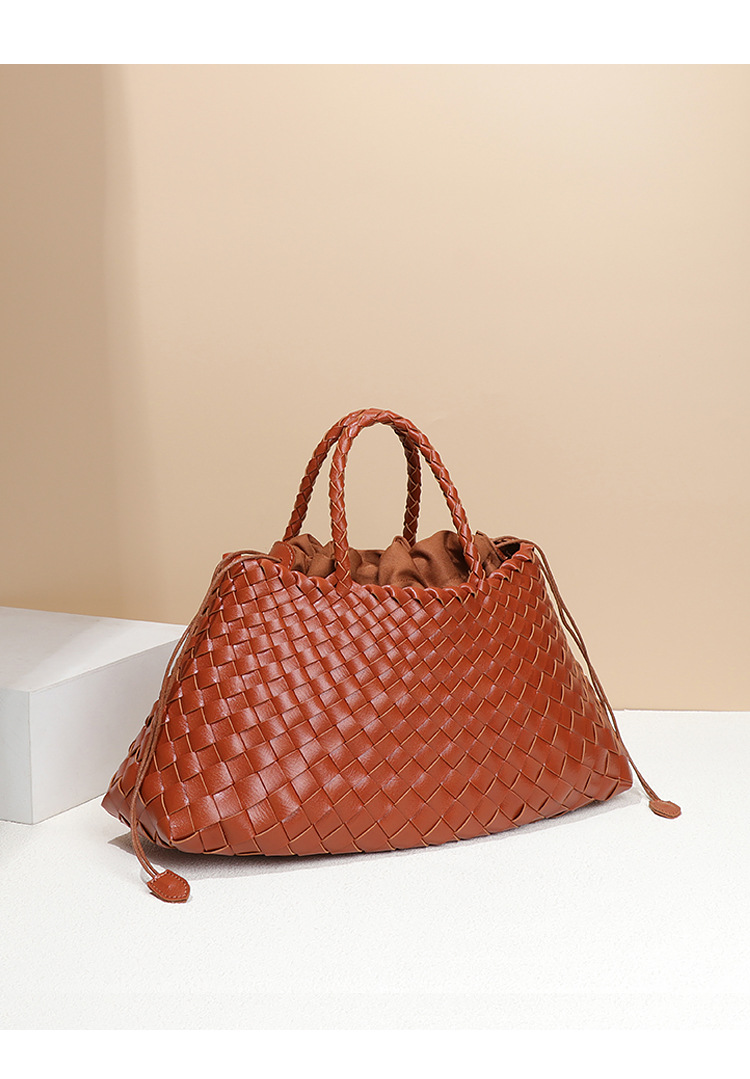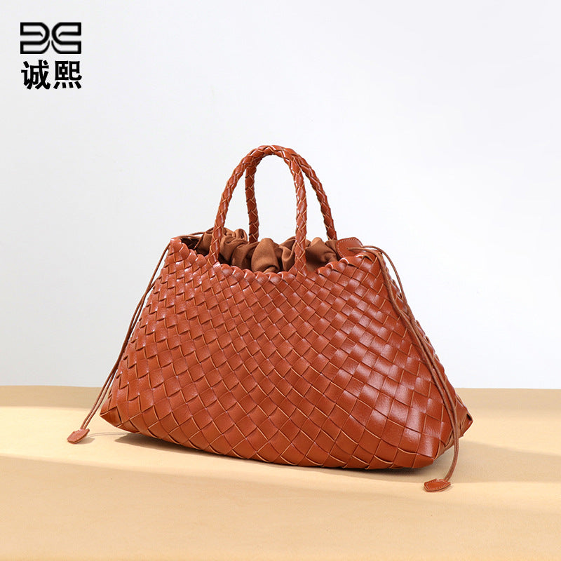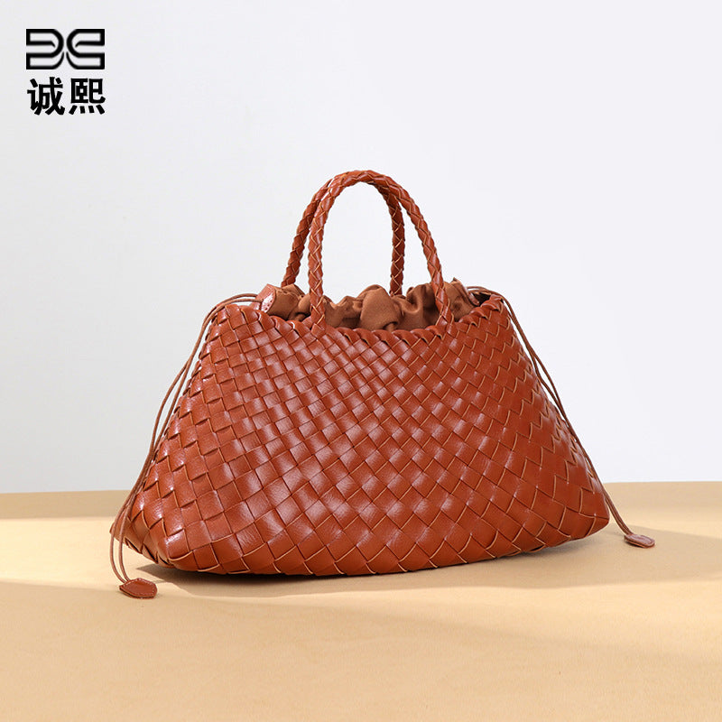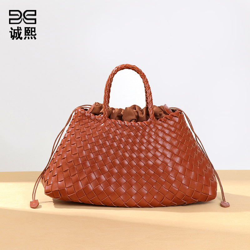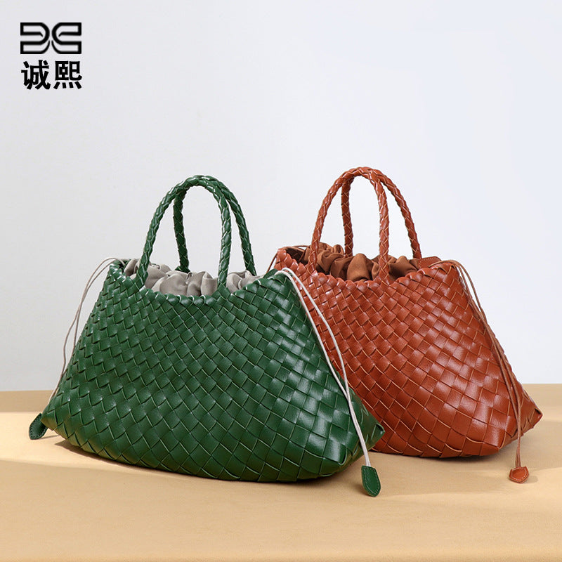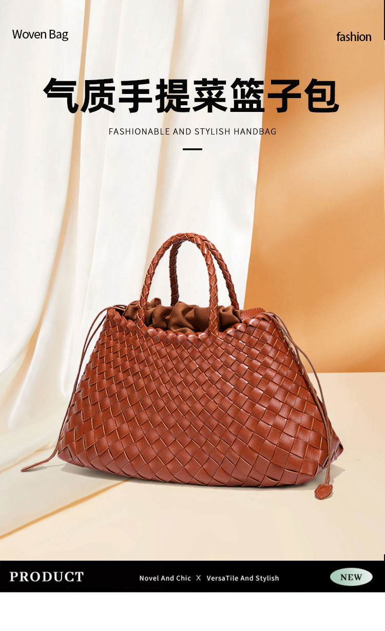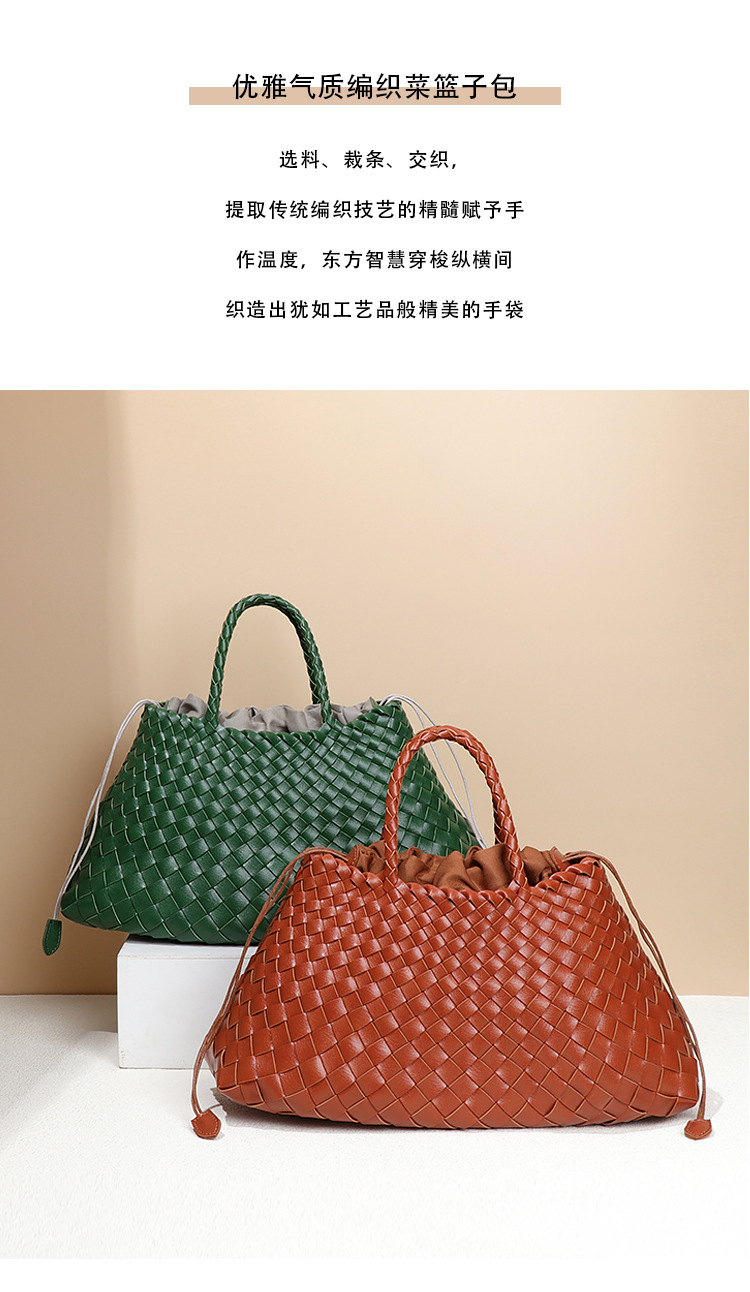 高级感纯色大容量子母手提包纯手工编织女包复古潮流菜篮子托特包