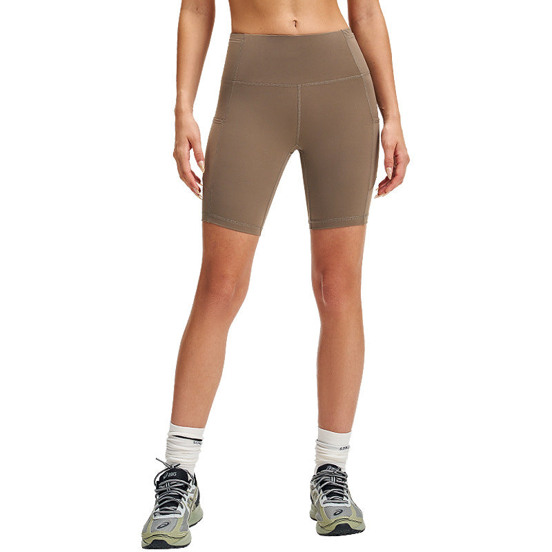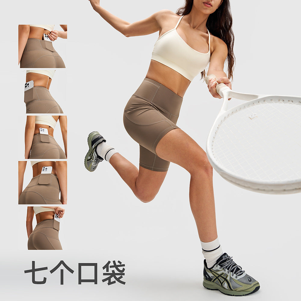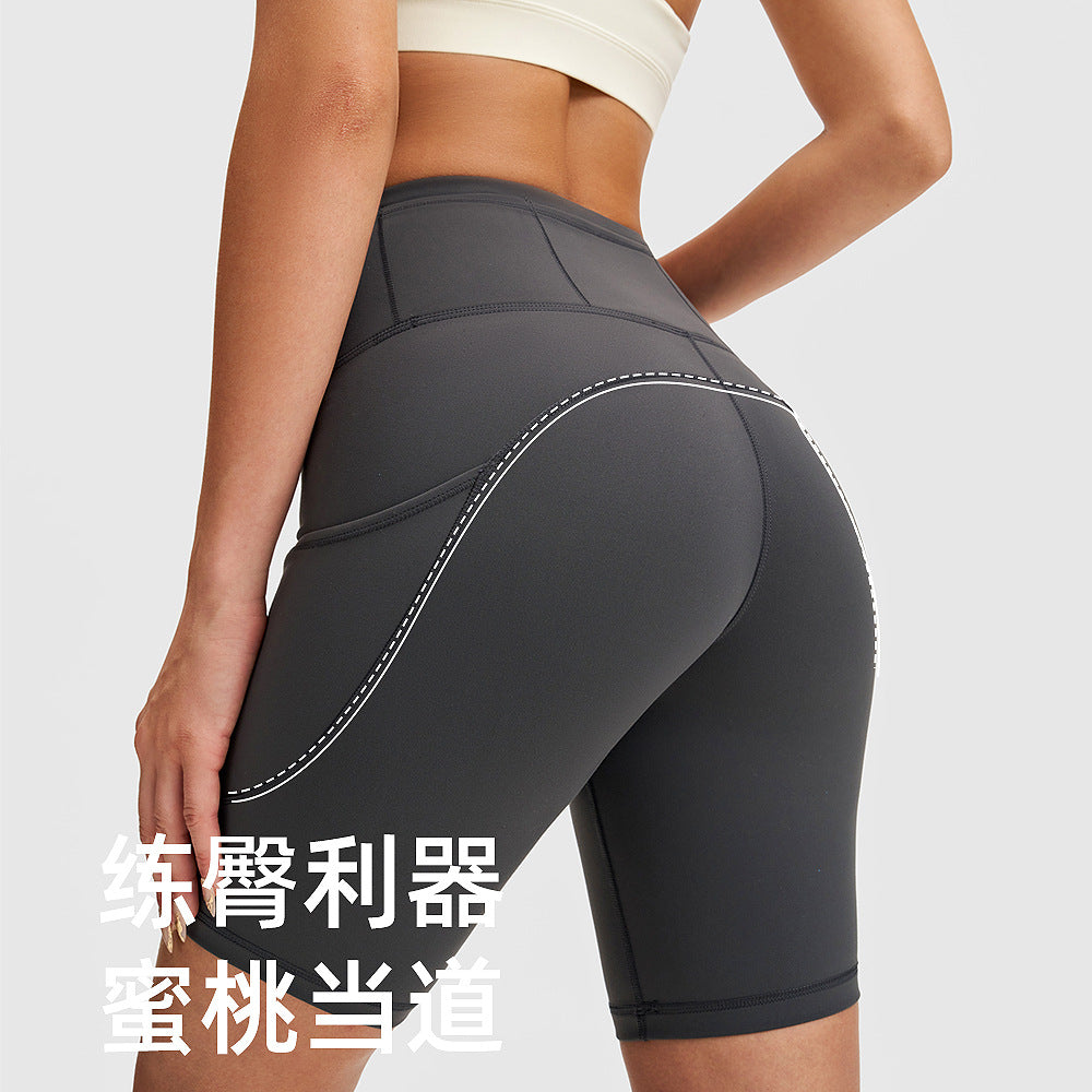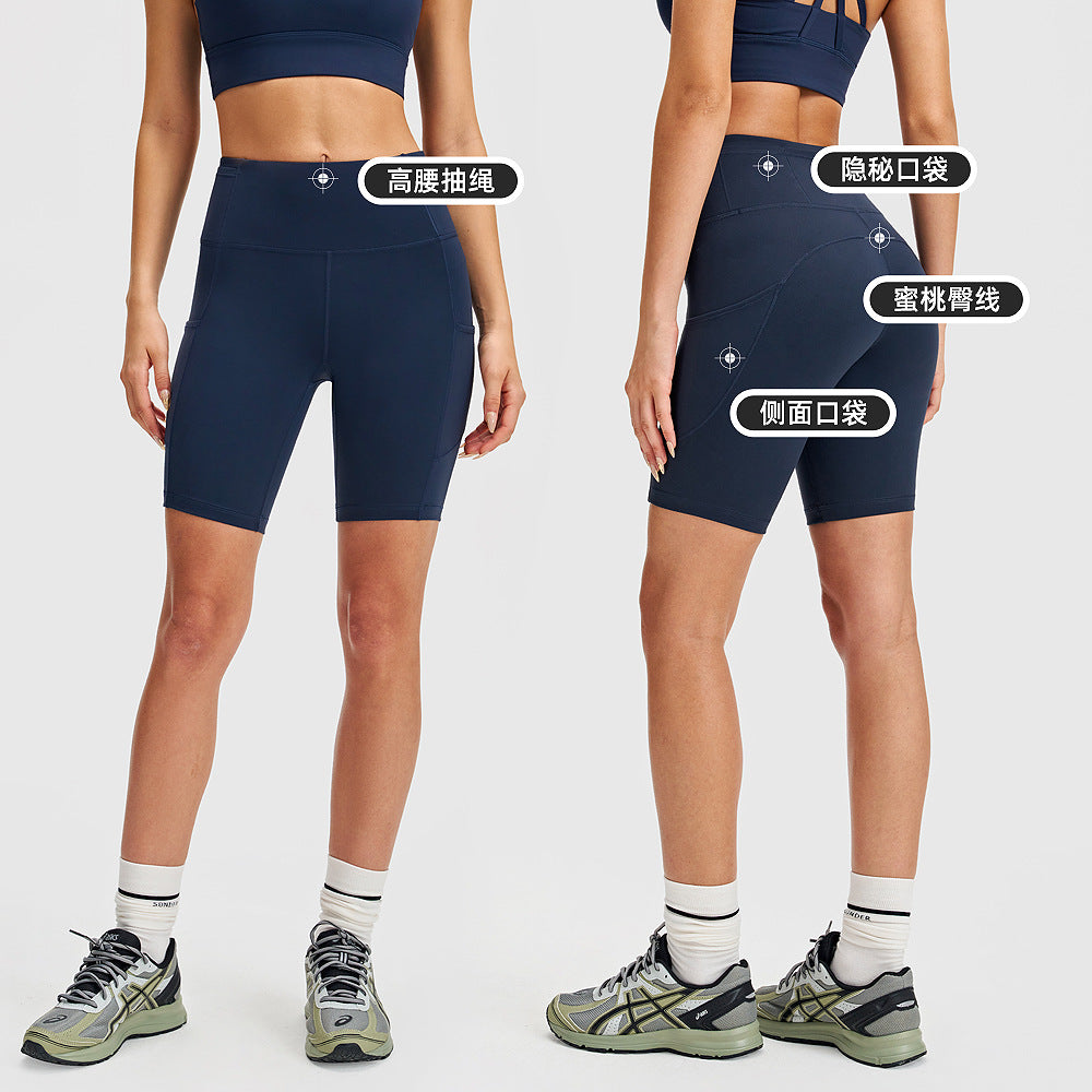 高腰lulu瑜伽短裤女高弹力口袋健身裤户外骑行裤五分运动紧身裤8"