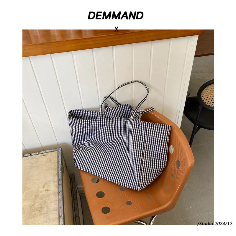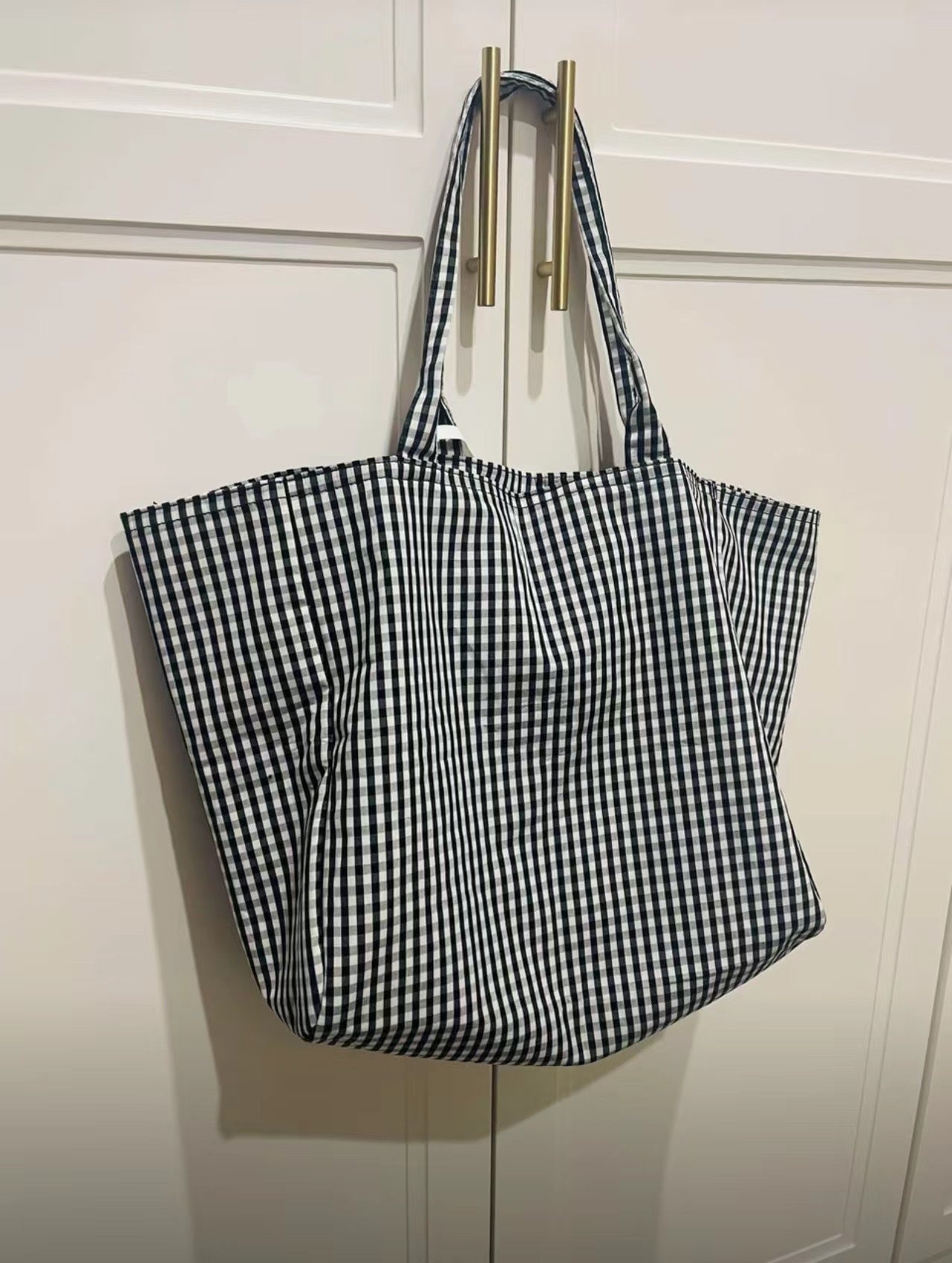 黑白格子帆布包大容量托特包包女休闲慵懒风购物袋轻便单肩包大包