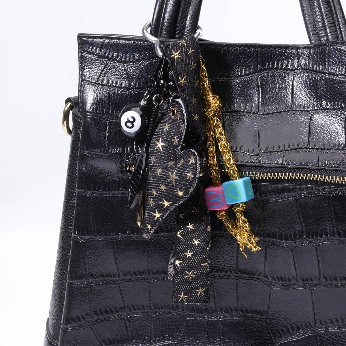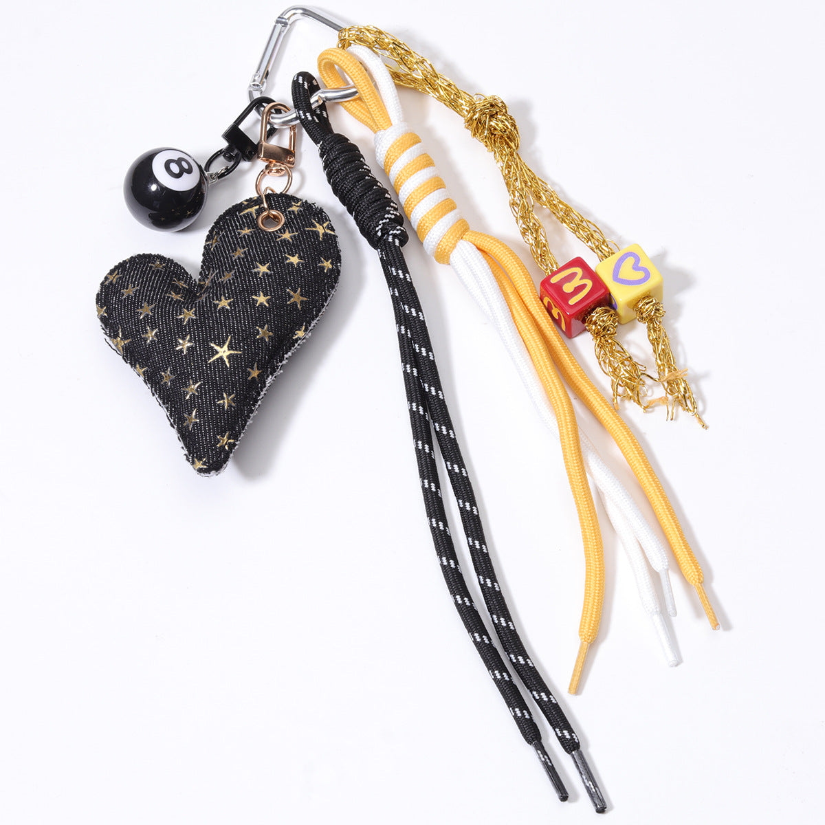 黑色牛仔包包挂系列黑8蝴蝶结包挂口红包挂件批发miu系包挂绳子配