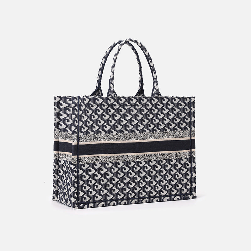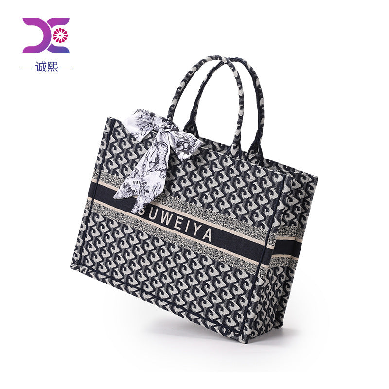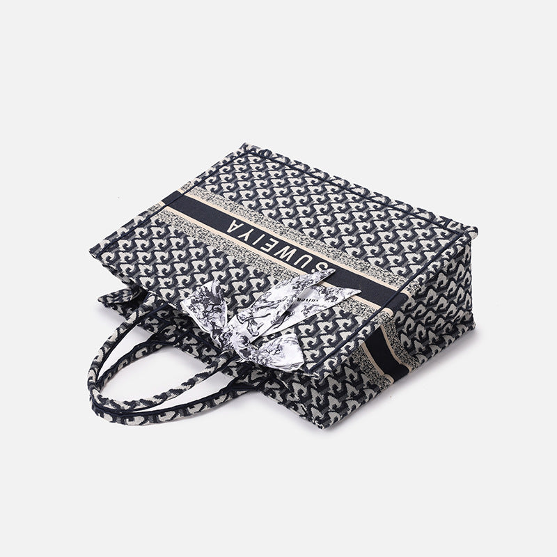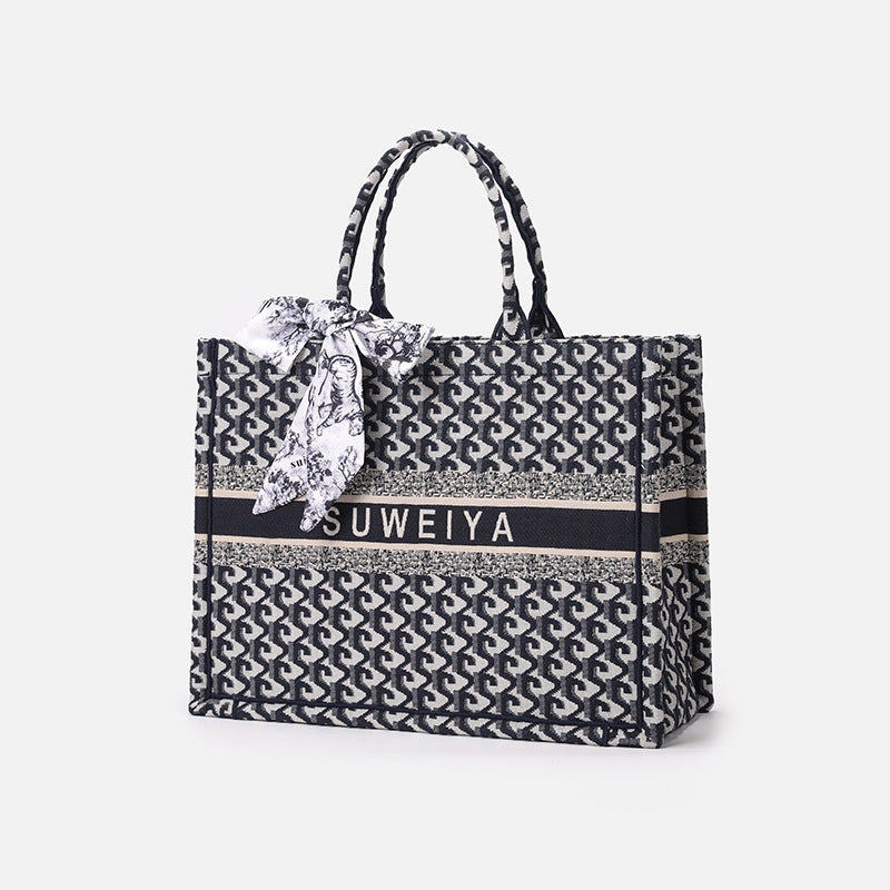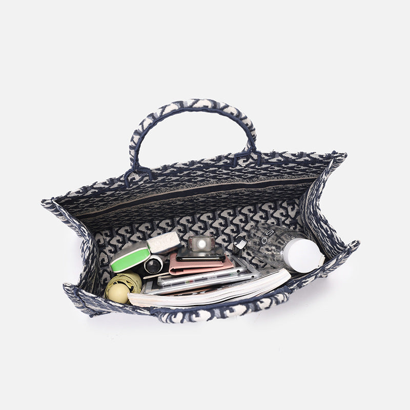 厂家定制棉麻刺绣针织托特包高级感大容量通勤手提包休闲风文件包