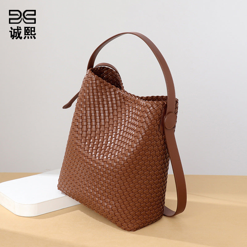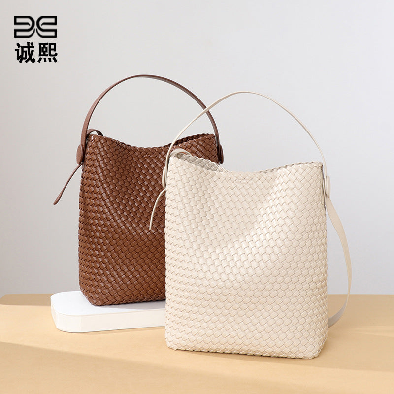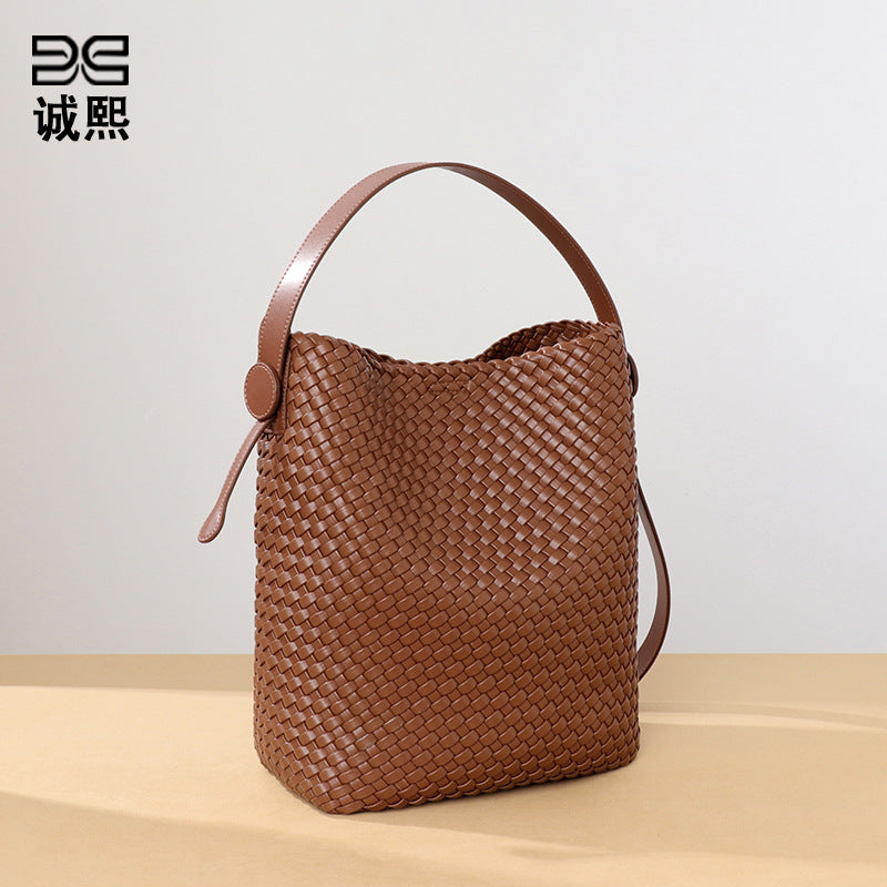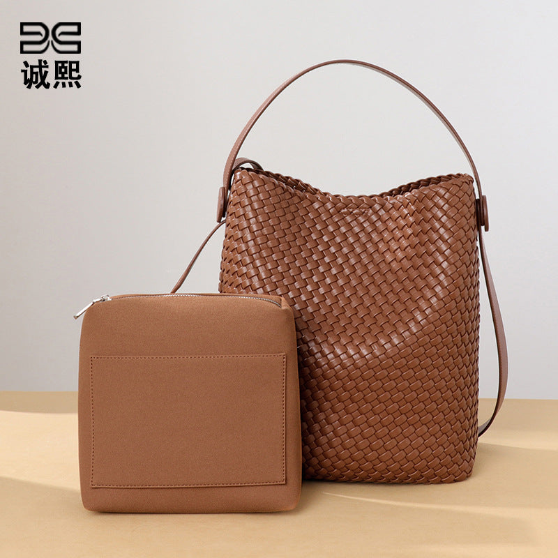 复古单肩斜挎包高级感大容量手提水桶包跨境潮流腋下包编织子母包