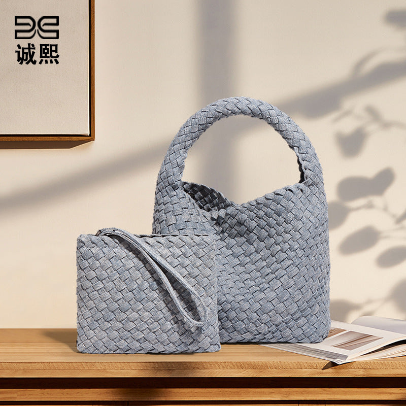 工厂定制手工编织包包简约潮流牛仔布单肩斜挎女包休闲轻便手提包
