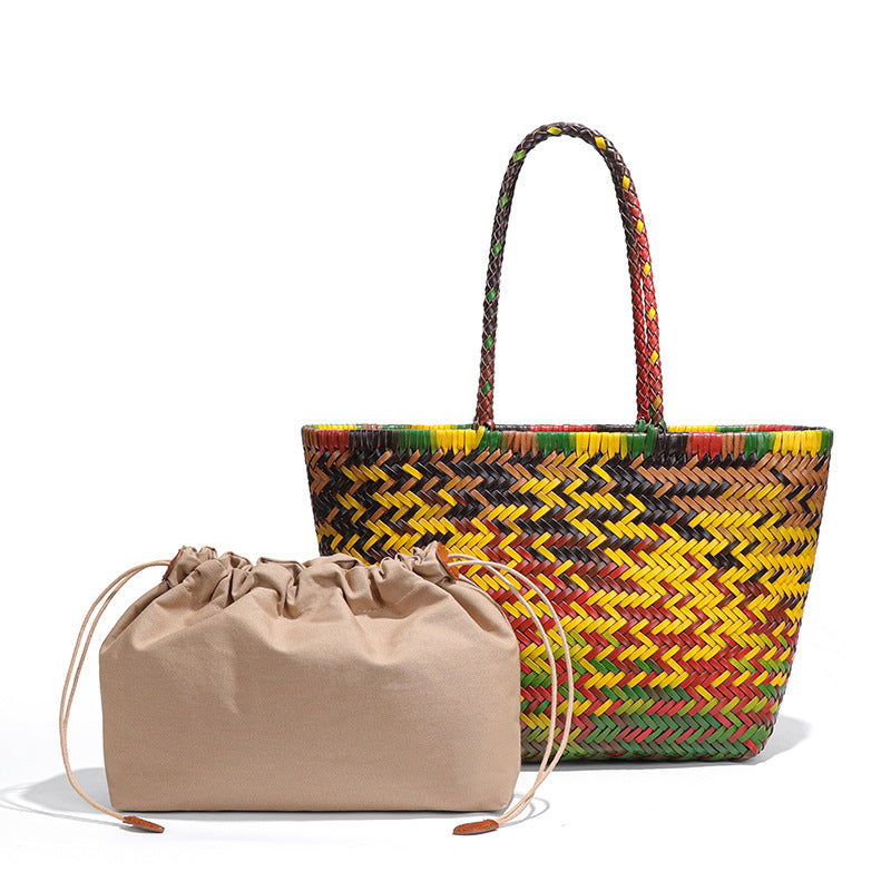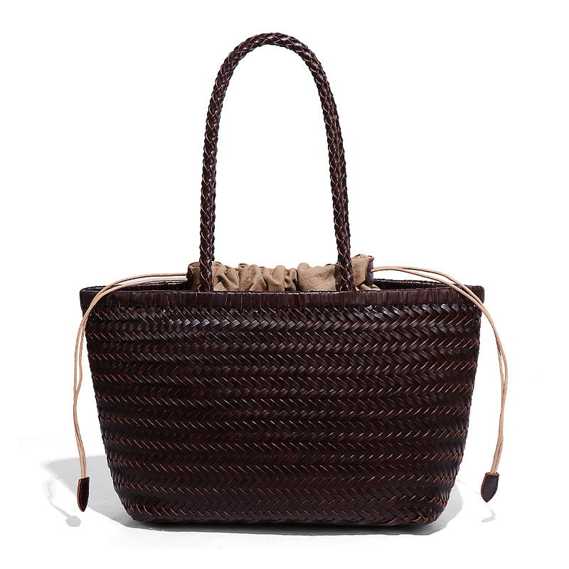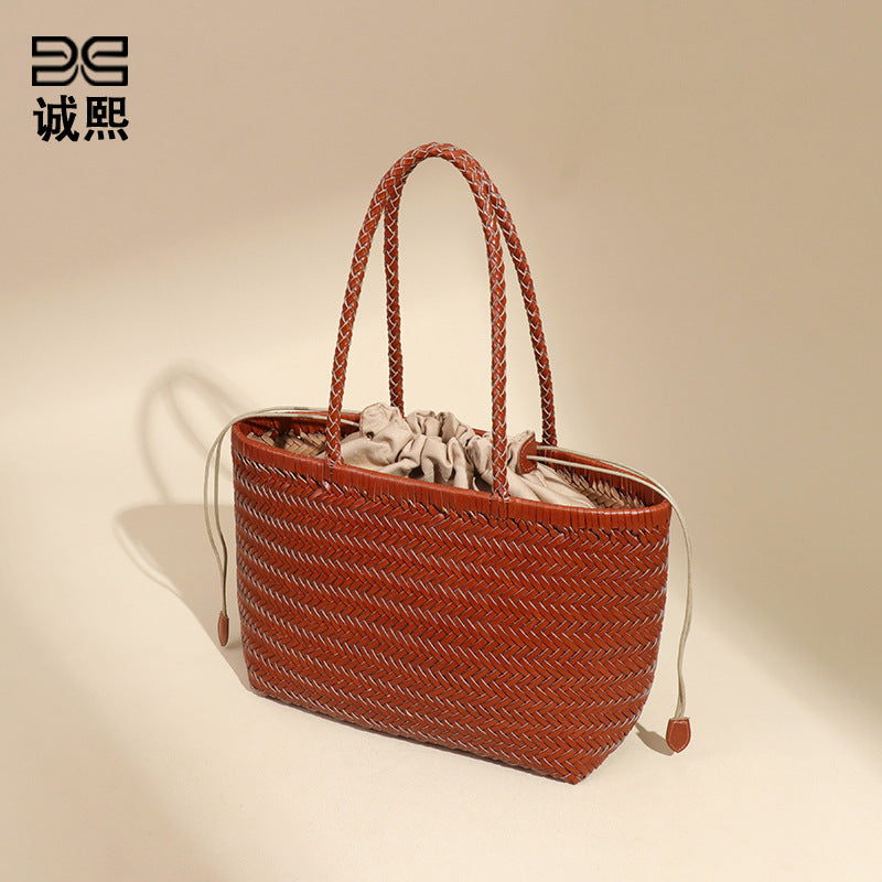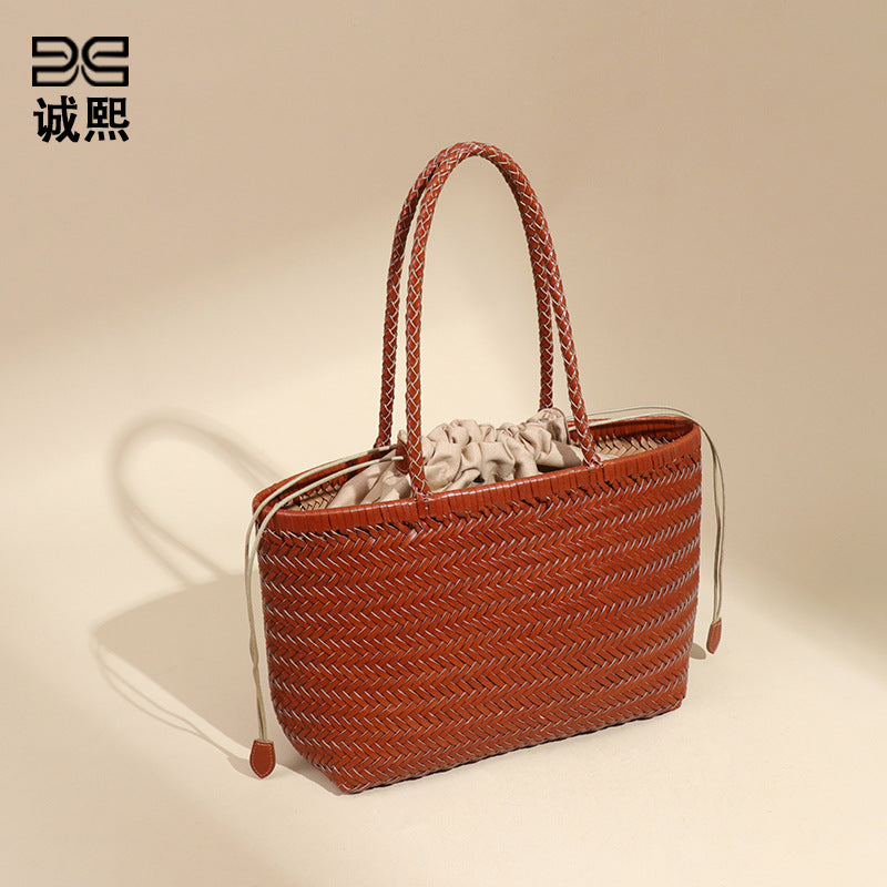 工厂定制新款菜篮子单肩女包真皮手工编织包手提大容量休闲腋下包