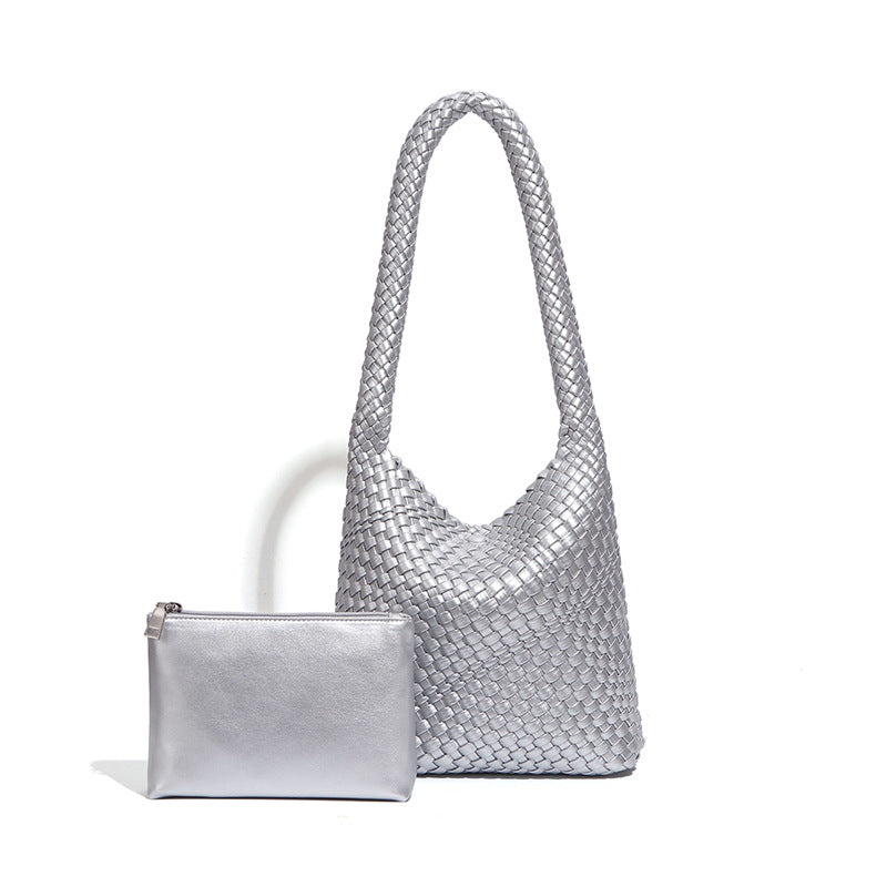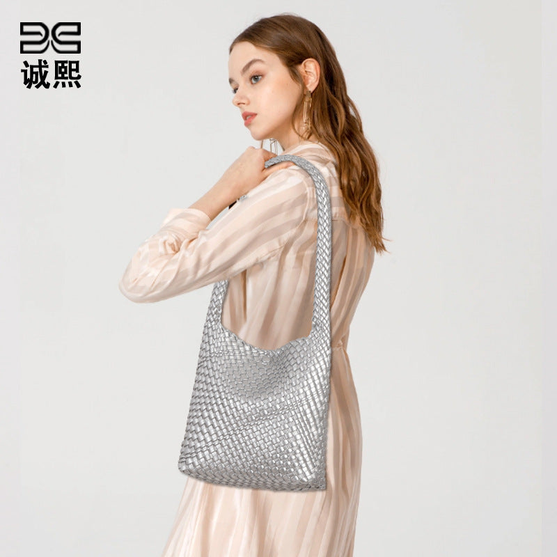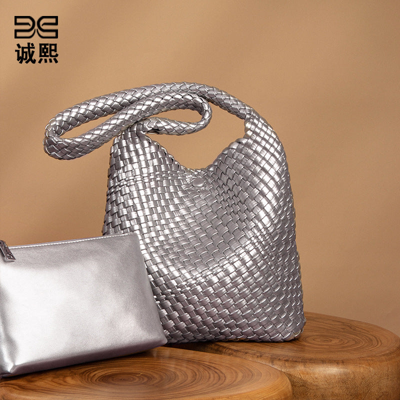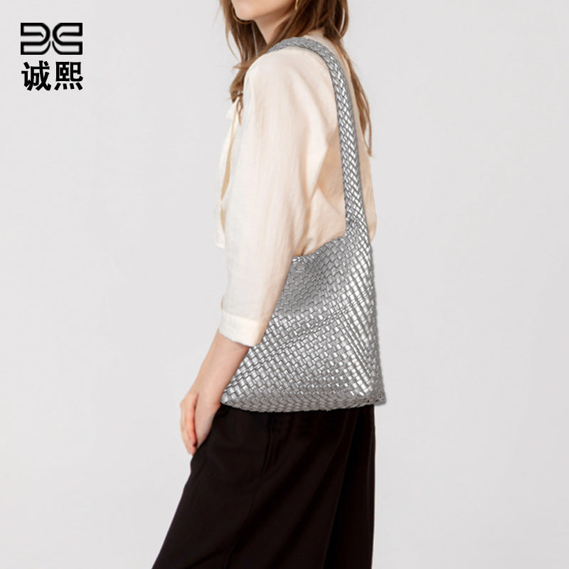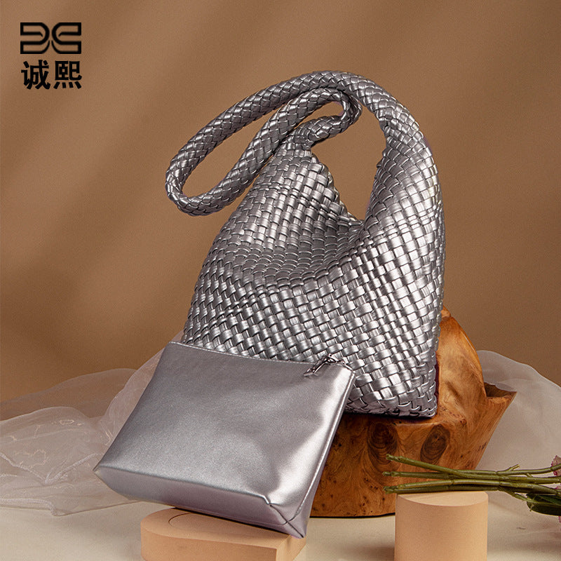 欧美风潮流单肩托特包时尚简约手工编织包包软皮大容量子母腋下包