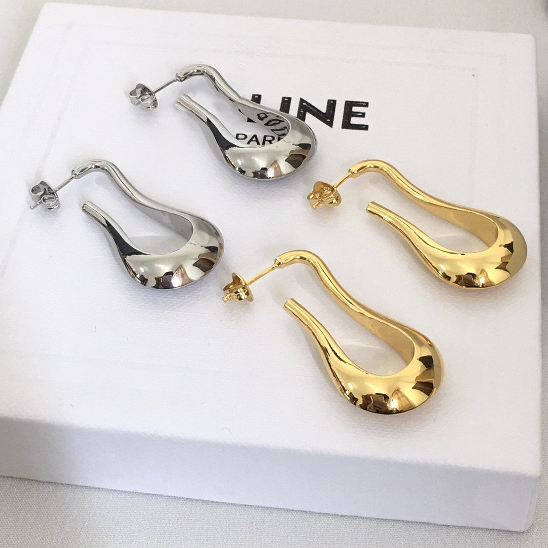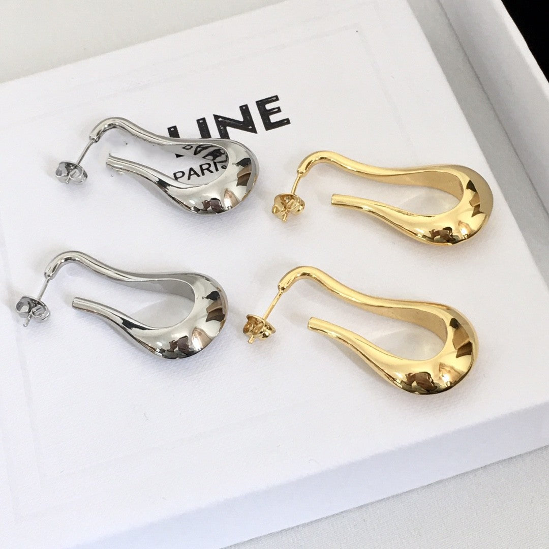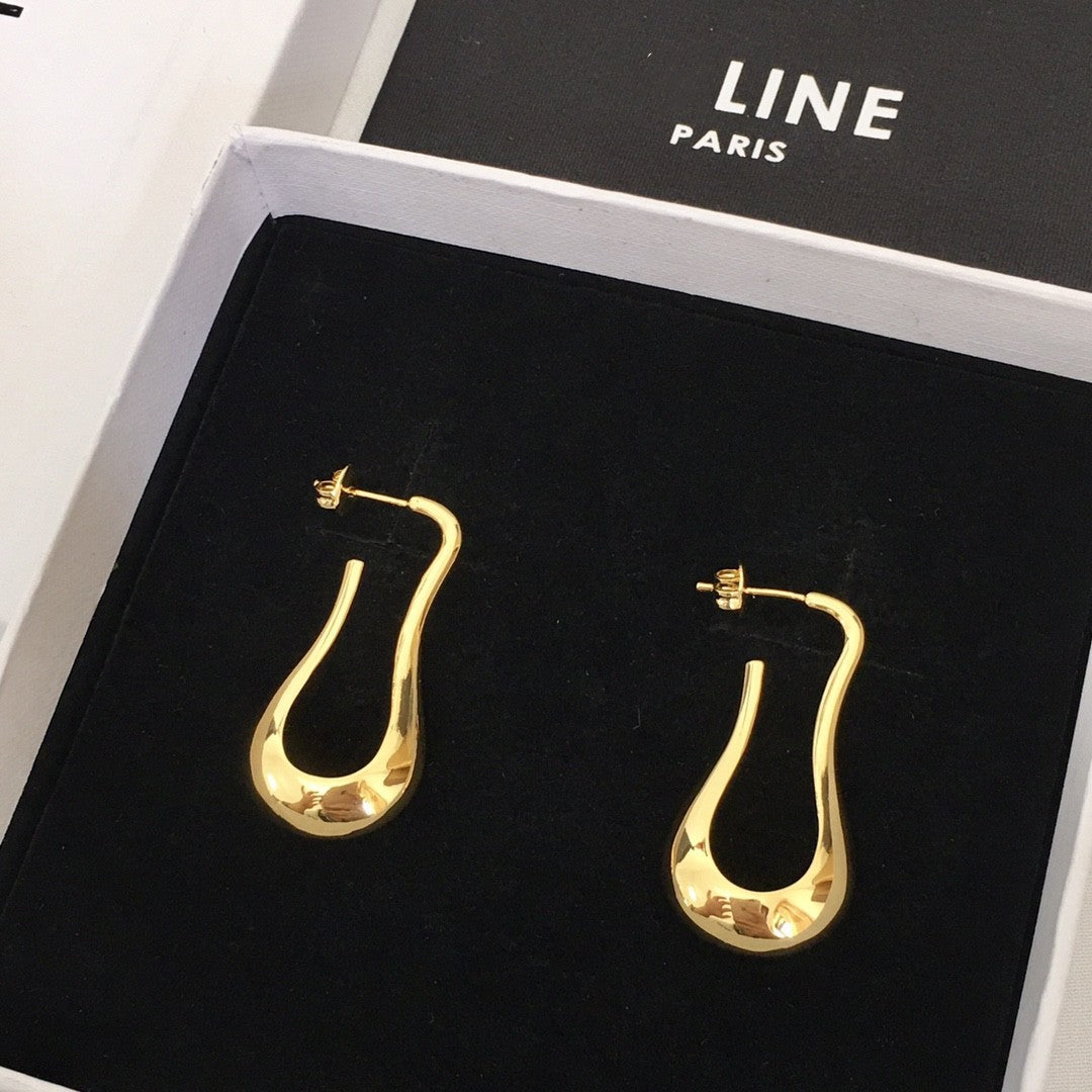 赛林家新款水滴U形耳钉女高级感个性气质黄铜镀金同款CEL风耳环批