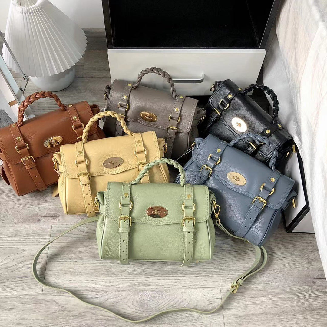 起范儿 头层黄牛皮自然摔Alexa邮差真皮通勤斜挎包百搭单肩批发