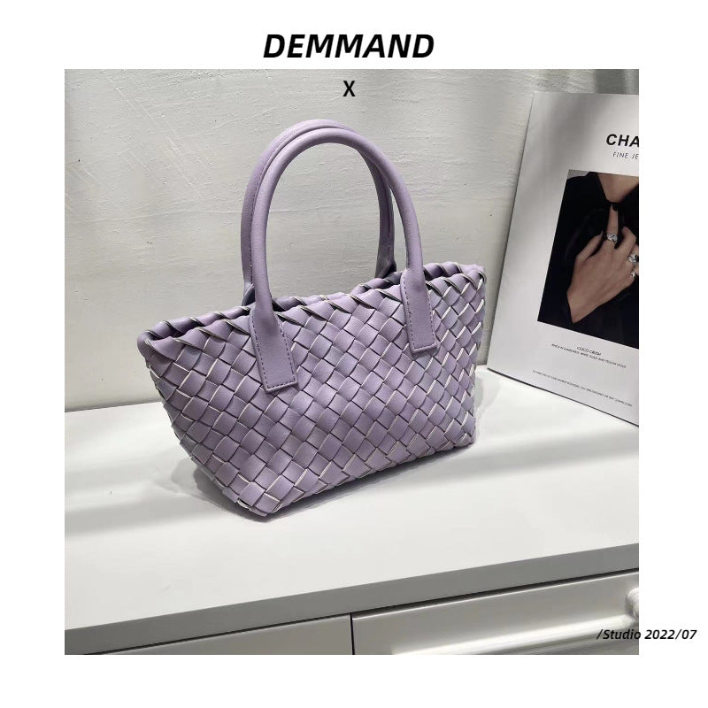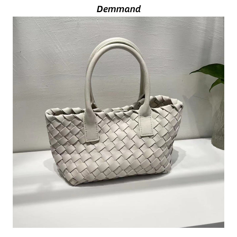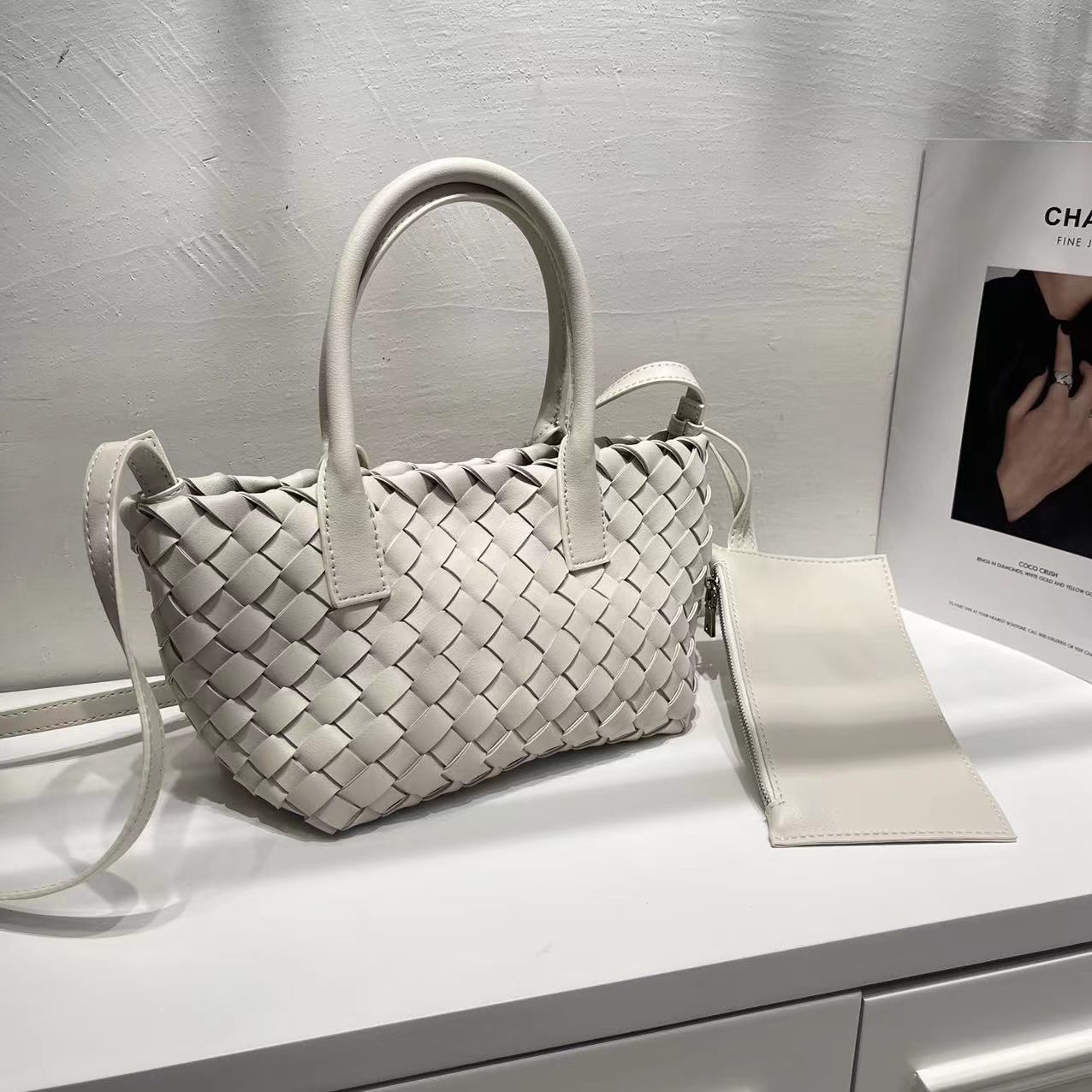 2022新款小手提包牛皮上班通勤手拎托特包斜挎包真皮菜篮子编织包