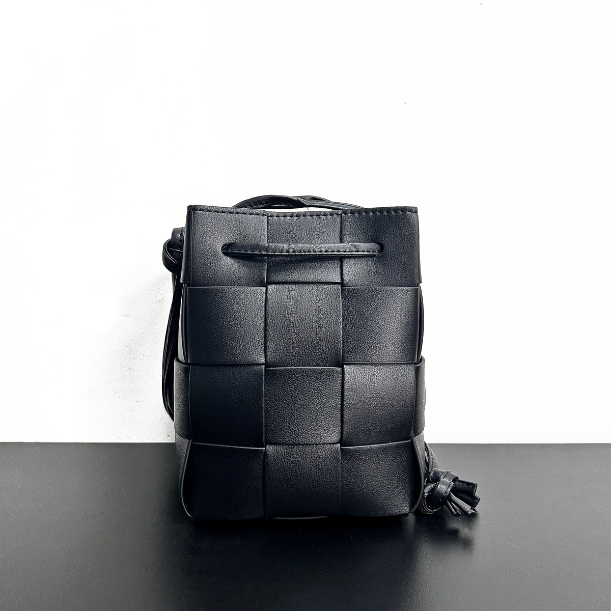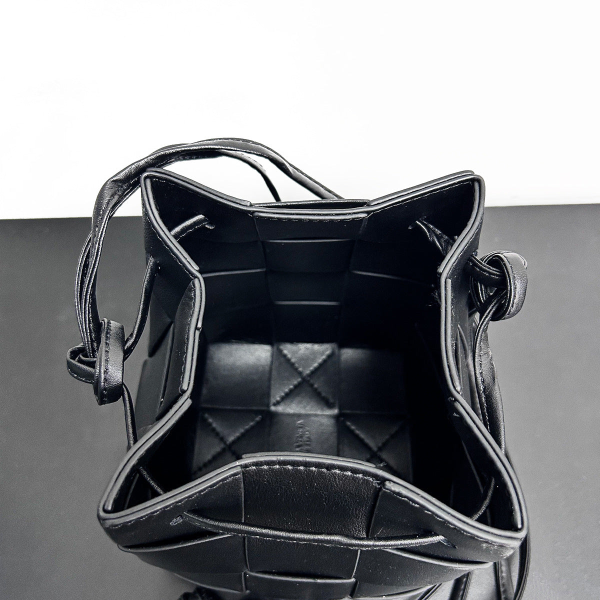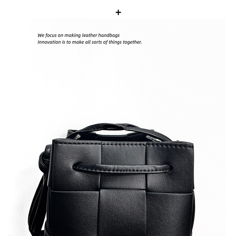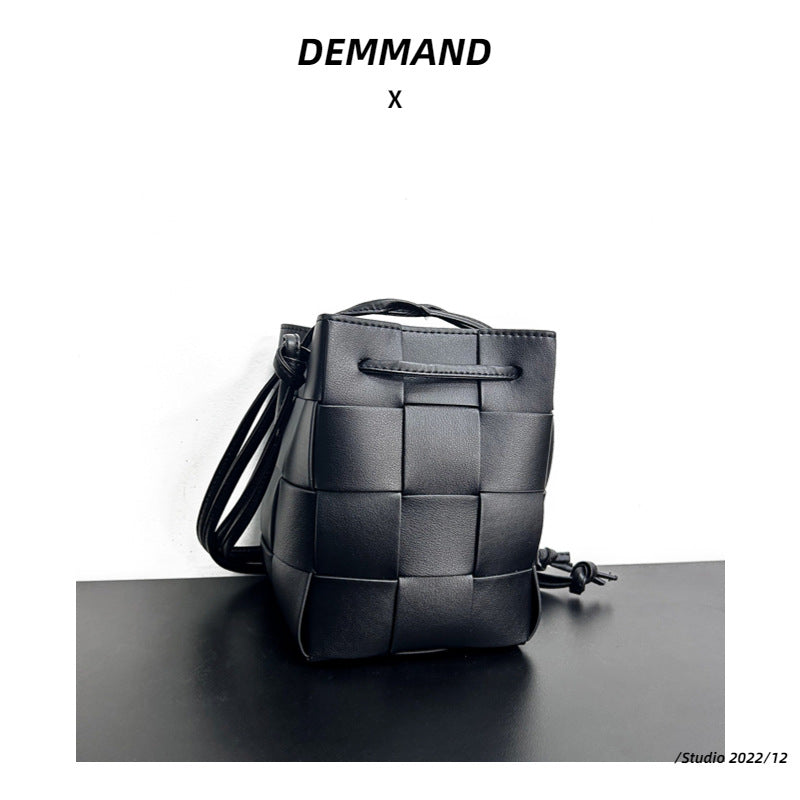 2023手拎休闲单肩包纯色手提包女包抽绳编织菜篮子水桶包轻奢风