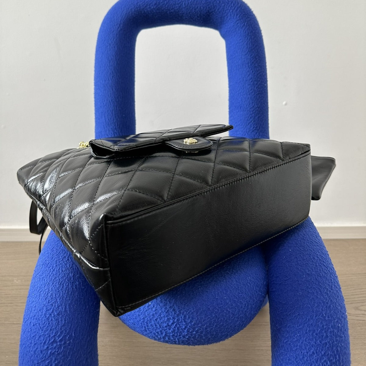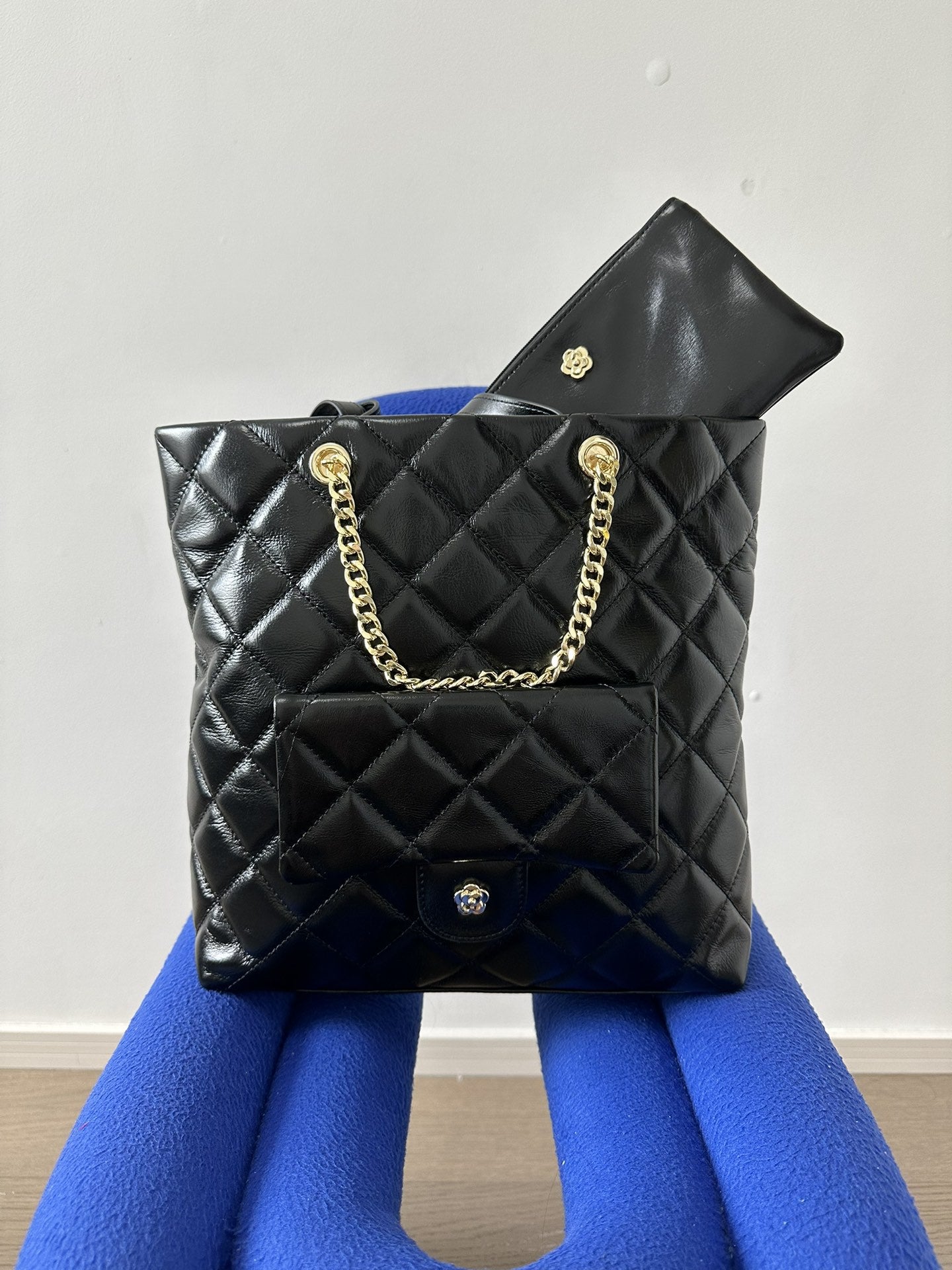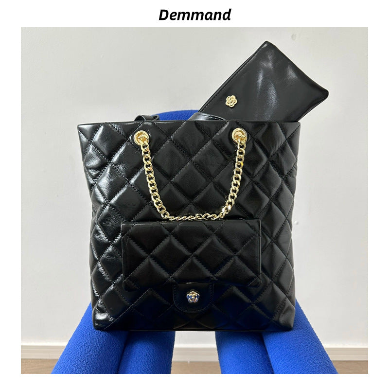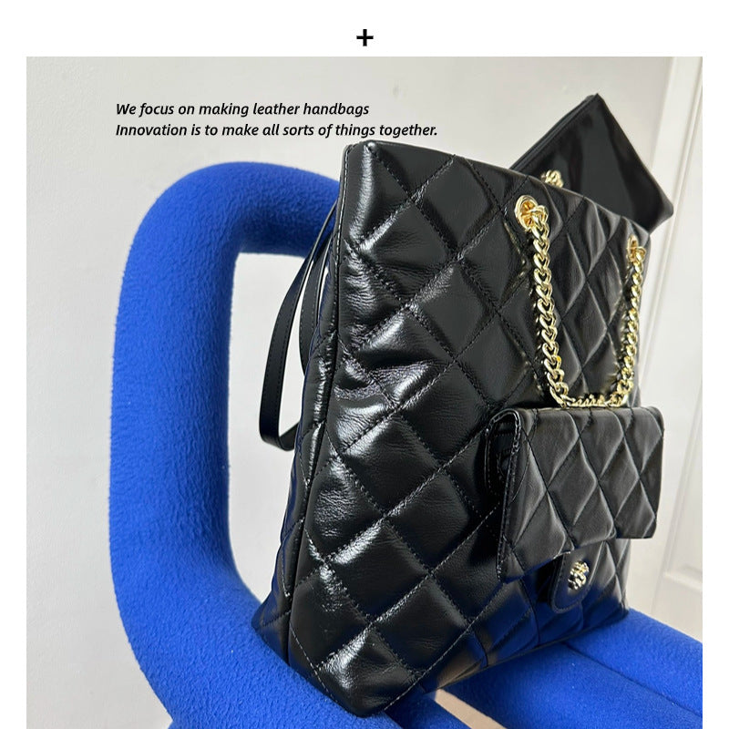 2023新款中古款小香风大容量竖款托特购物袋真皮单肩包包女