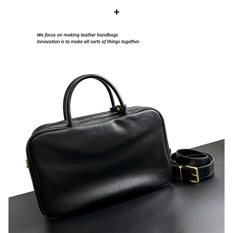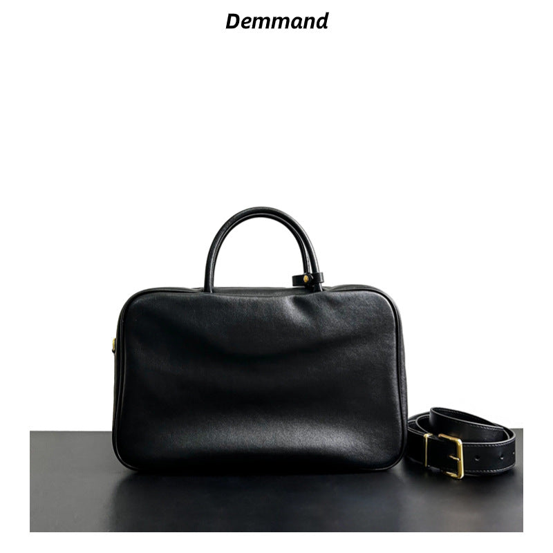 2023新款复古做旧公文包大容量通勤电脑包单肩斜挎真皮保龄球女包