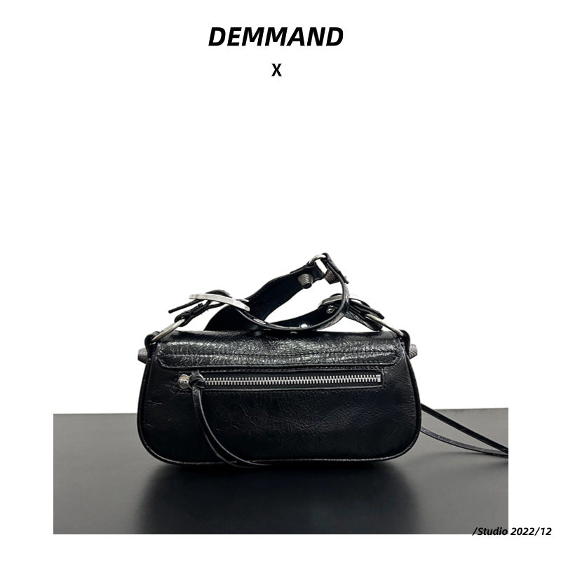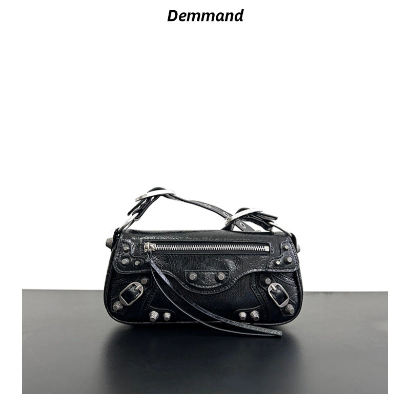 2023新款网红同款时尚暗黑机车铆钉设计方形包单肩斜挎包包中性包