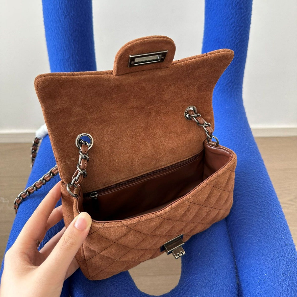 2023秋冬新款高级感复古锁扣车载线菱格链条单肩腋下包斜挎包潮女