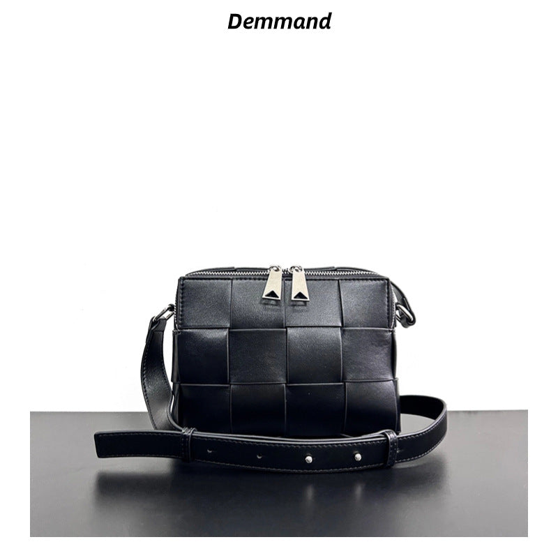 2023秋季新款极简经典大块编织双拉链开合时髦百搭单肩斜挎相机包