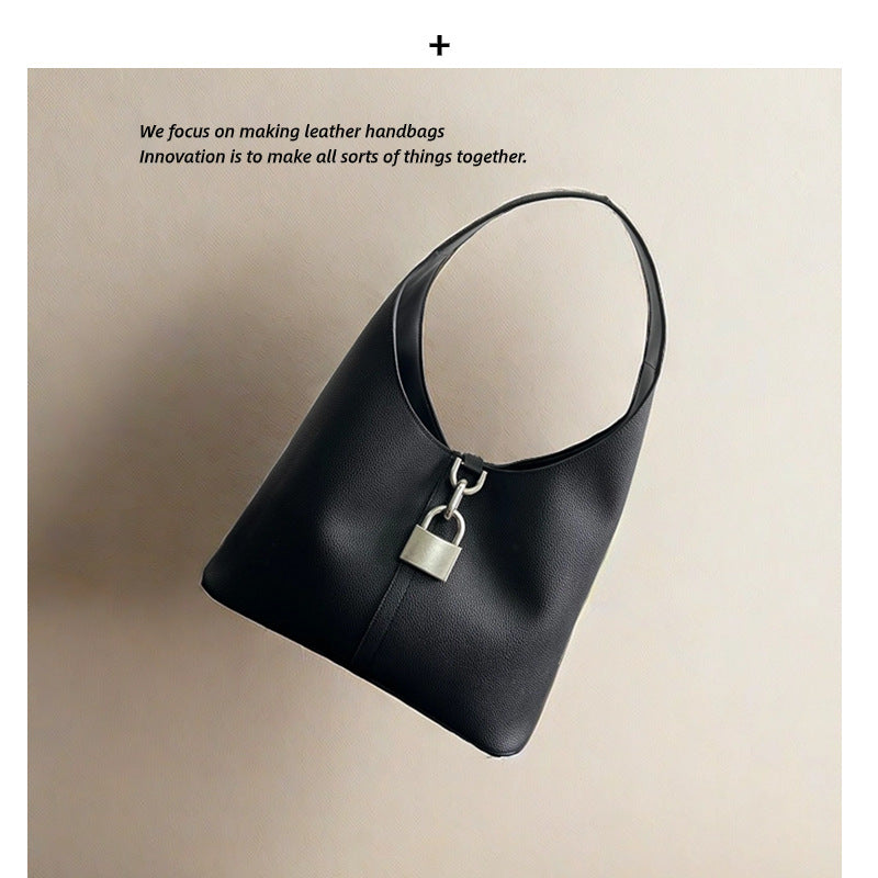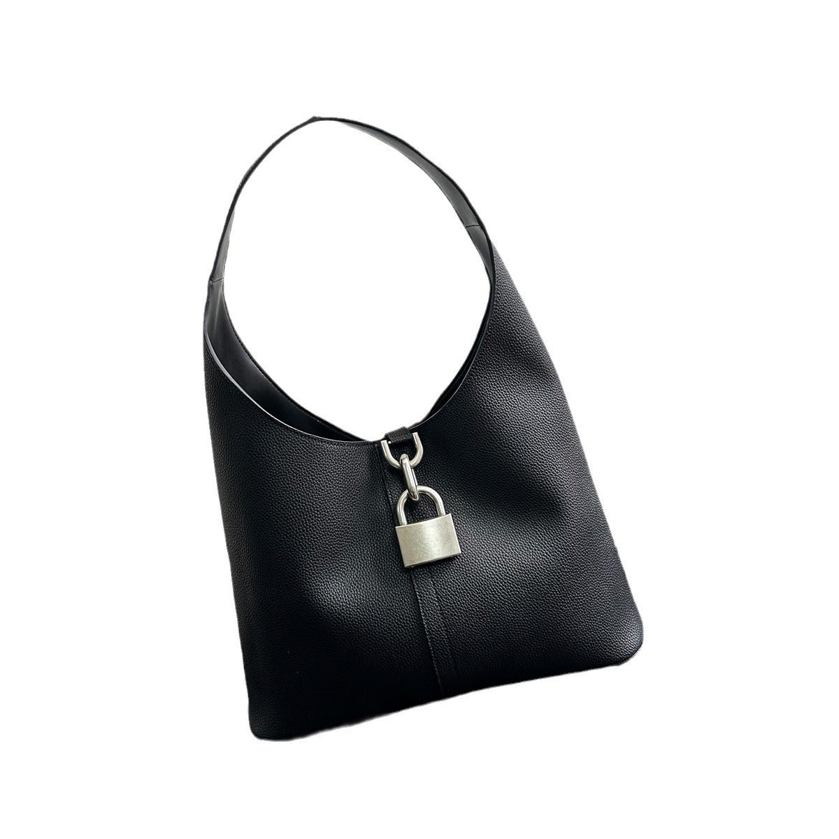 2024新款复古暗黑百搭简约机车锁扣包手提菜篮子包手拎小包潮品