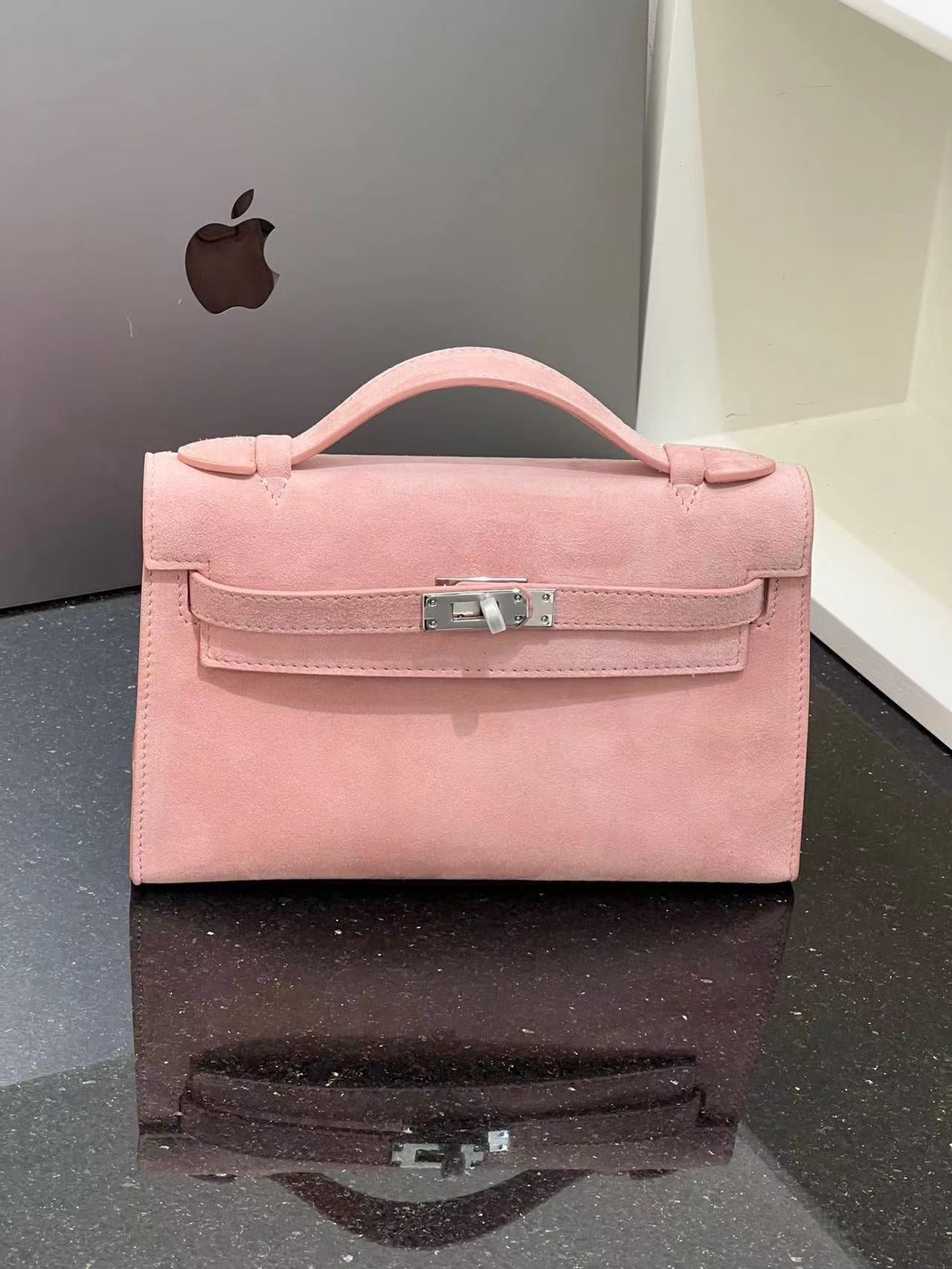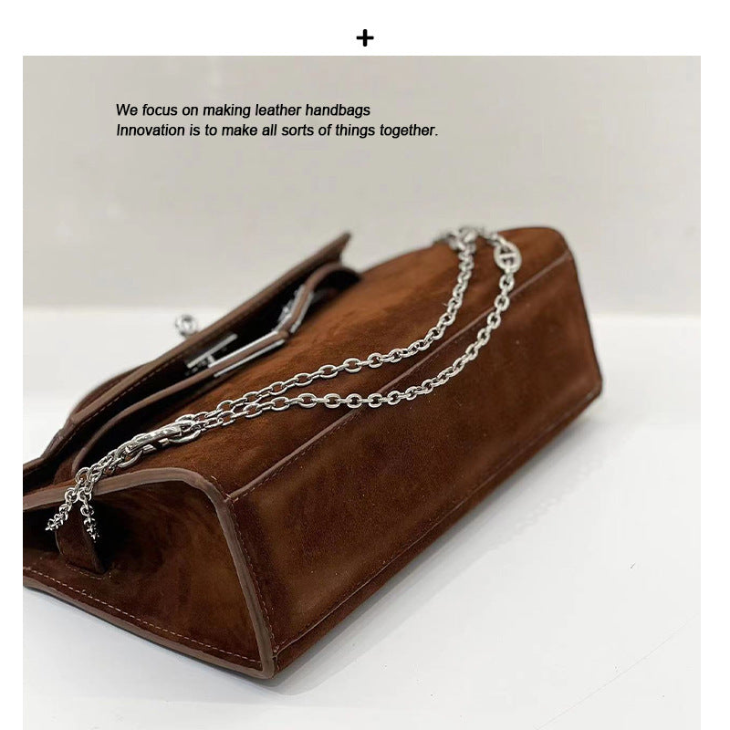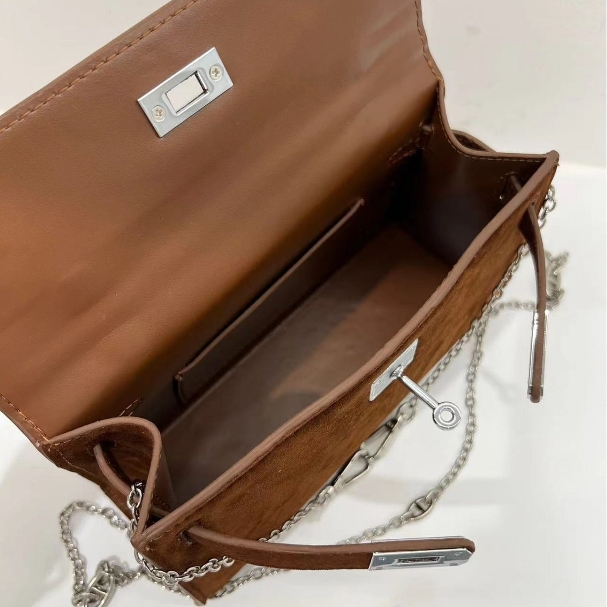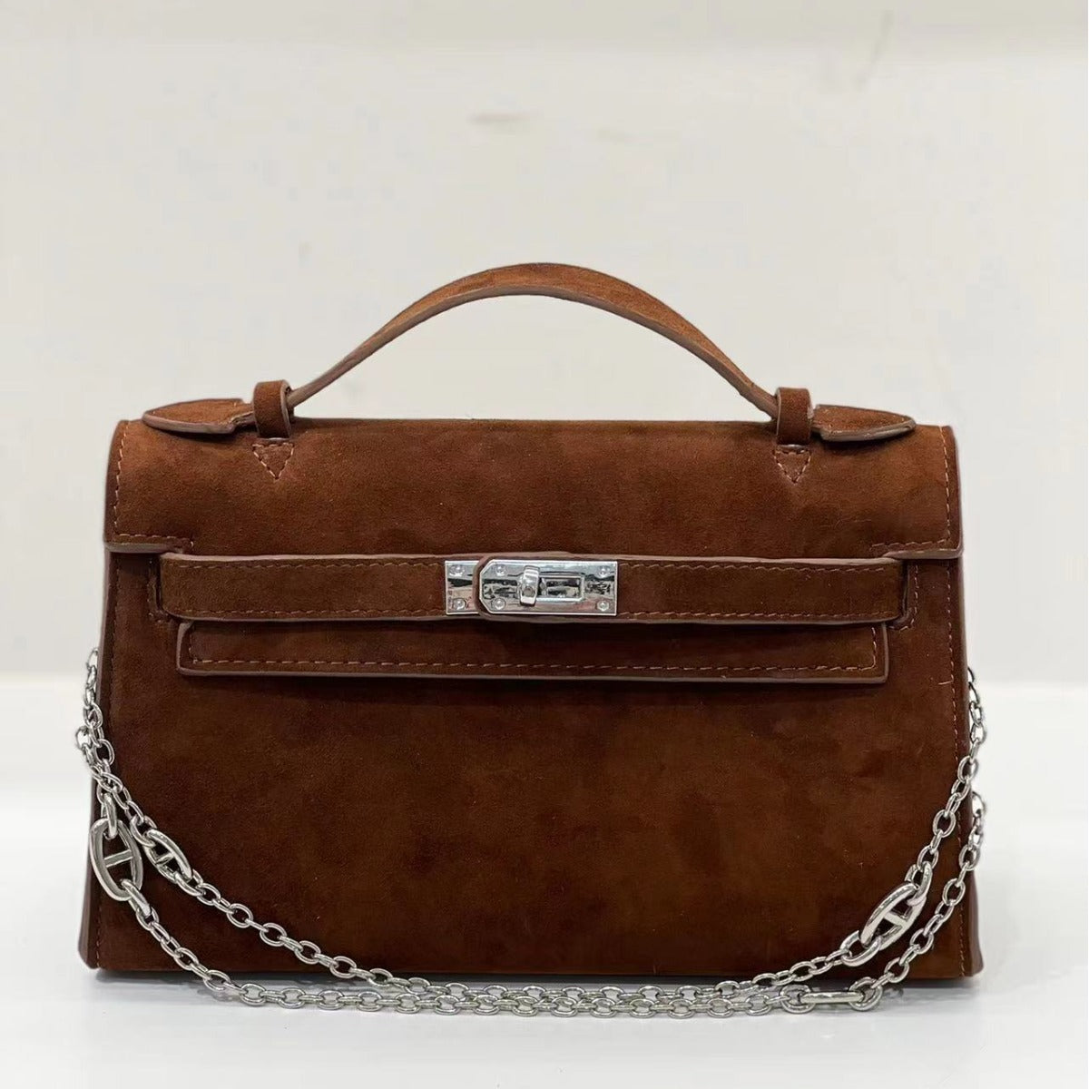 2024新款头层麂皮磨砂牛皮凯丽包时尚锁扣单肩手提斜挎包包