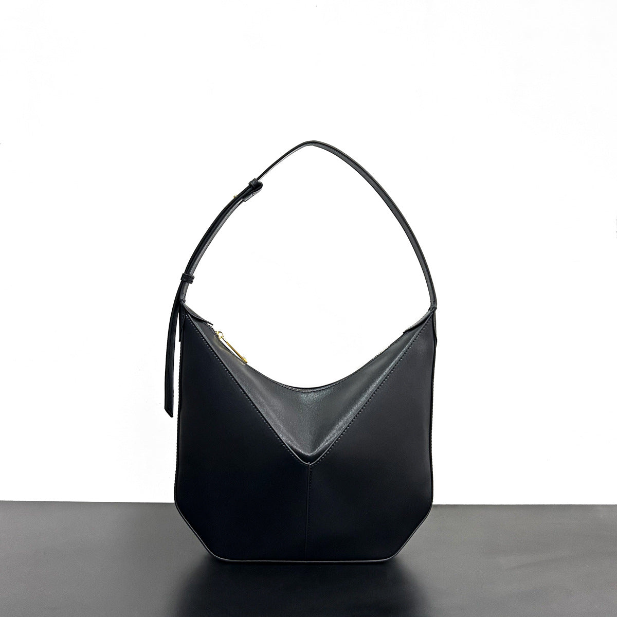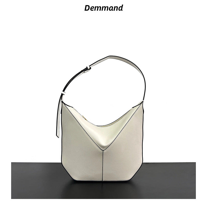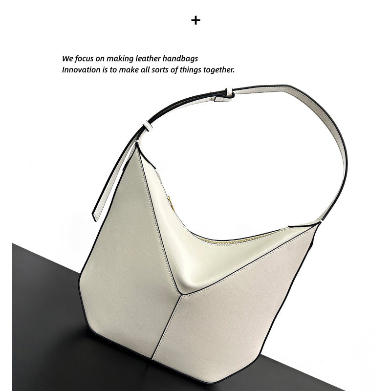 2024新款小牛皮高级感小众设计黑边手提单肩斜挎腋下包真皮吊床包