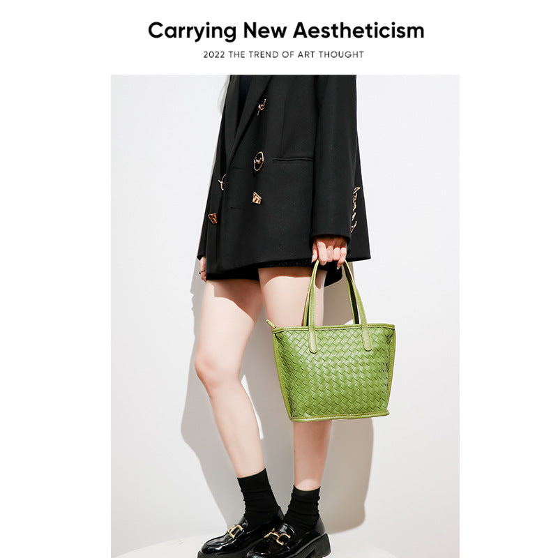 2024新款欧美菜篮子水桶包包高级感女士单肩托特包手提编织子母包