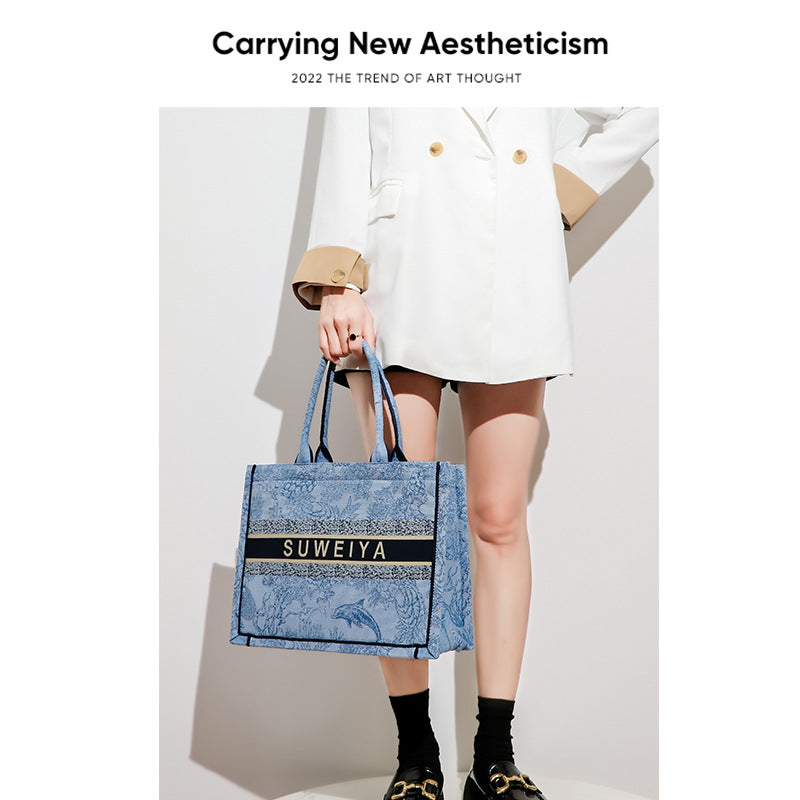 2024新款潮定制针织棉麻刺绣女包休闲大容量托特包上班通勤手提包