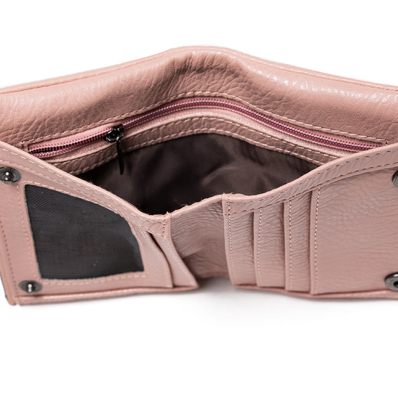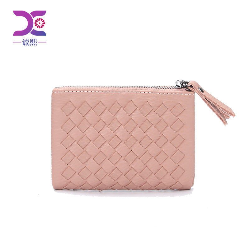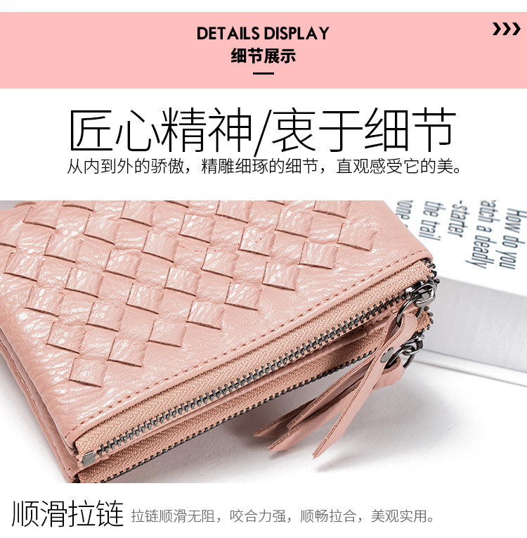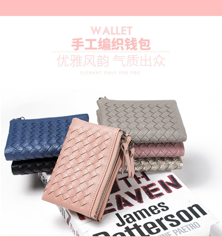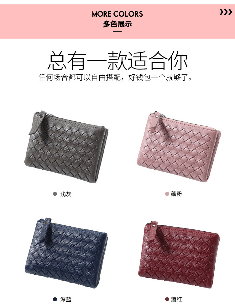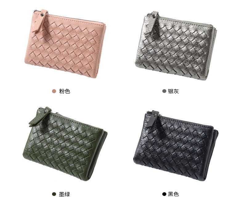 2024新款韩版时尚超薄双拉链搭两折编织女士短款钱包皮夹包