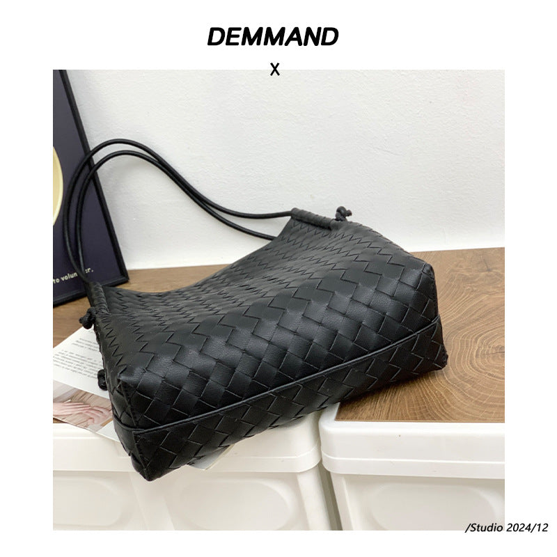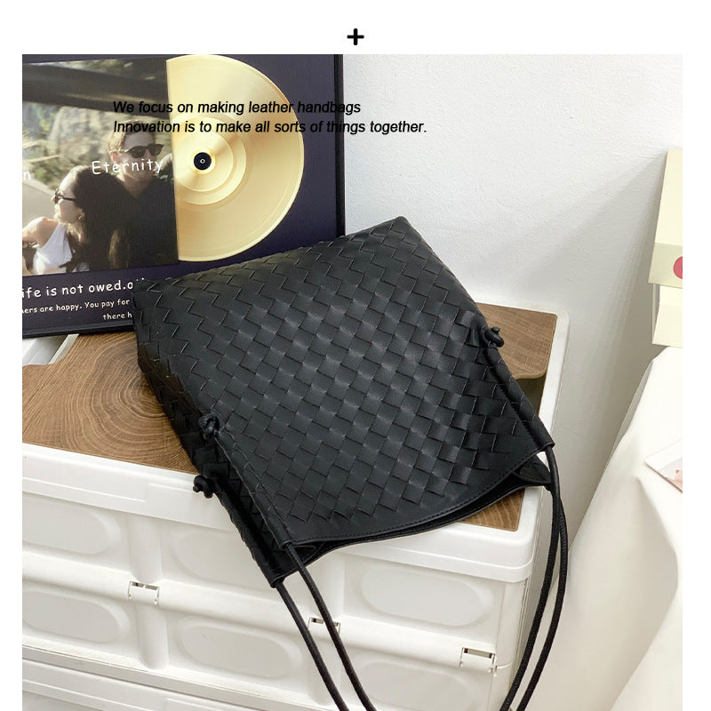 2024春夏季新款牛皮女包菜篮子编织大容量单肩斜挎手提包包编织女