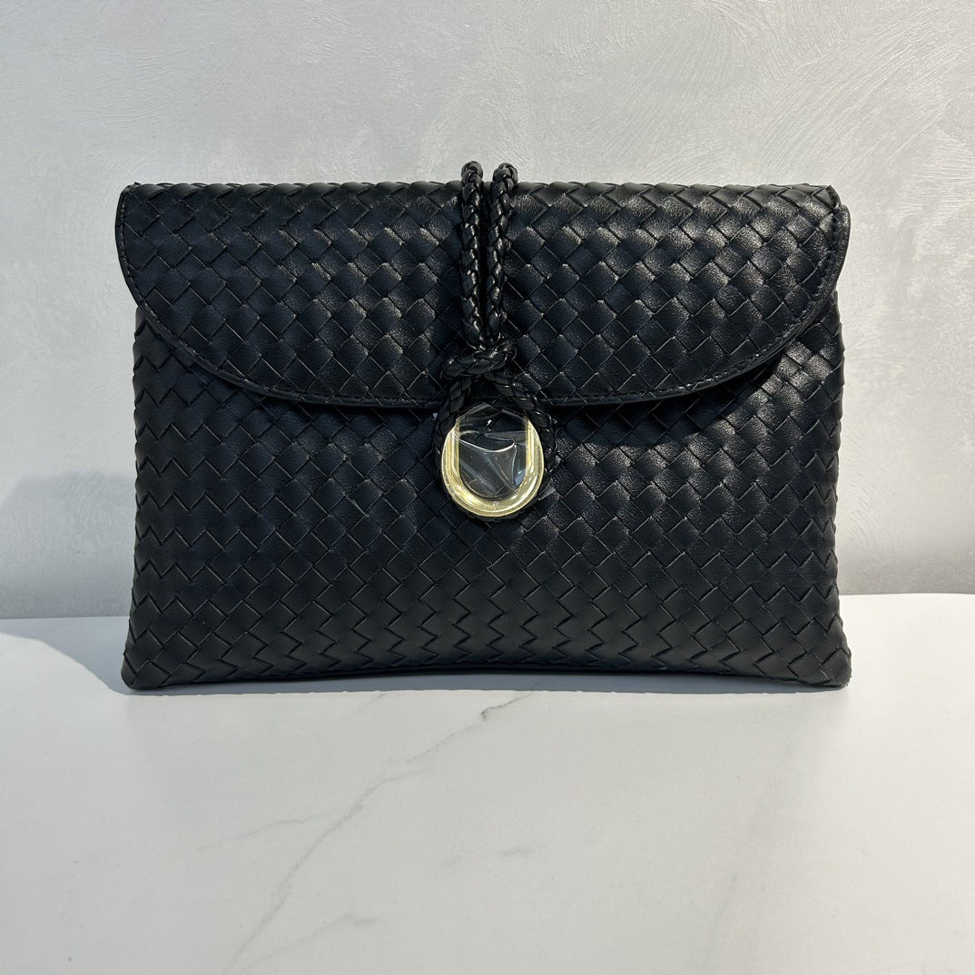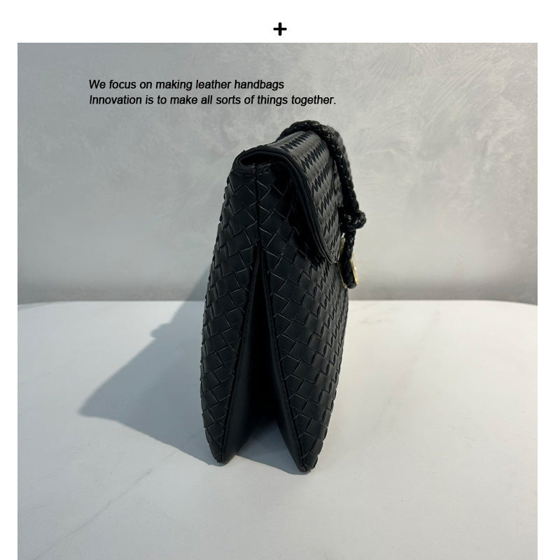 2024秋冬季跨境新款高级感优质牛皮手工编织手拿包单肩斜挎包包女