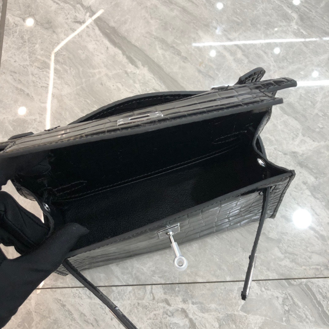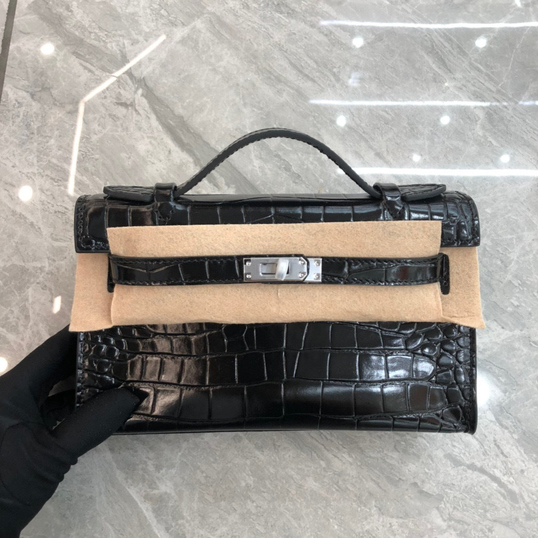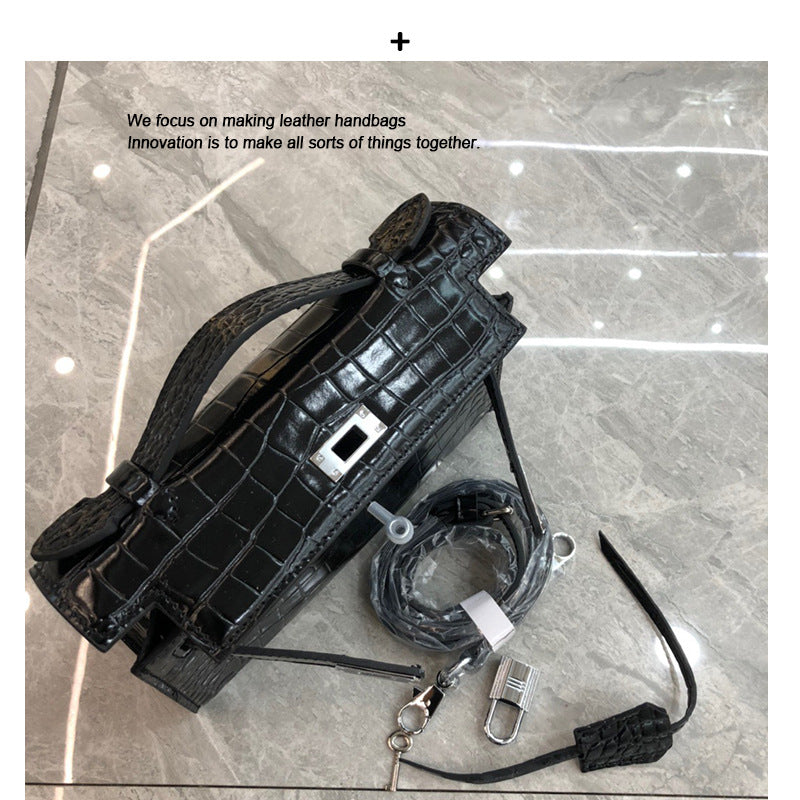 2024新款真皮女包鳄鱼纹牛皮凯莉手拿包晚宴包时尚单肩斜跨包