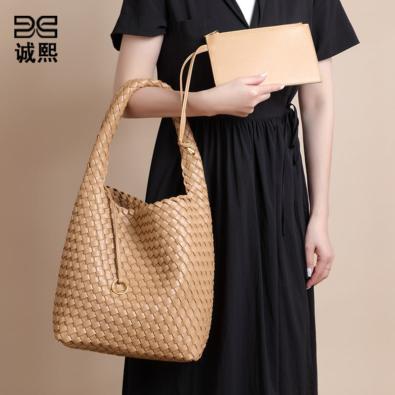2025亚马逊新款手提编织女包大容量高级感托特包休闲百搭子母包包