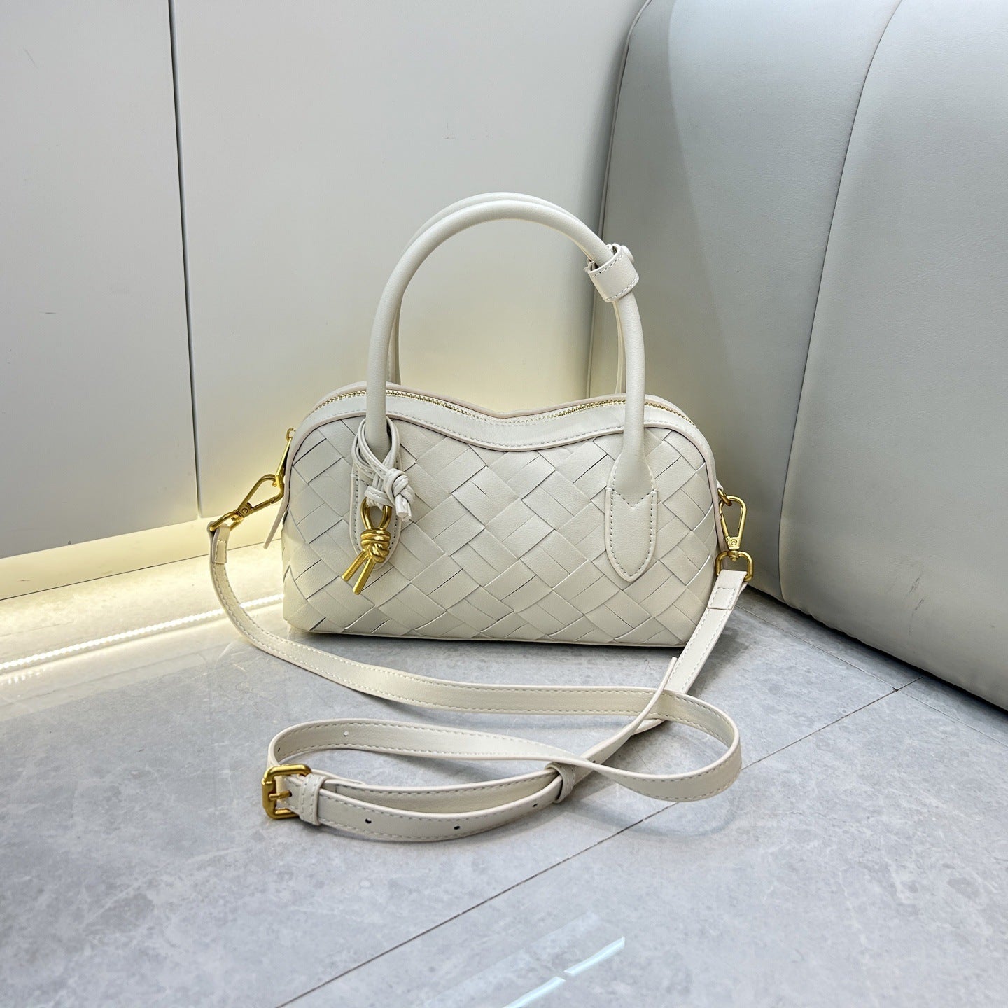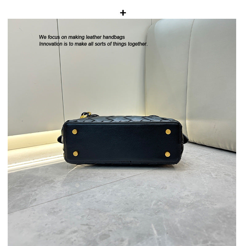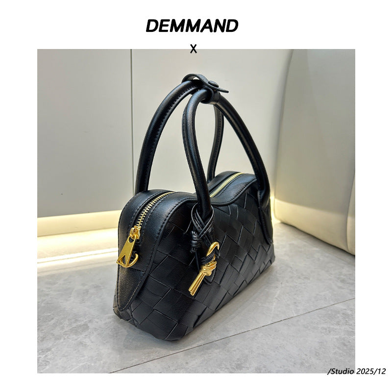 2025单肩保龄球真皮女包新款手工编织腋下包通勤大容量批发斜挎包