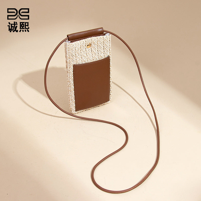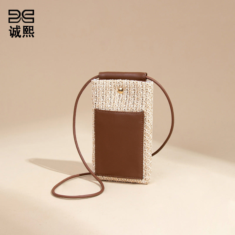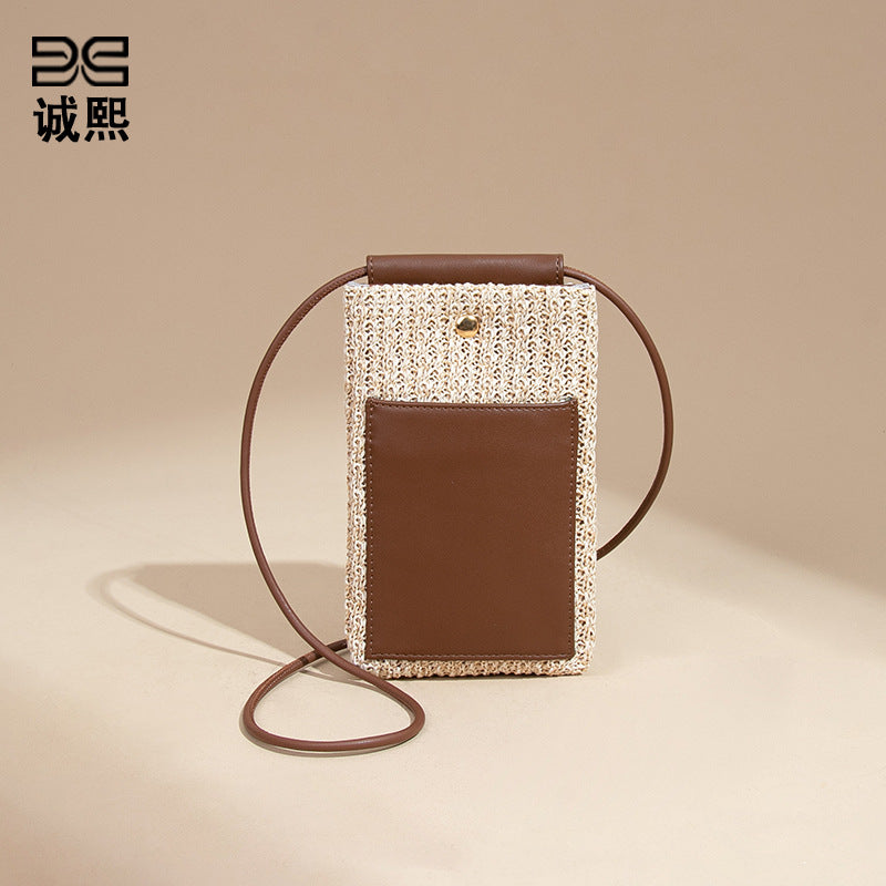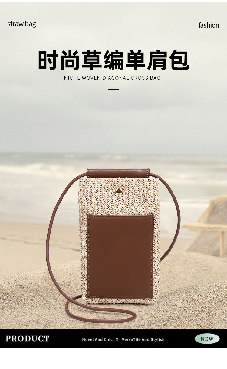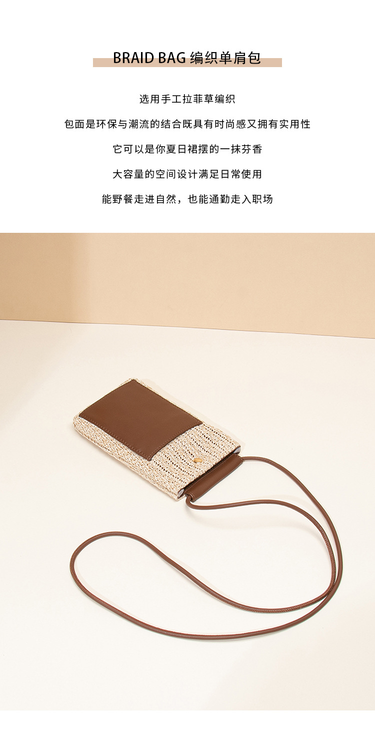 2025夏季新款拉菲草手机包清新百搭单肩斜挎包竖款时尚零钱袋小包