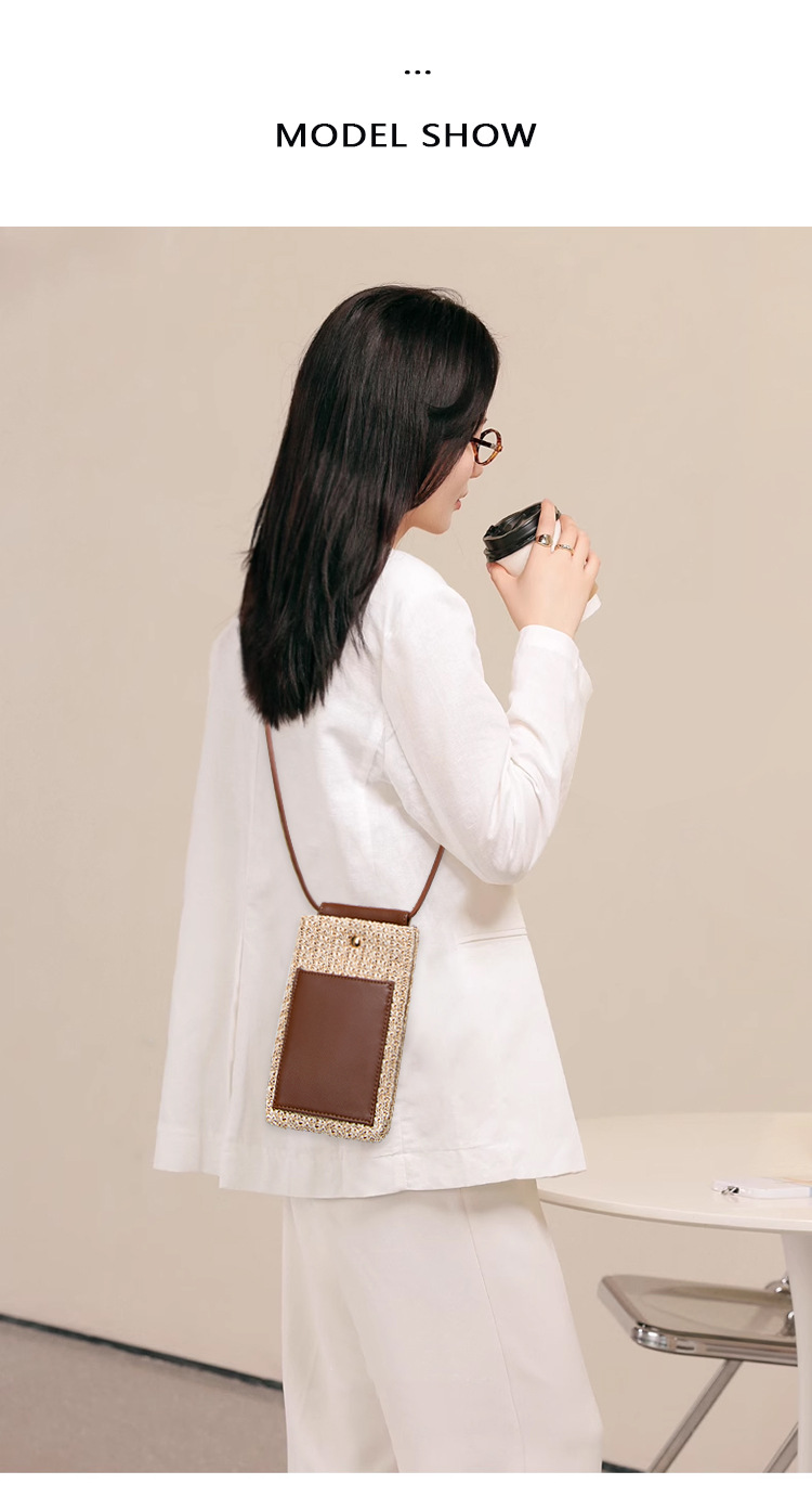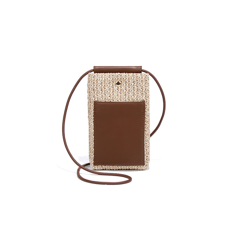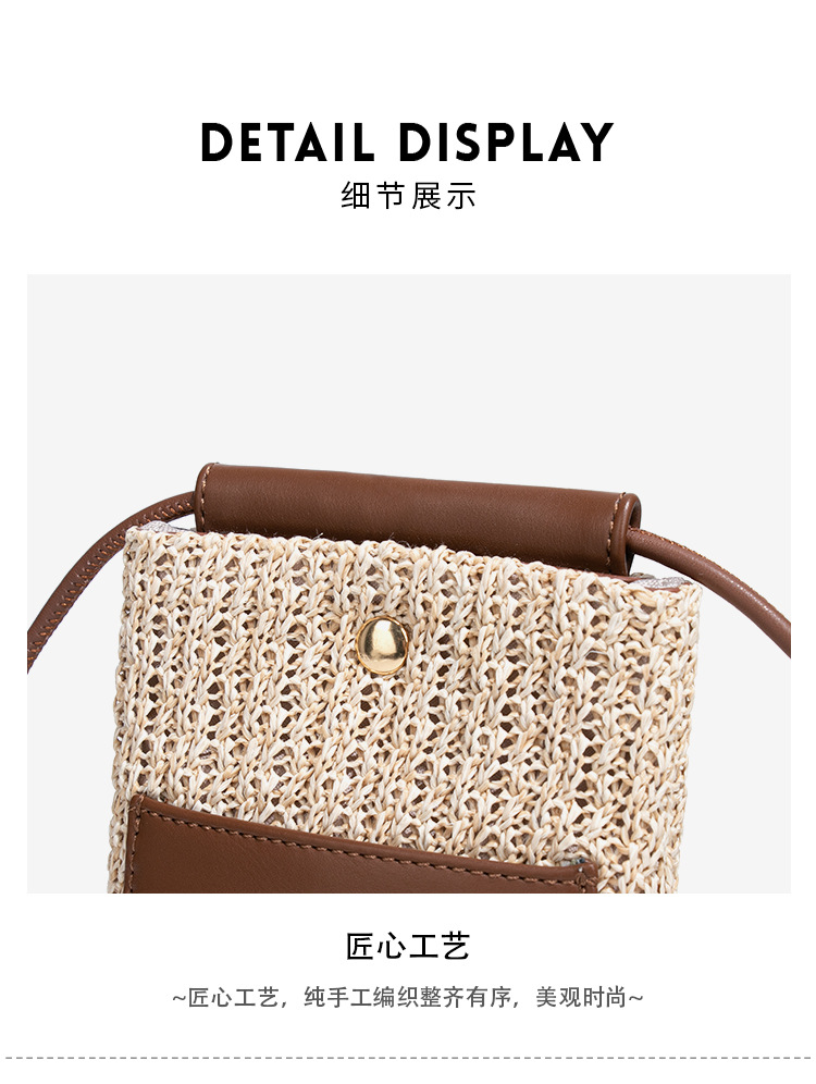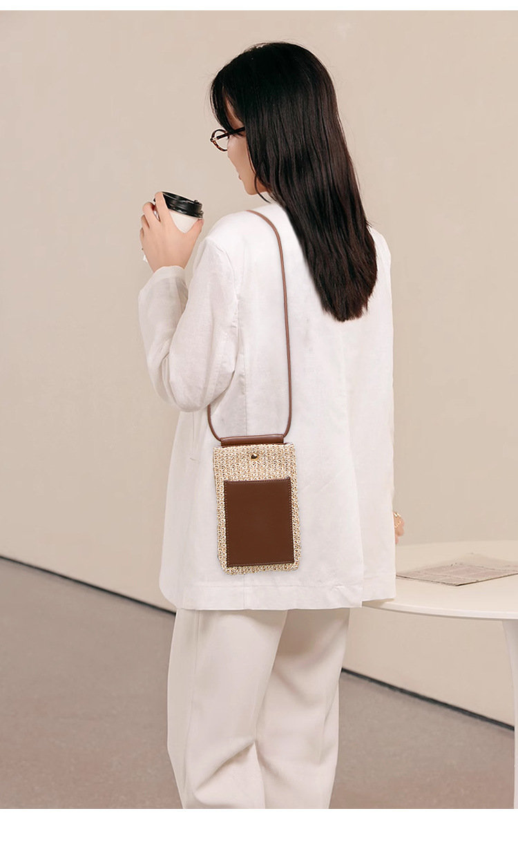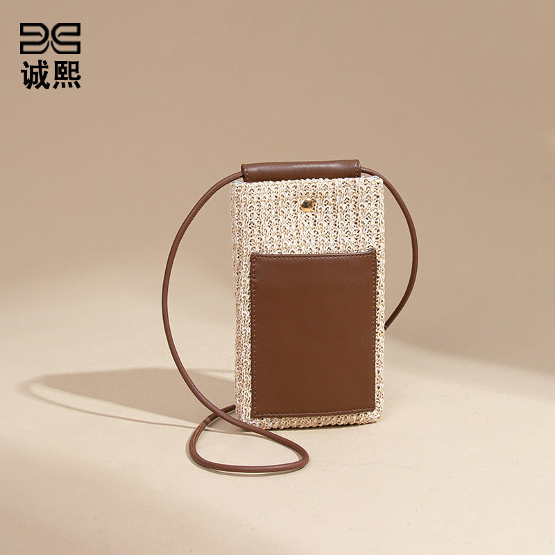 2025夏季新款拉菲草手机包清新百搭单肩斜挎包竖款时尚零钱袋小包