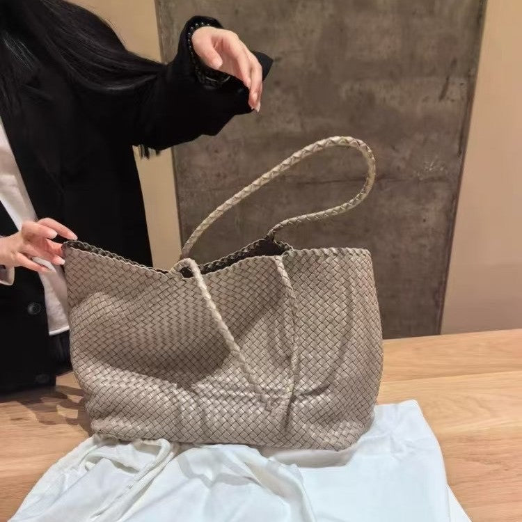 2025大容量马卡龙伴手礼女士手提包女士单肩包手工编织pvc菜篮子