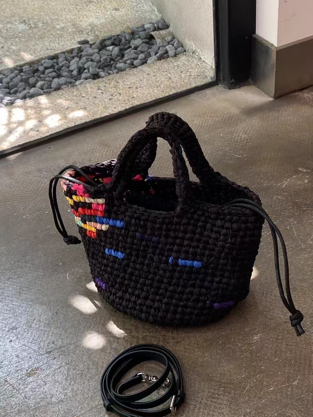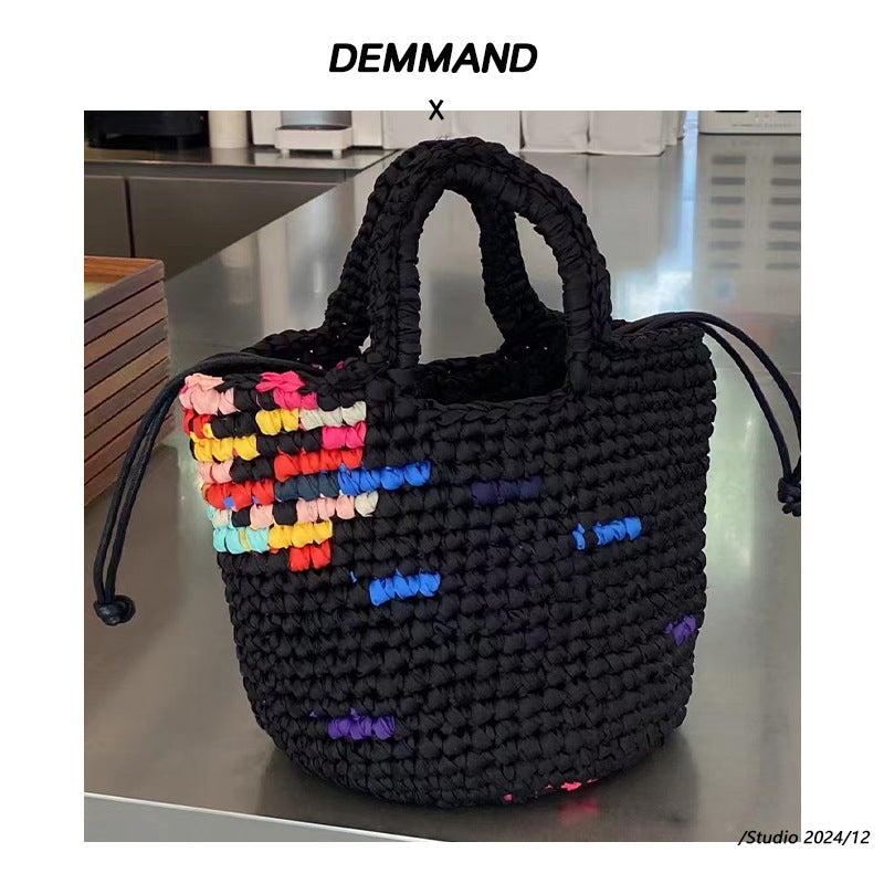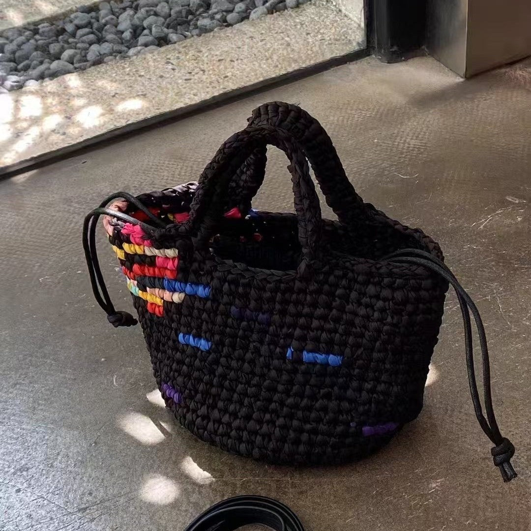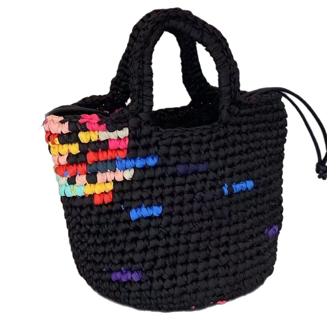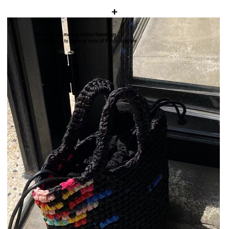 2025新品网红同款时尚百搭暗黑撞色手工编织设计小众手提斜挎包潮