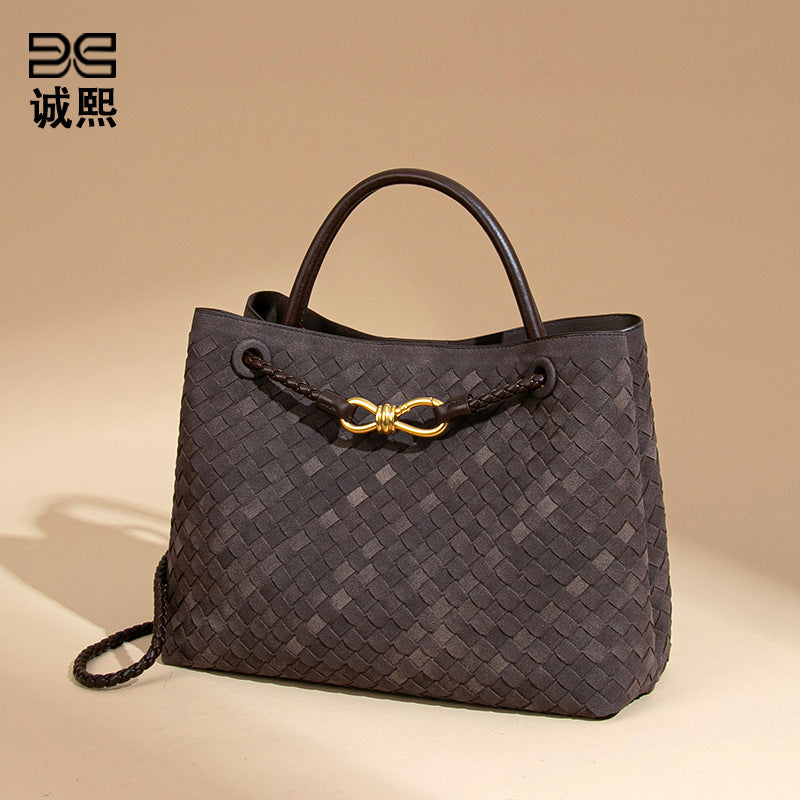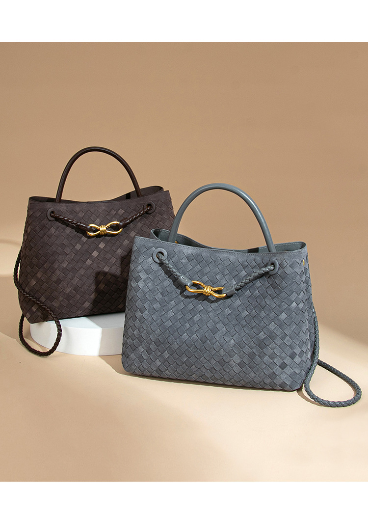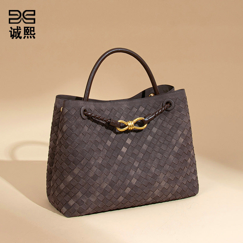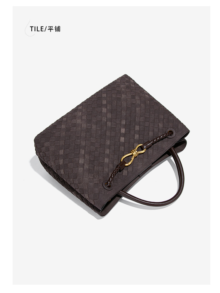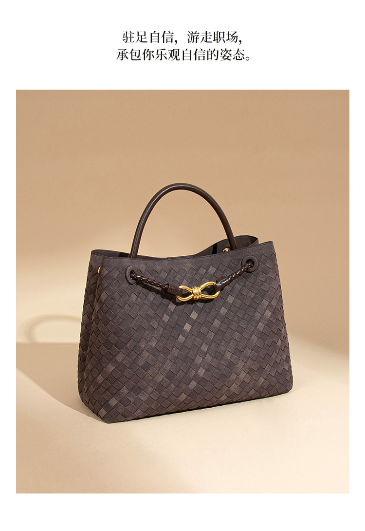 2025新款大容量手提托特包手工编织女包质感磨砂麂皮绒单肩斜跨包