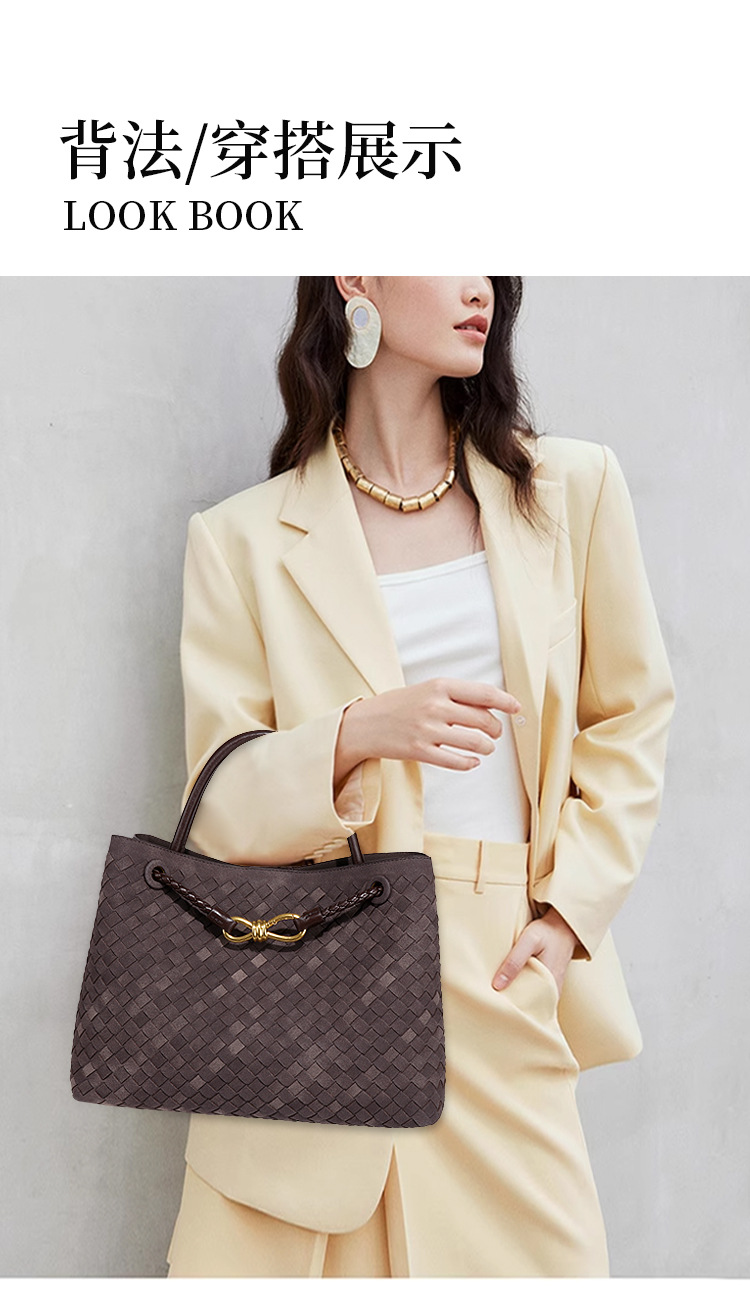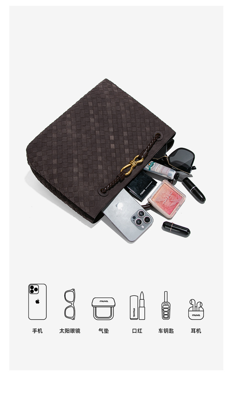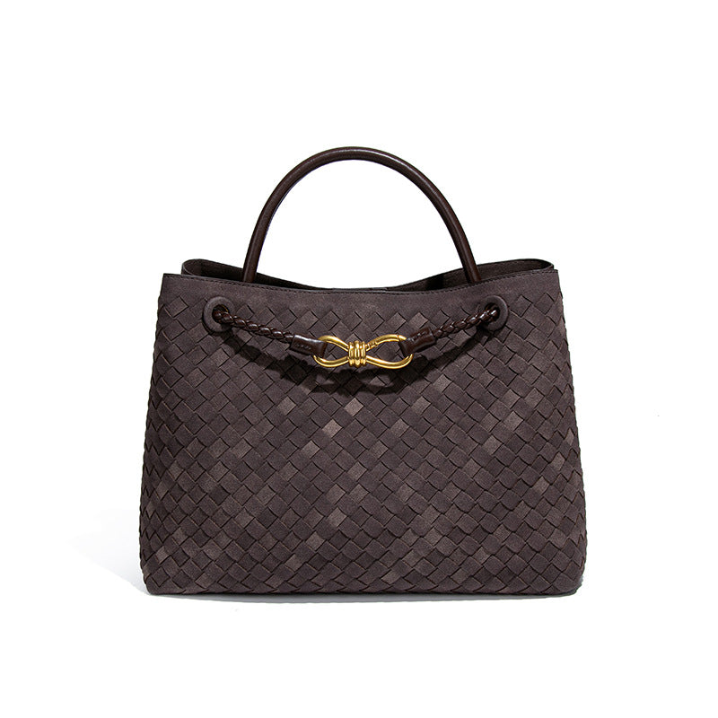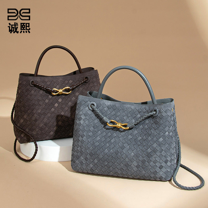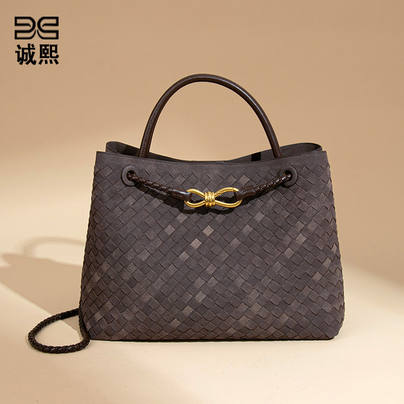 2025新款大容量手提托特包手工编织女包质感磨砂麂皮绒单肩斜跨包