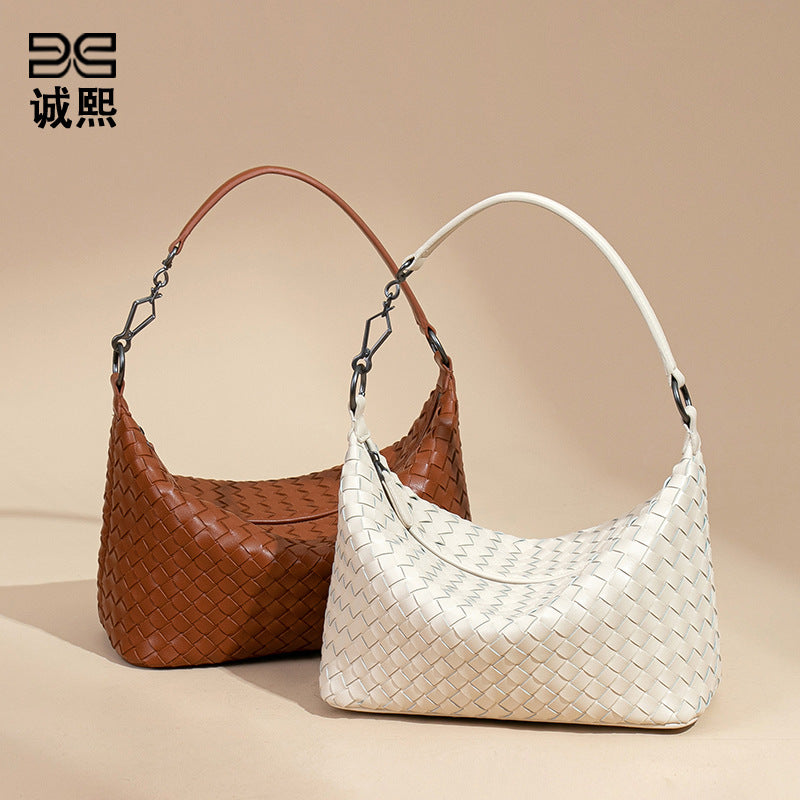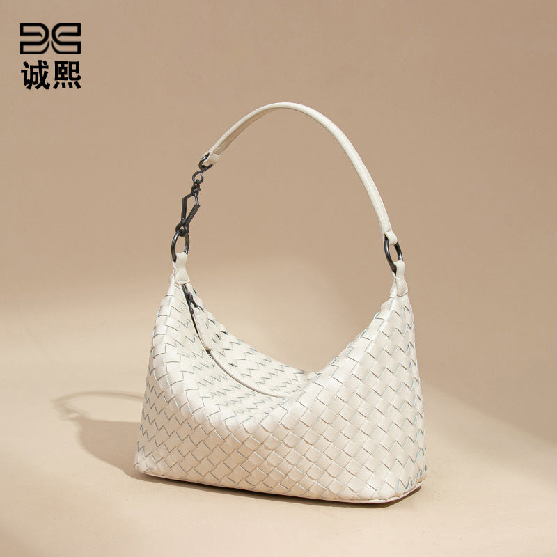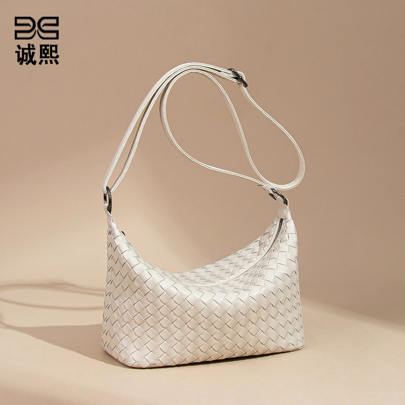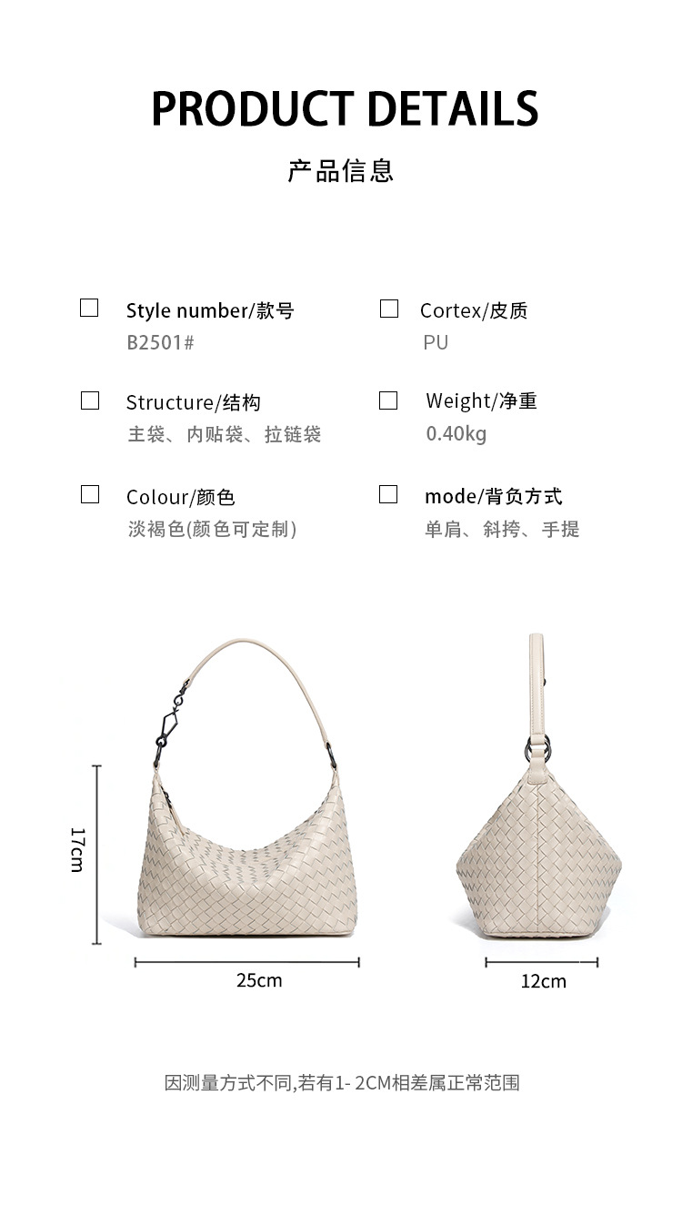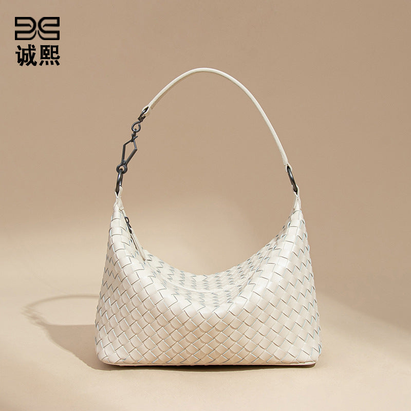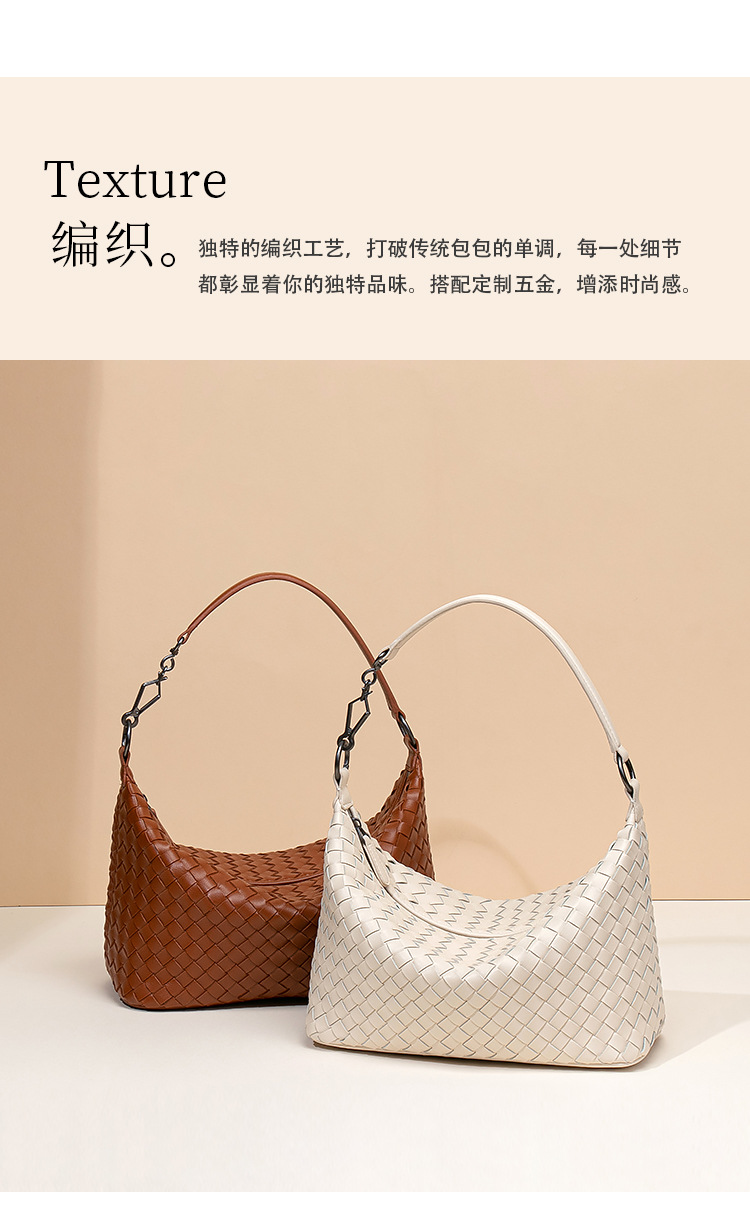 2025新款时尚小众腋下编织女包休闲纯色手提包潮流单肩斜挎饭盒包