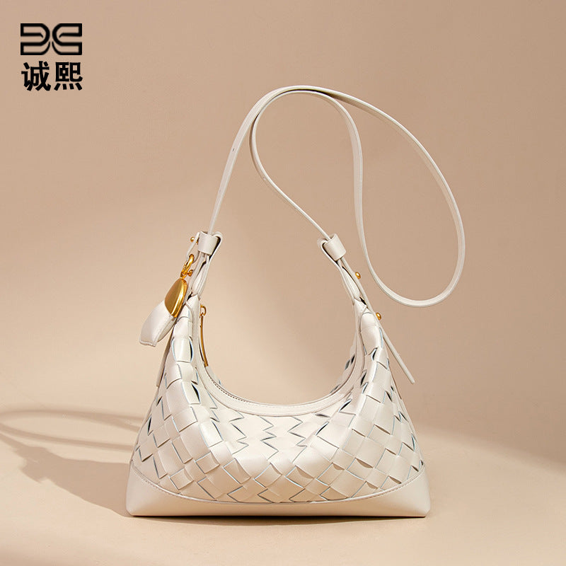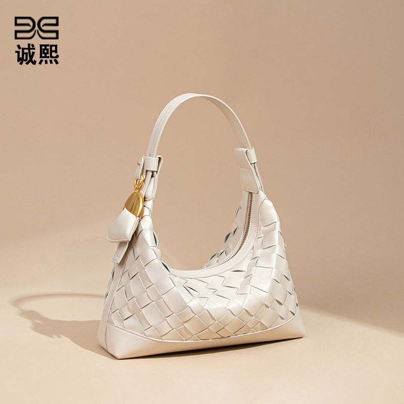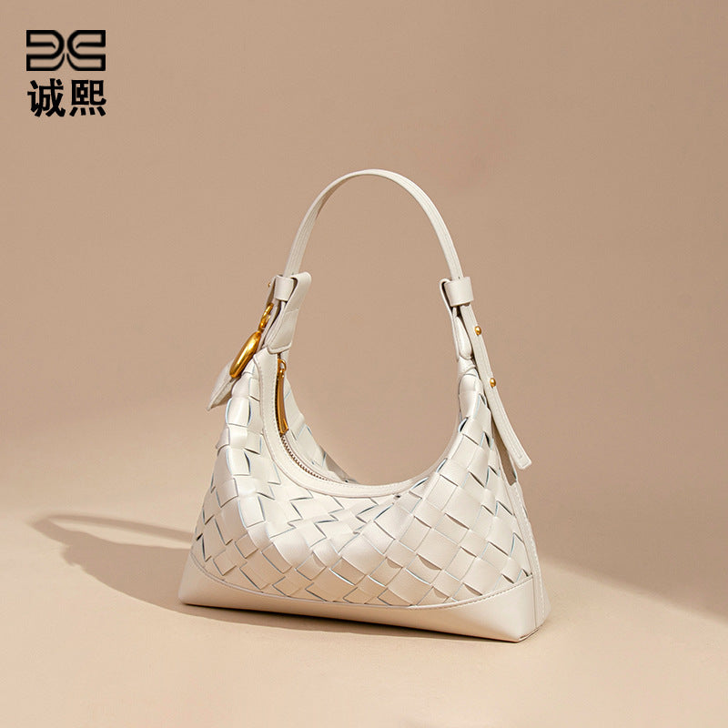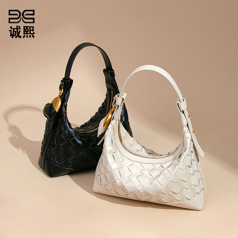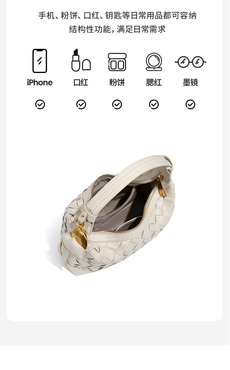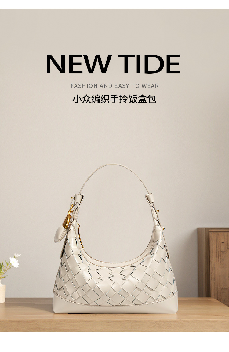2025新款泡芙手工编织包包女大容量休闲手提饭盒包软皮单肩斜跨包