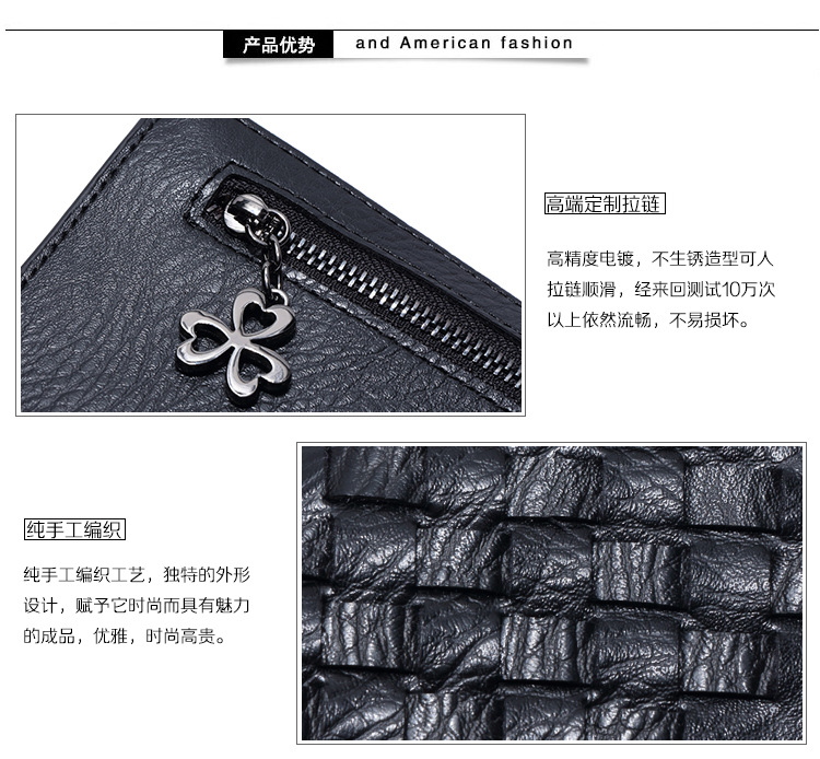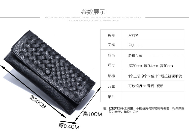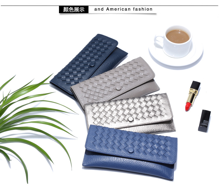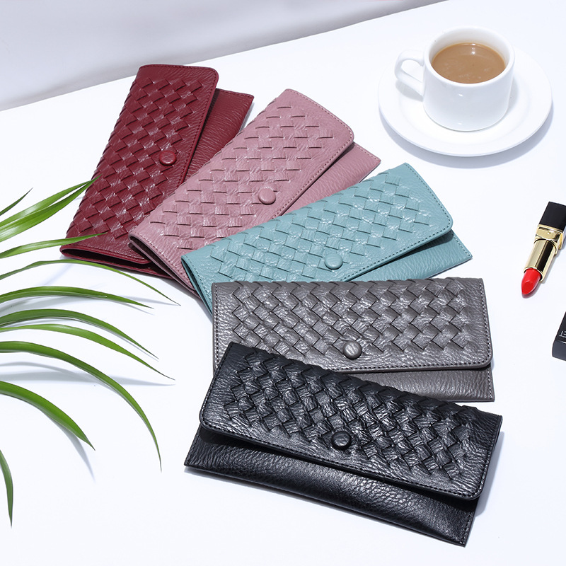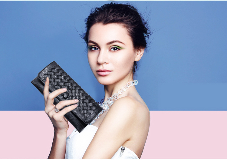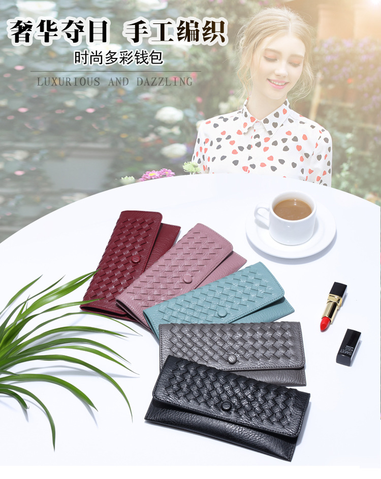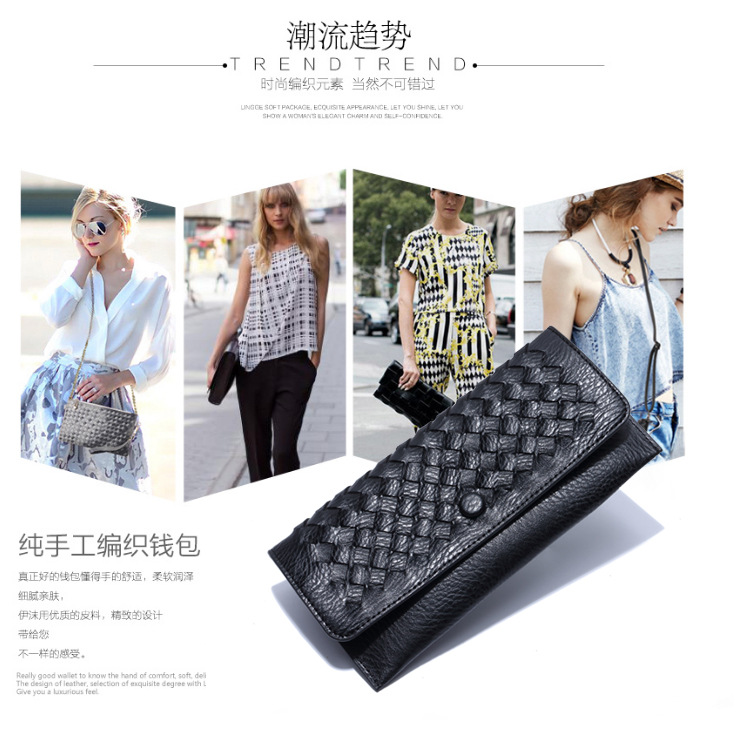 2025新款韩版长款纯色简约钱包零钱包手工编织女士手拿包一件代发