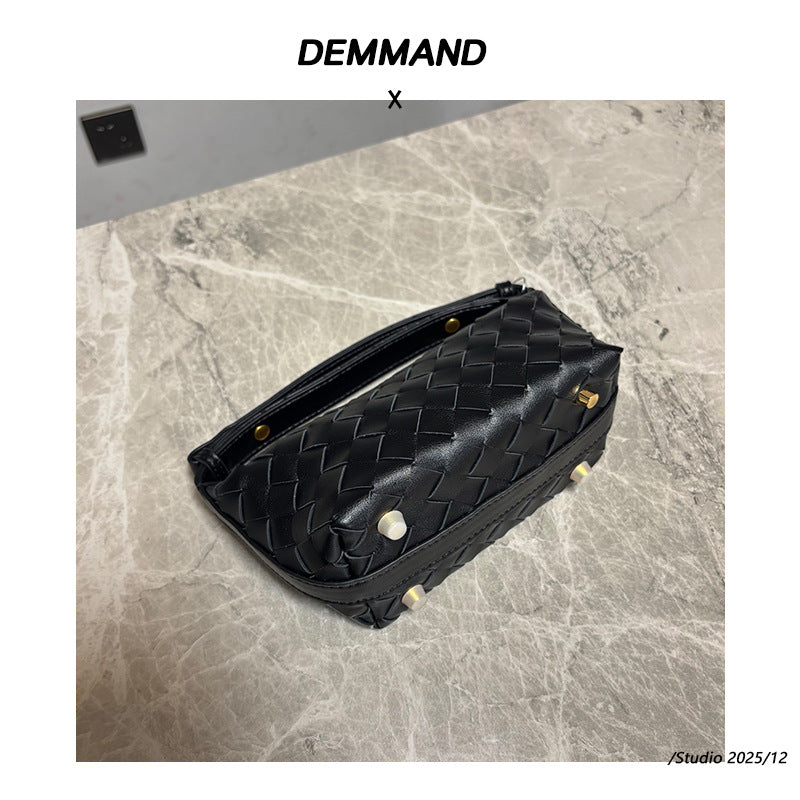 2025春季新款编织真皮手拎饭盒包小众设计简约跨境单肩斜挎女包包