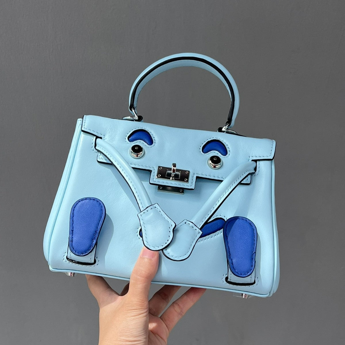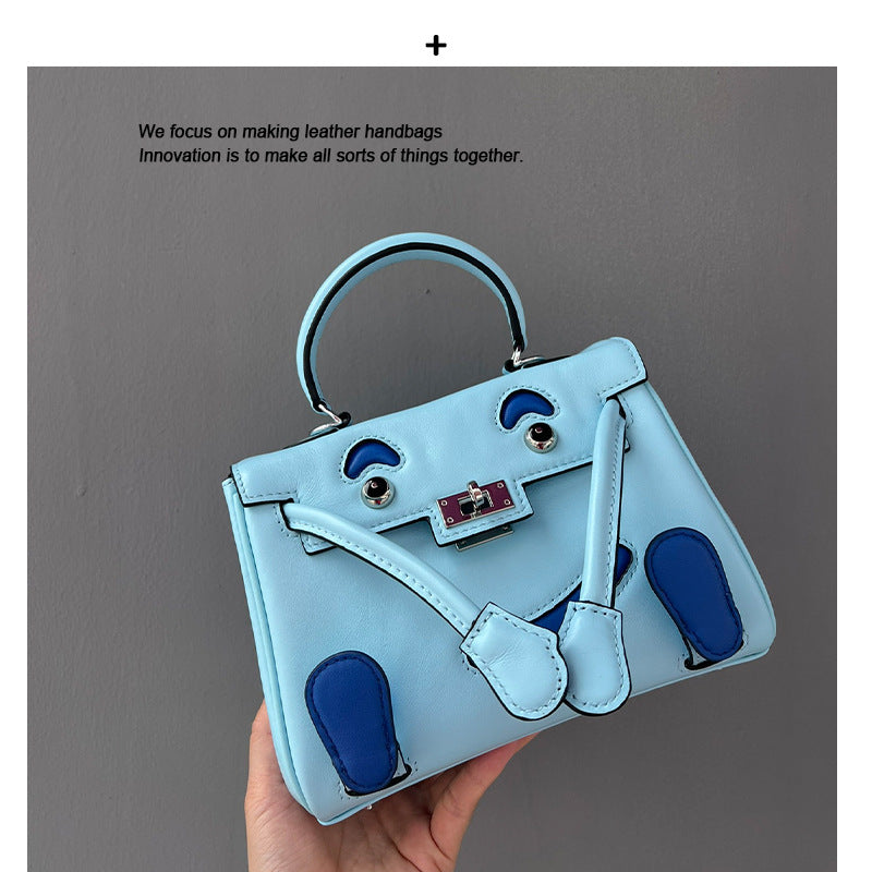 2025春季高级感头层牛皮笑脸包 千禧娃娃迷你凯莉包可爱斜挎包