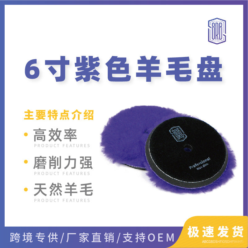 6寸紫色长羊毛盘抛光盘 汽车美容漆面抛光打蜡DA海绵划痕镜面还原